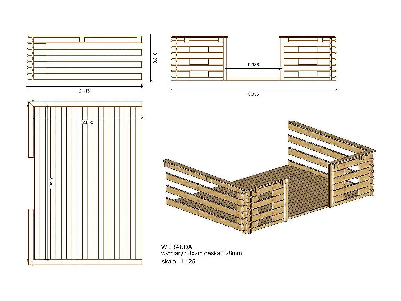 Terrasse en bois avec balustrade pour abri en bois - 6m2 - 3m x 2m - imprégnée - couleur: marron - DOM147 - ALTANKA