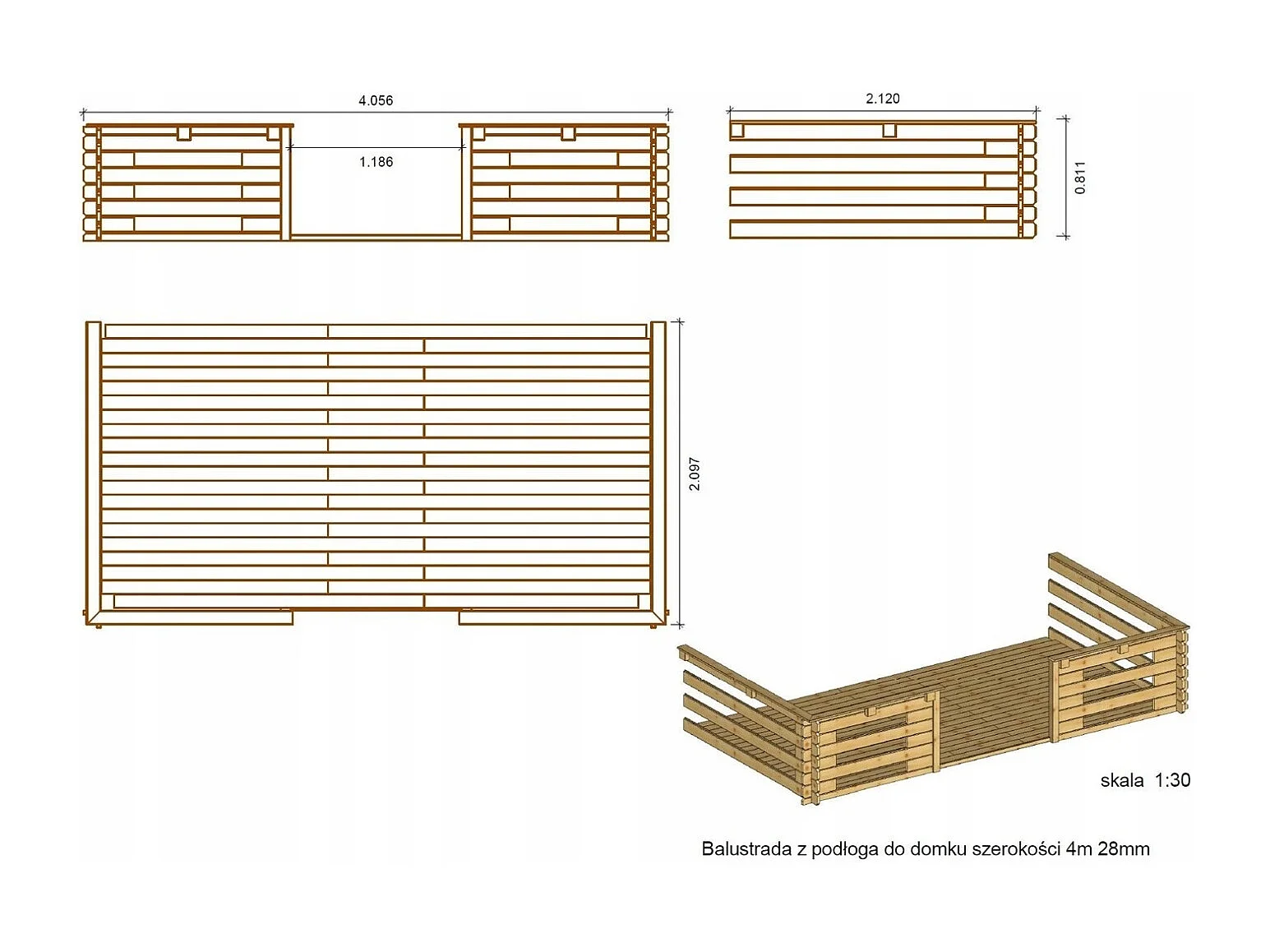 Terrasse en bois avec balustrade pour abri en bois - 8m2 - 4m x 2m - couleur: naturel - DOM18 - ALTANKA
