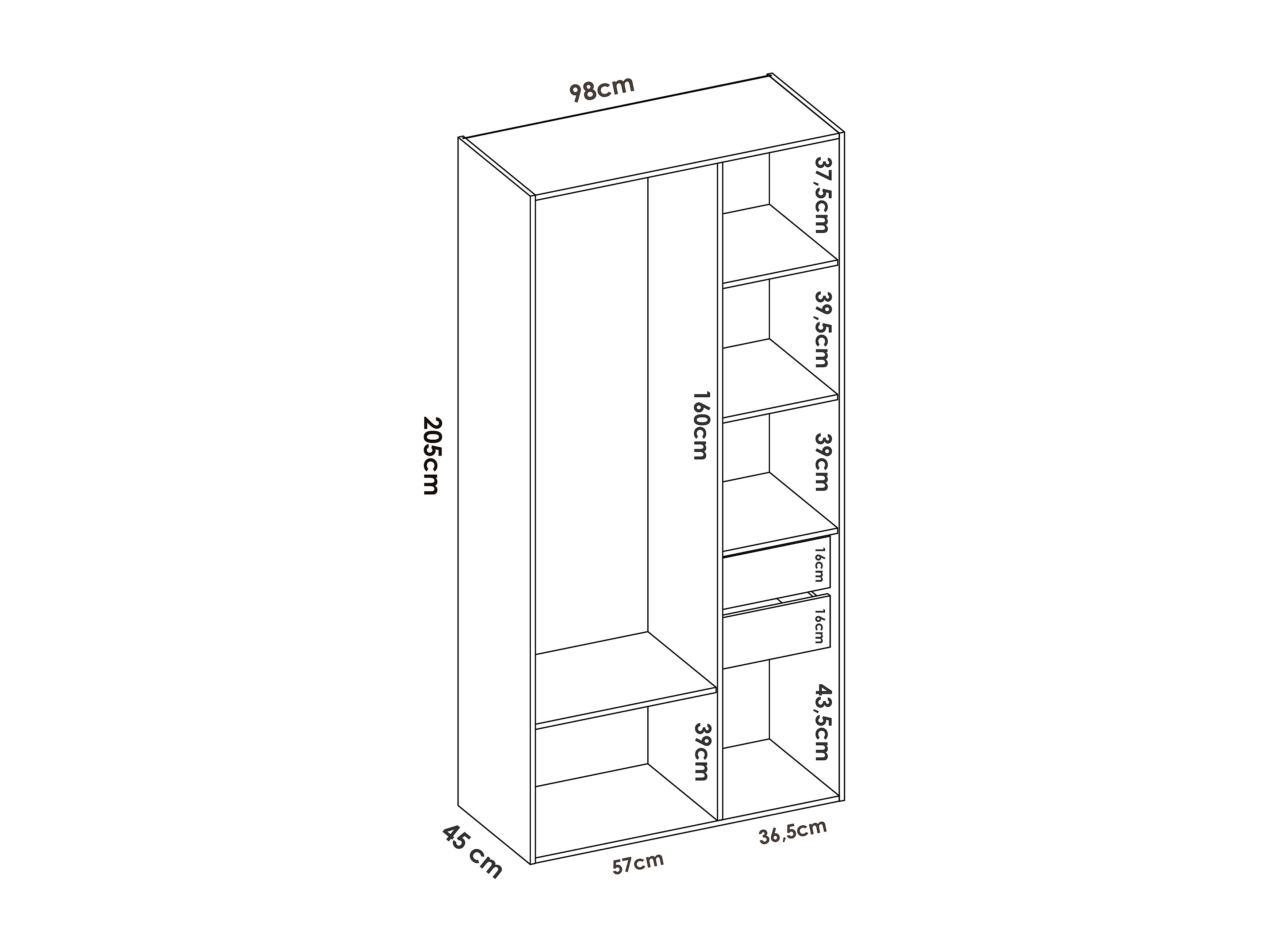 Tête de lit + 2 tables de nuit avec 2 tiroirs + structure de lit 140X190 + armoire coloris imitation lamelles , blanc