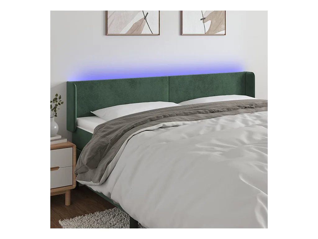 Tête de lit à LED Vert foncé 203x16x78/88 cm Velours