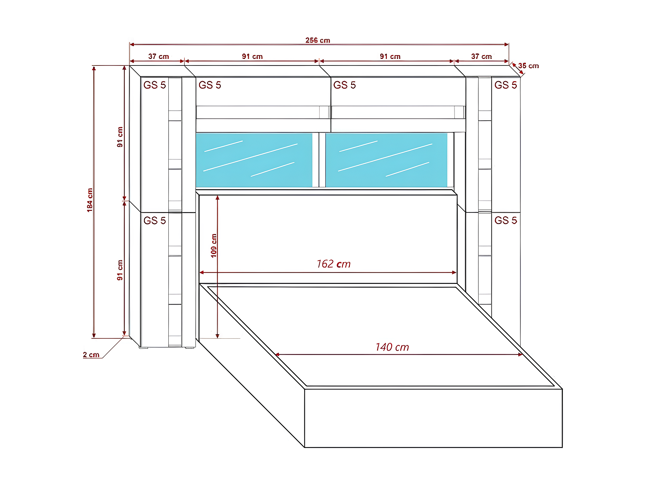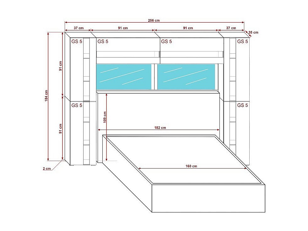Tête de lit avec rangement Armoire - pont de lit PANAMA 14/M/S/5-1A chêne sonoma 256x184x35cm