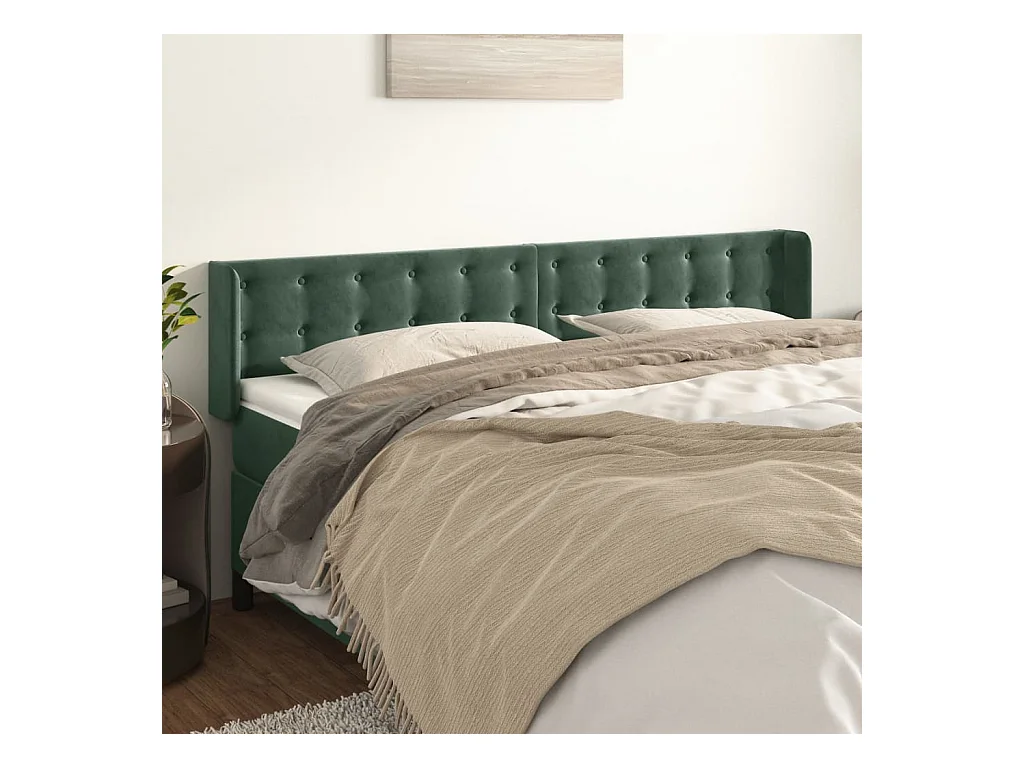 Tête de lit avec oreilles Vert foncé 203x16x78/88 cm Velours