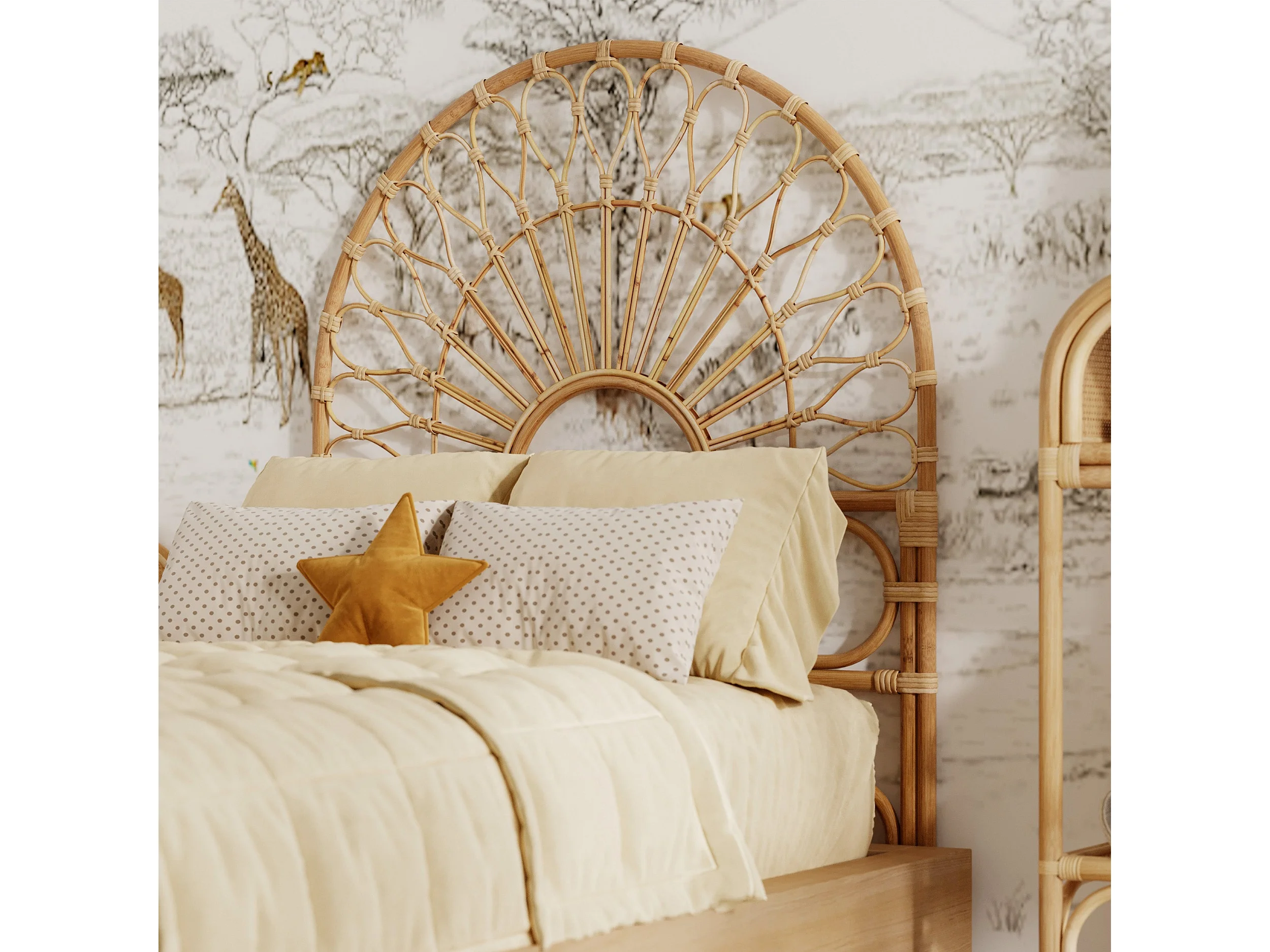Tête de lit en rotin naturel pour chambre enfant.90x100cm Malacca
