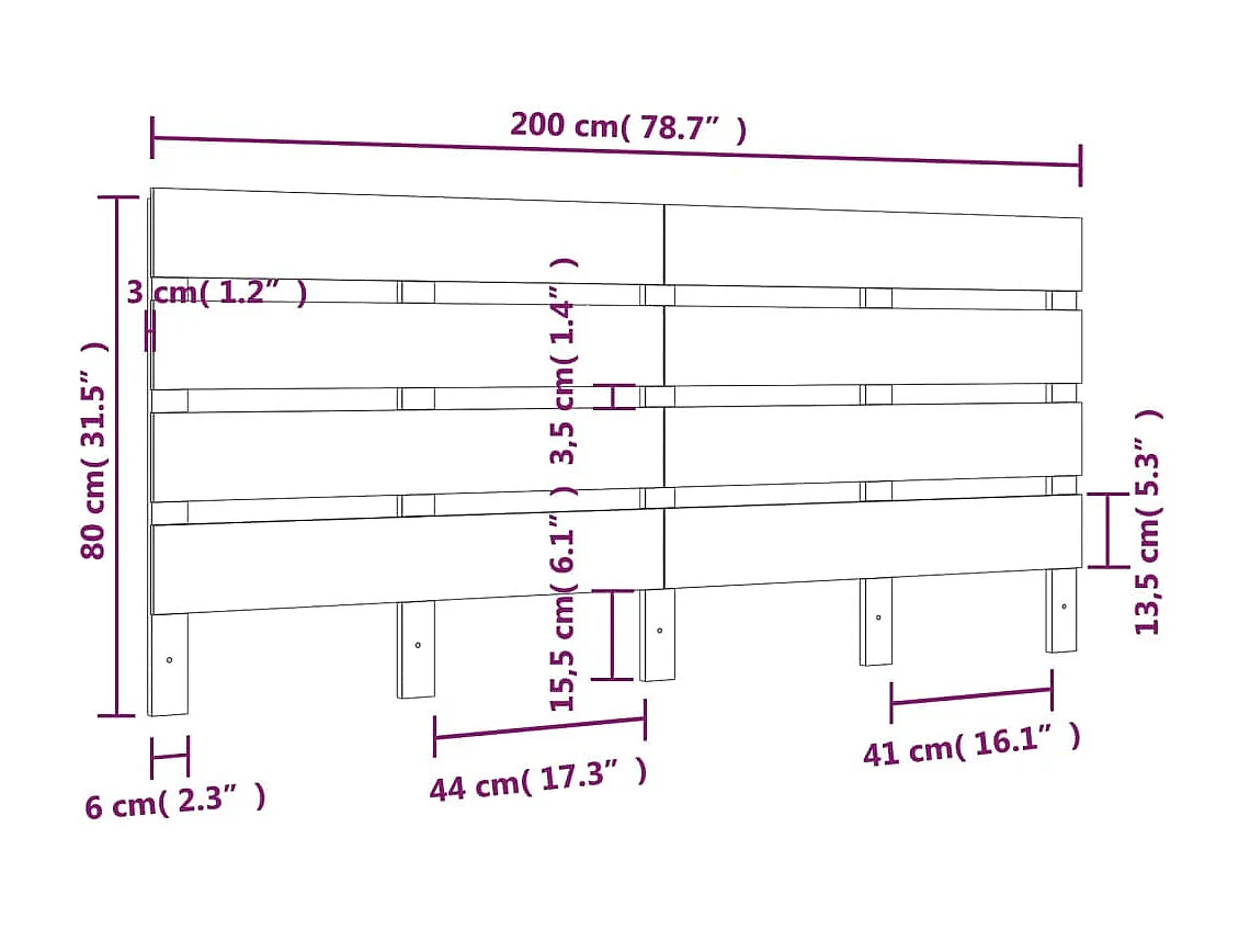 Tête de lit Blanc 200x3x80 cm Bois massif de pin