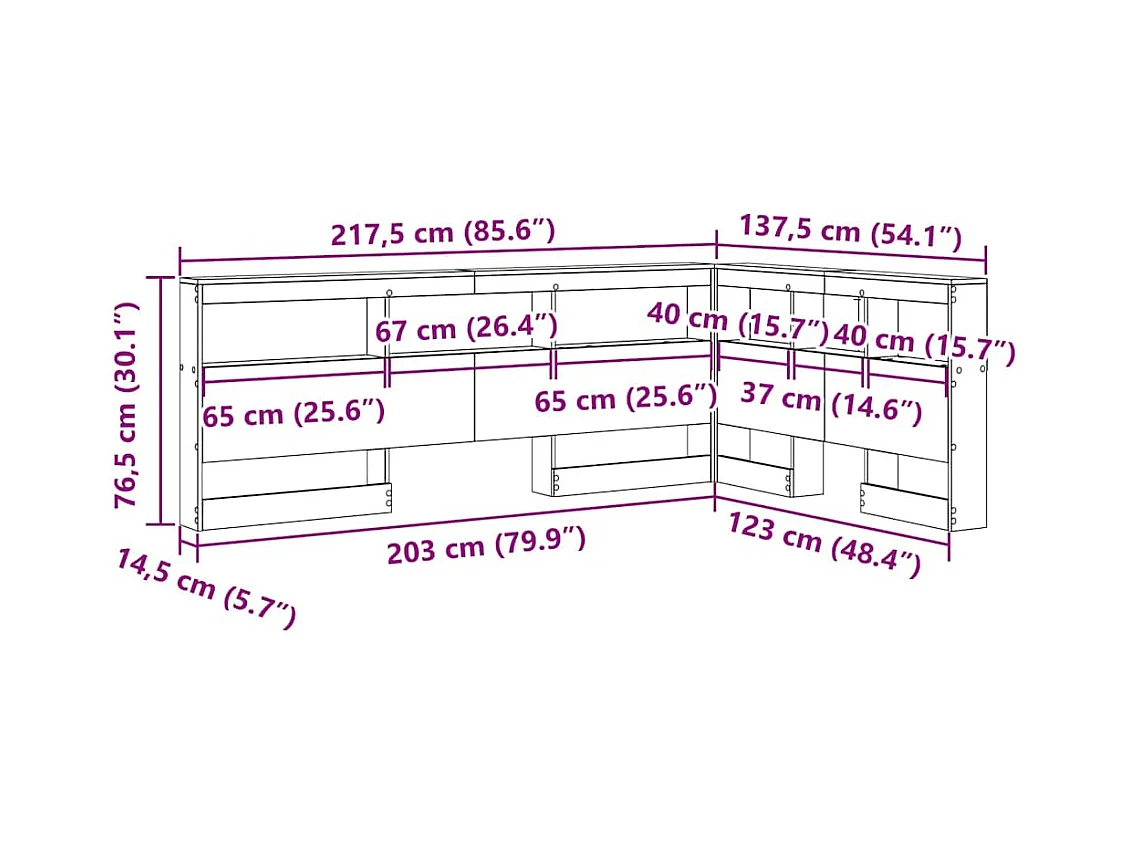Tête de lit de rangement avec étagère chêne artisanal 120 cm