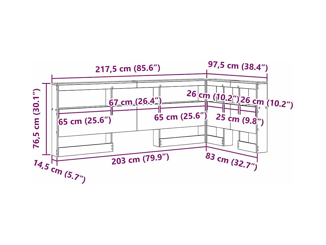 Tête de lit de rangement avec étagère chêne artisanal 120 cm