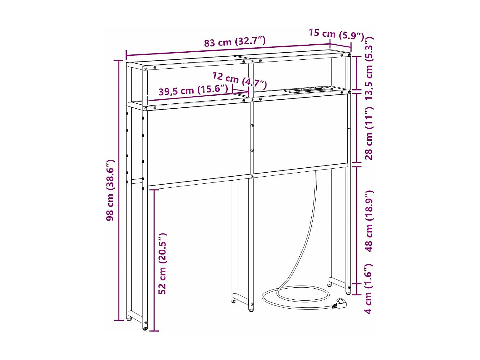 Headboard de Rangement avec Station de Charge Chêne fumé 80 cm