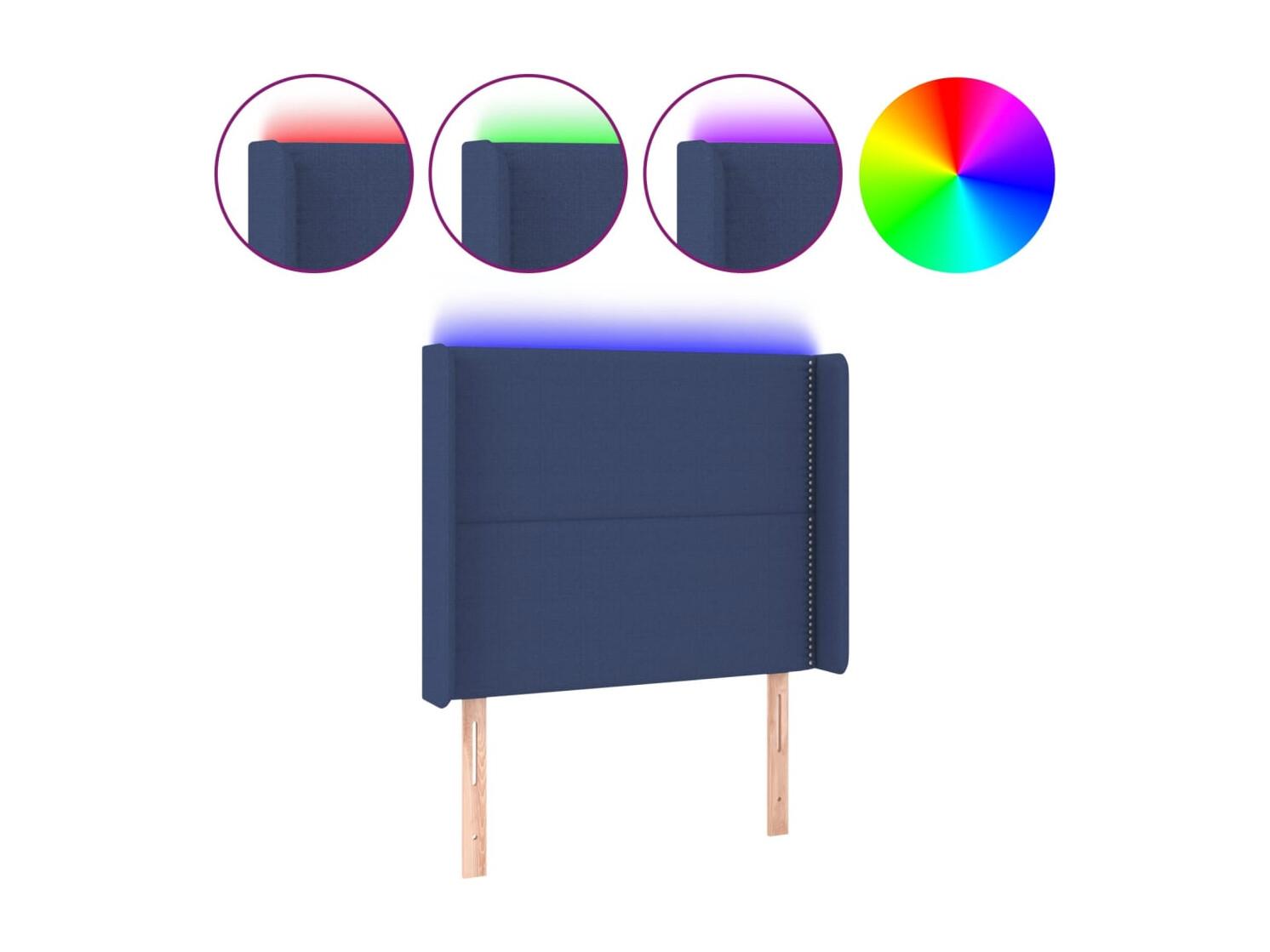 Tête de Lit | Panneau de tête pour lit Moderne à LED Bleu 83x16x118/128 cm Tissu
