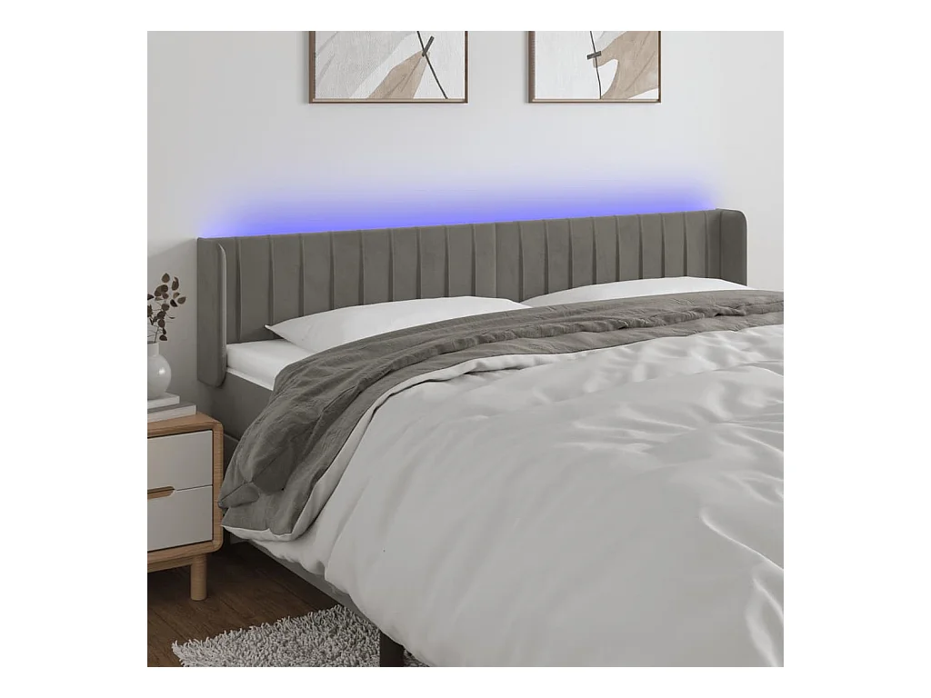Tête de Lit | Panneau de tête pour lit Moderne à LED Gris clair 203x16x78/88 cm Velours