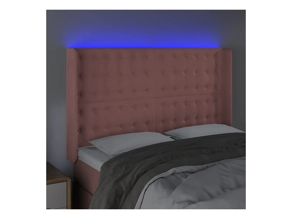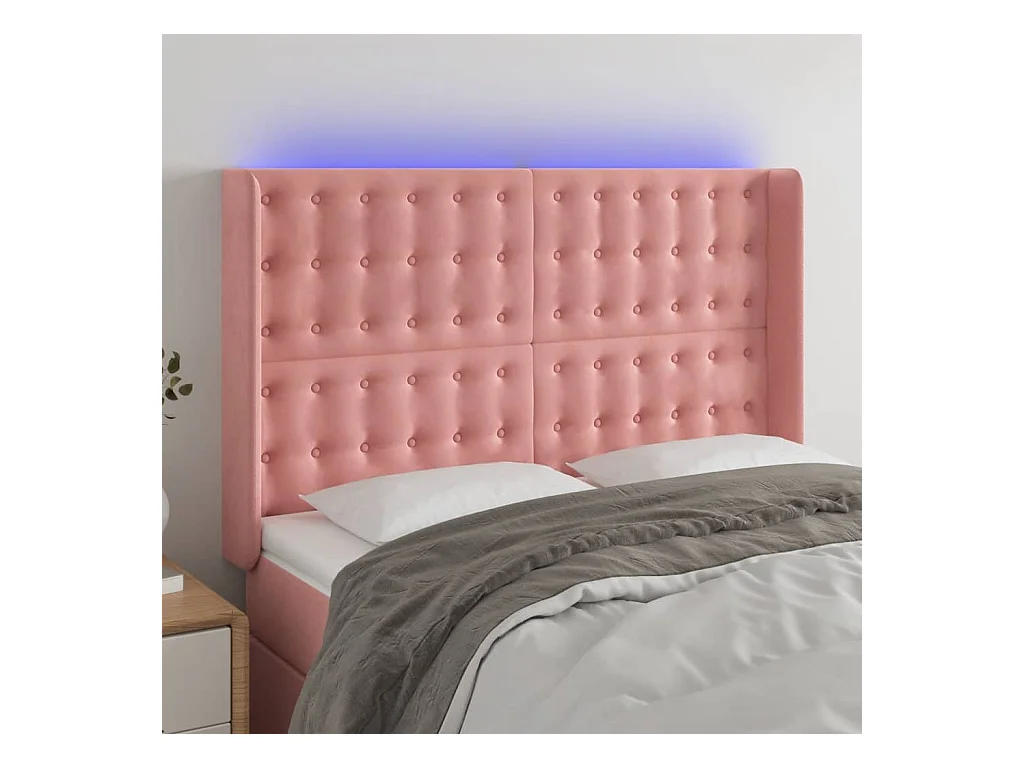 Tête de Lit | Panneau de tête pour lit Moderne à LED Rose 147x16x118/128 cm Velours