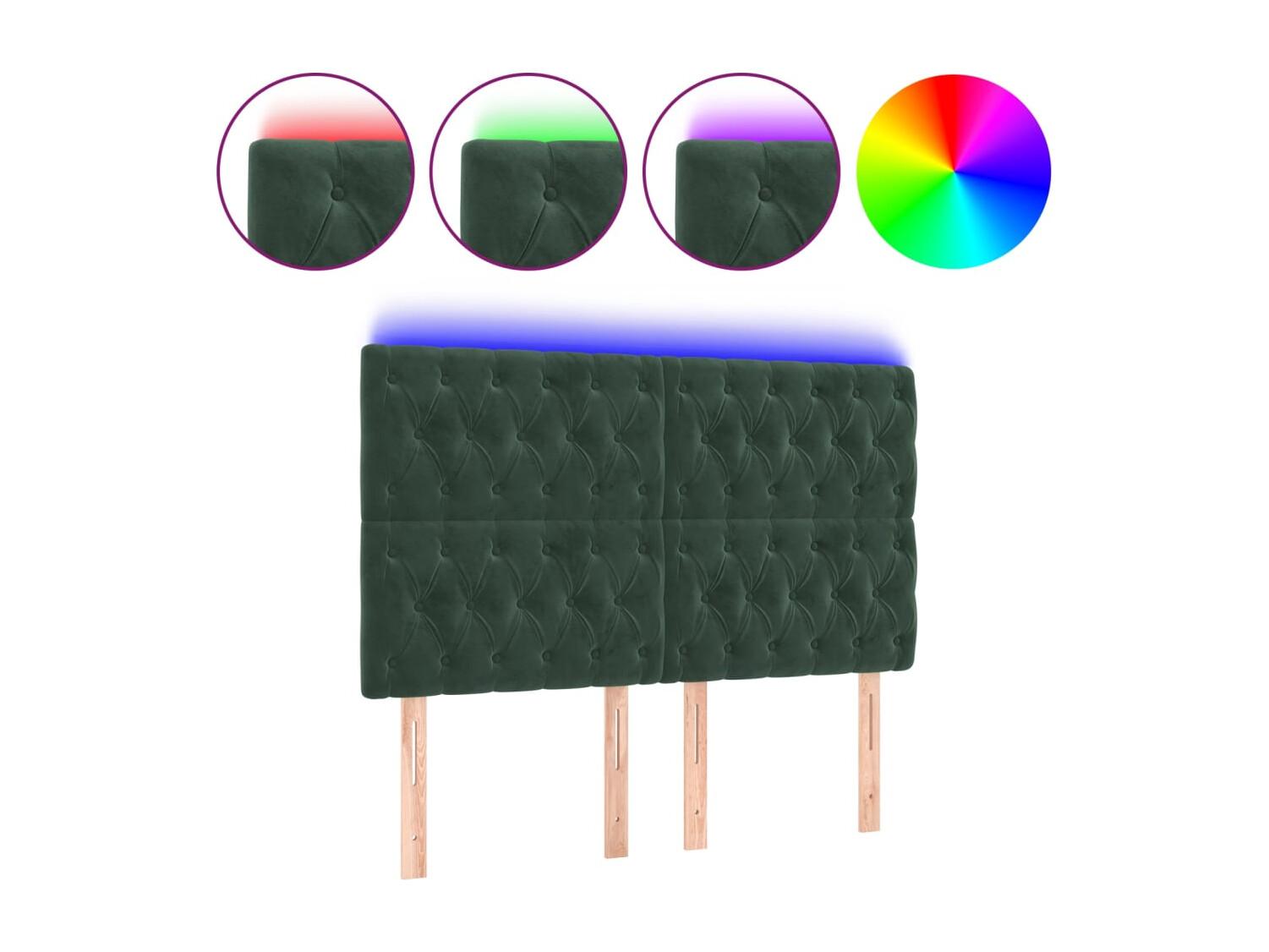 Tête de Lit | Panneau de tête pour lit Moderne à LED Vert foncé 160x7x118/128 cm Velours