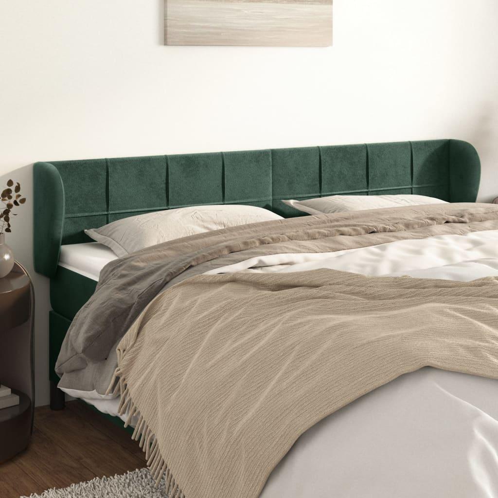Tête de Lit | Panneau de tête pour lit Moderne avec oreilles Vert foncé 203x23x78/88 cm Velours