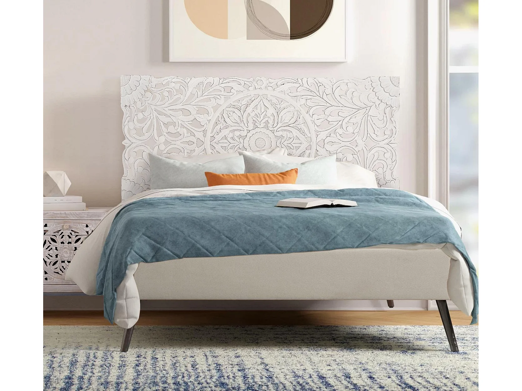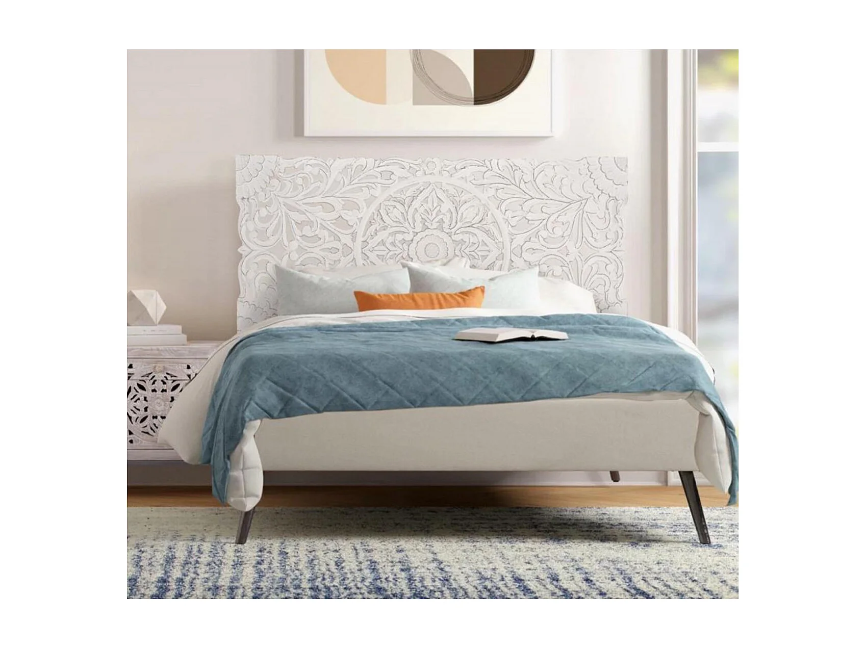 Tête de lit antique blanche sculptée à la main