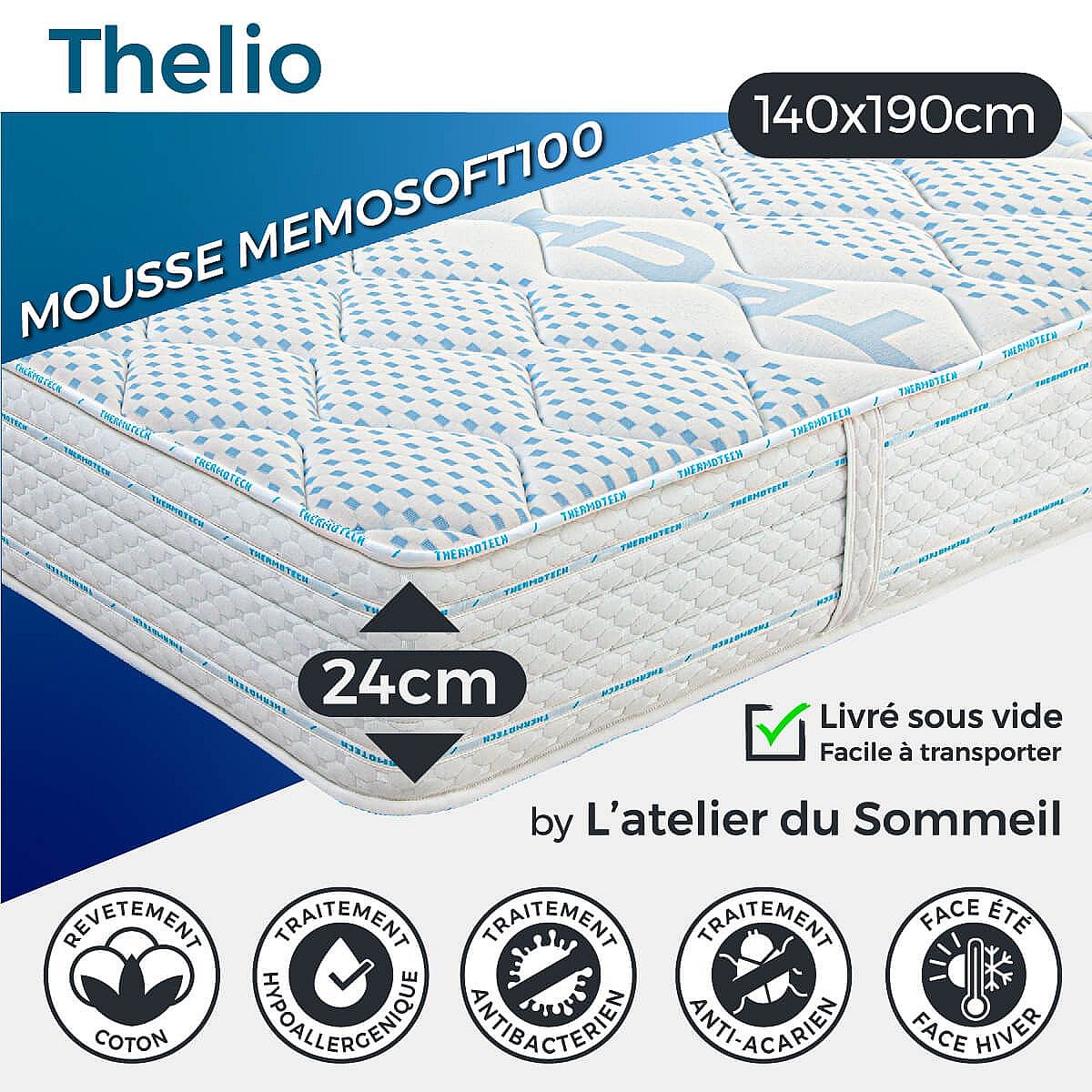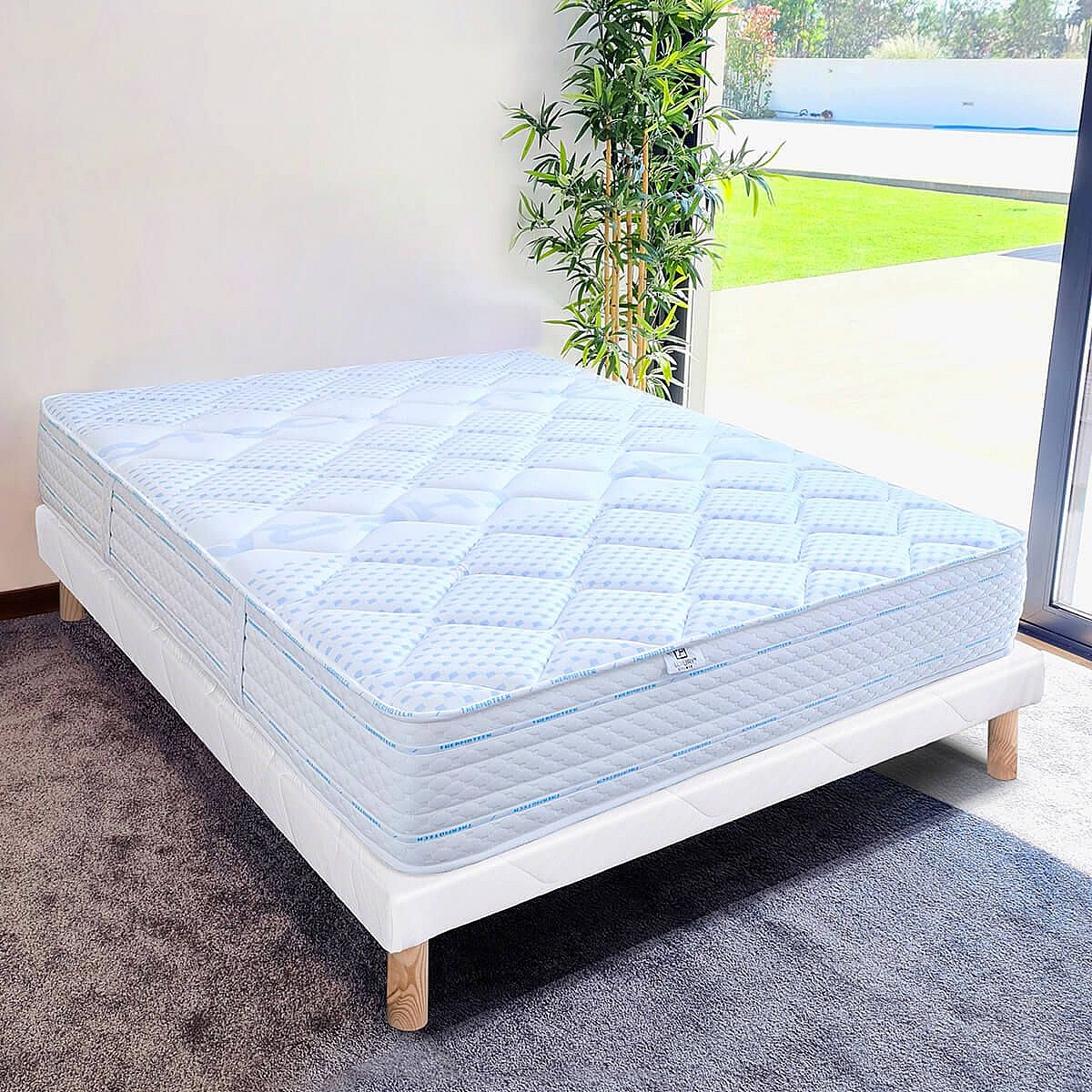 THELIO - Ensemble Matelas Mousse Ep.24cm + Sommier Tapissier Blanc 140x190 cm