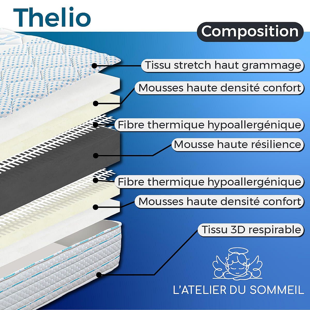 THELIO - Matelas 160x200 cm Mousse haute résilience Soutien ferme Ep.24cm