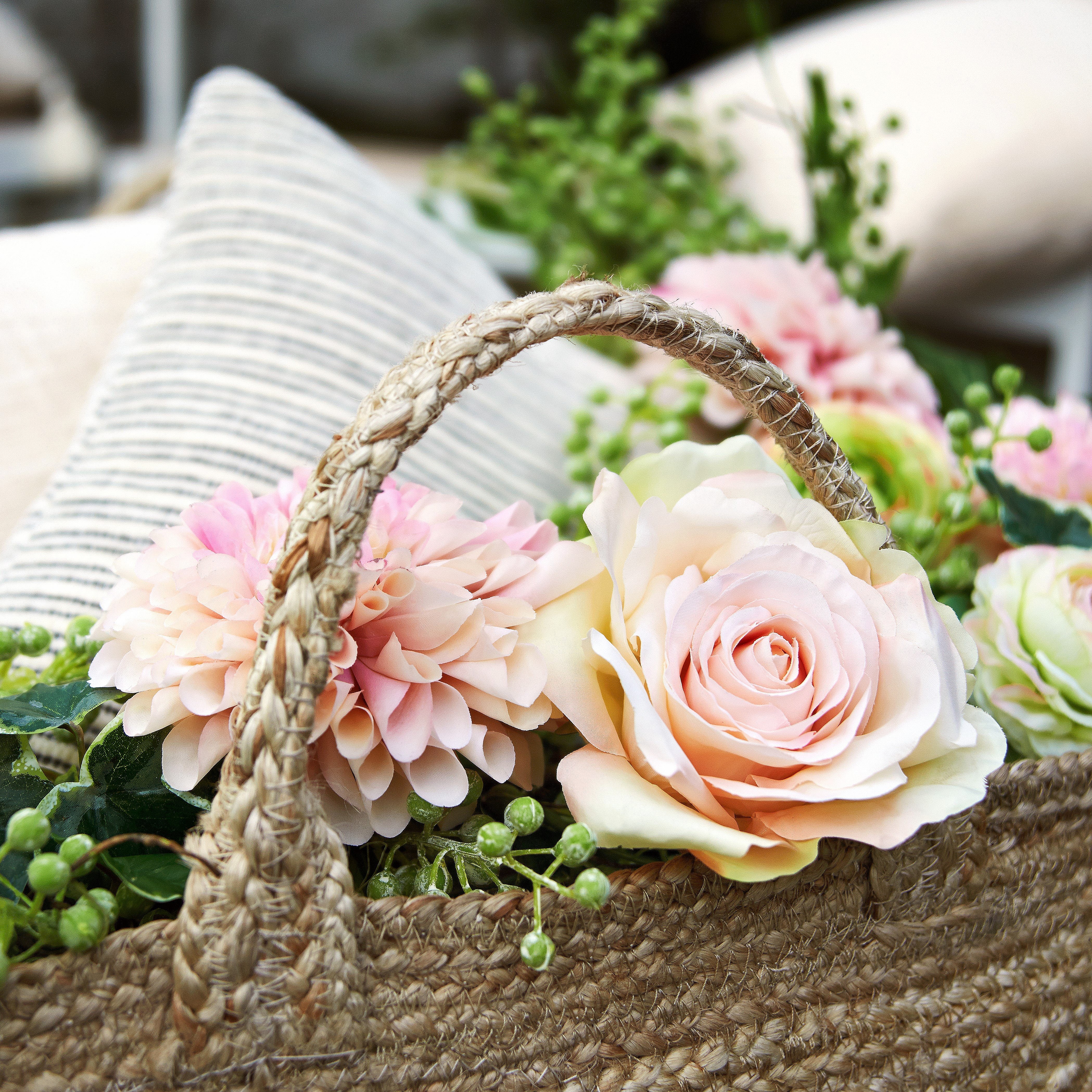 MAORI - Cache-Pot Tressé en Jacinthe d'Eau Naturelle Support en Métal Noir