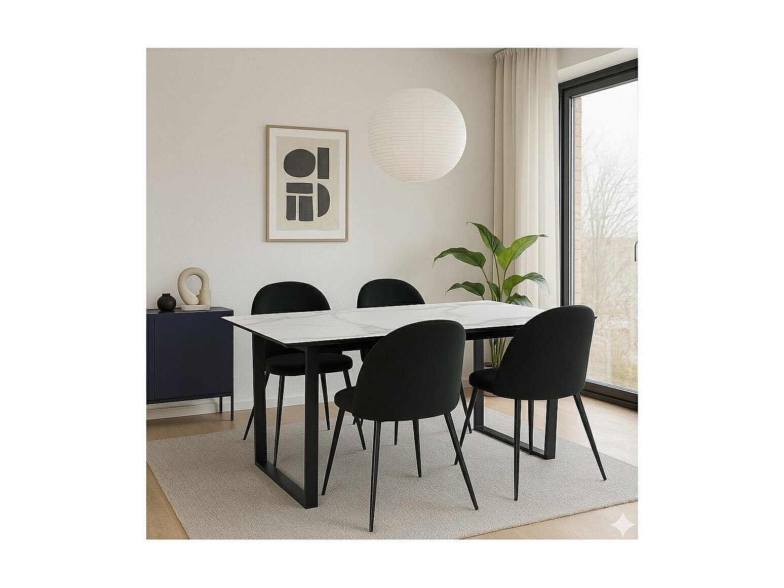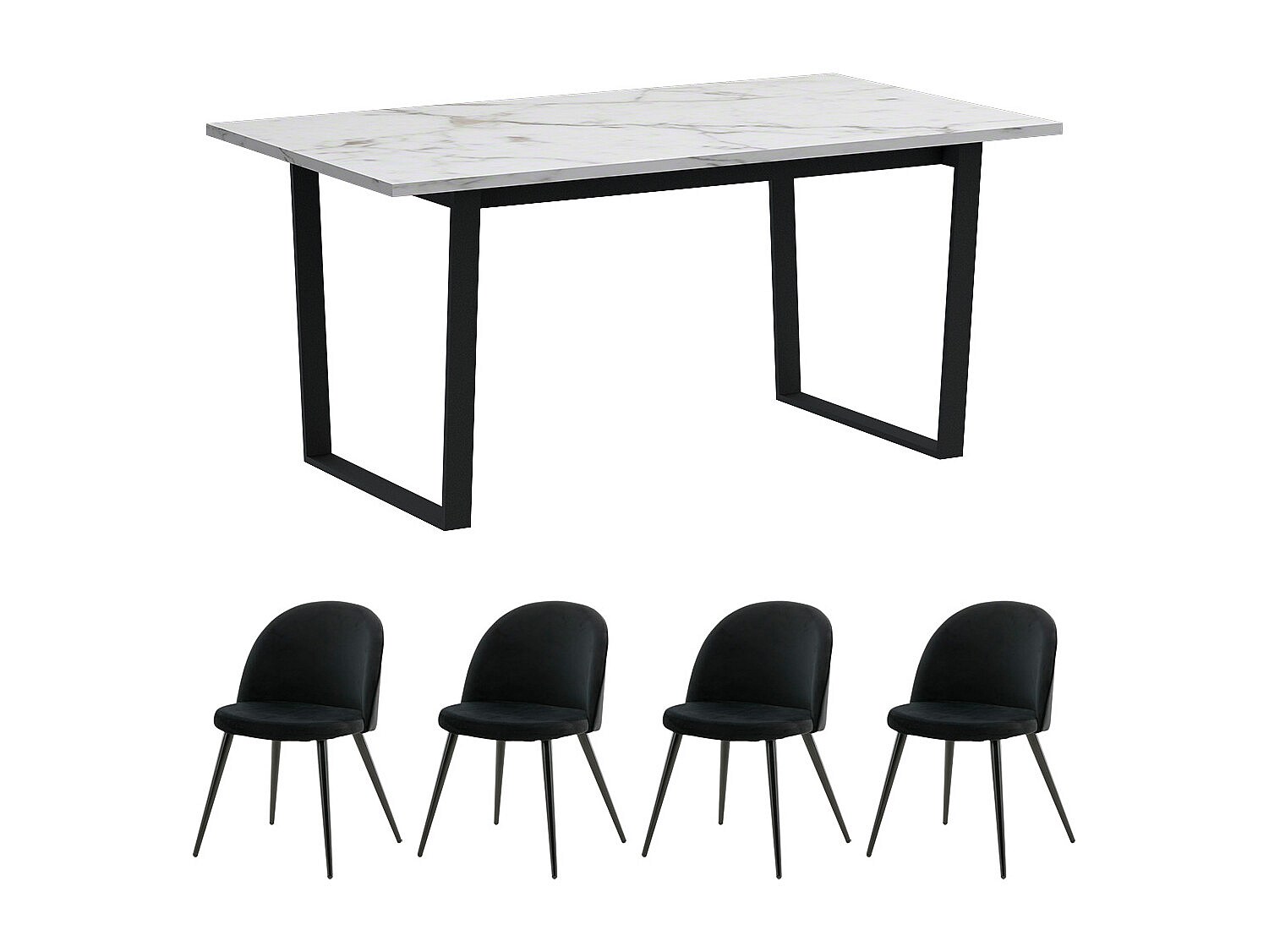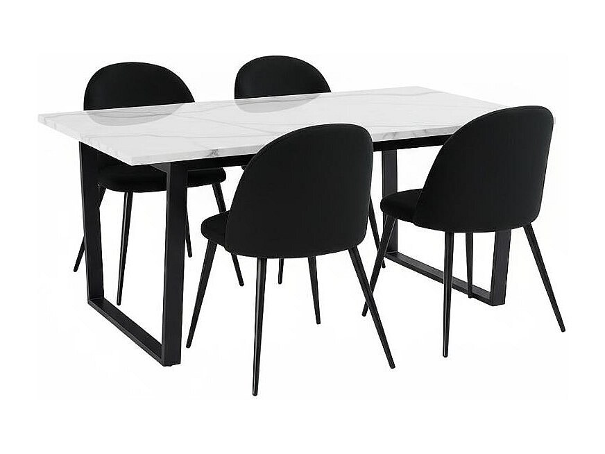 Tilst ensemble pour salle à manger table à manger impression marbre blanc 90x160 4 chaises velours noir.