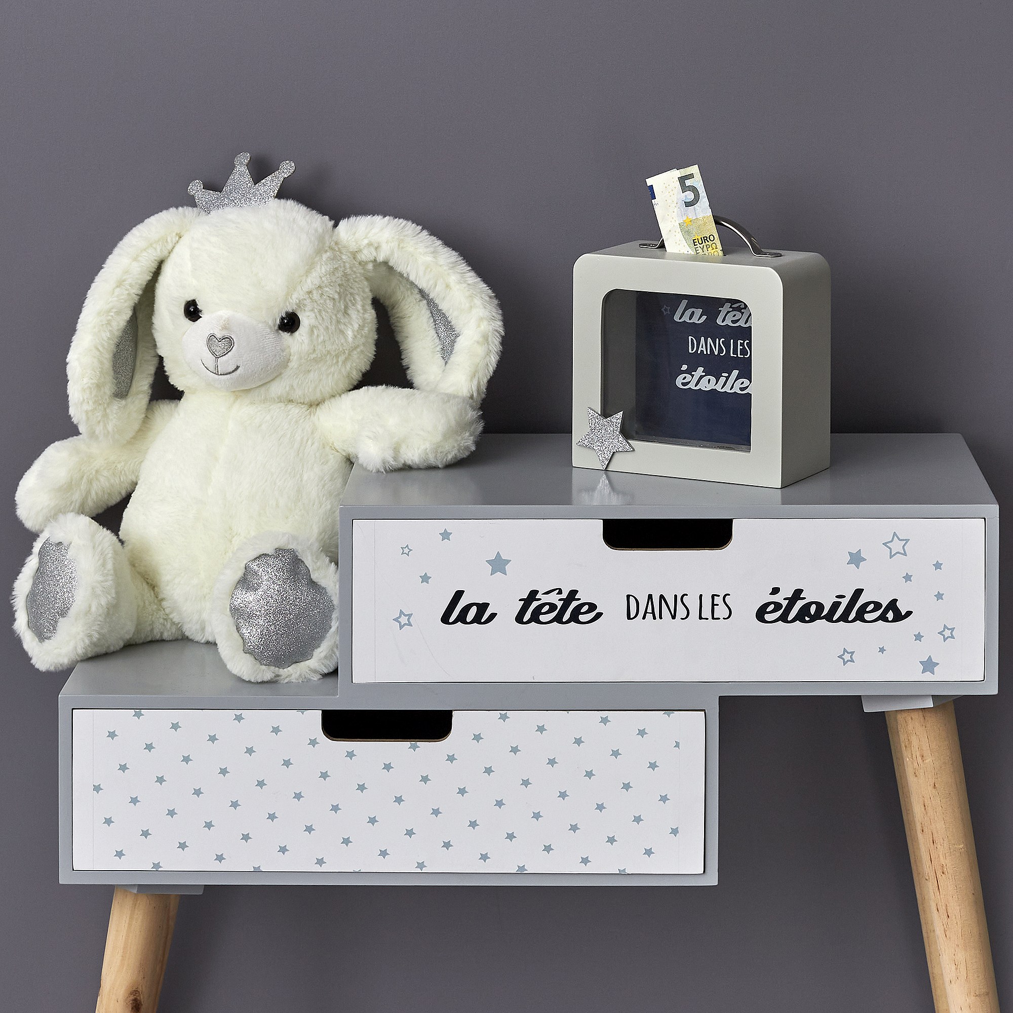 Tirelire Valise Enfant Blanc, Gris