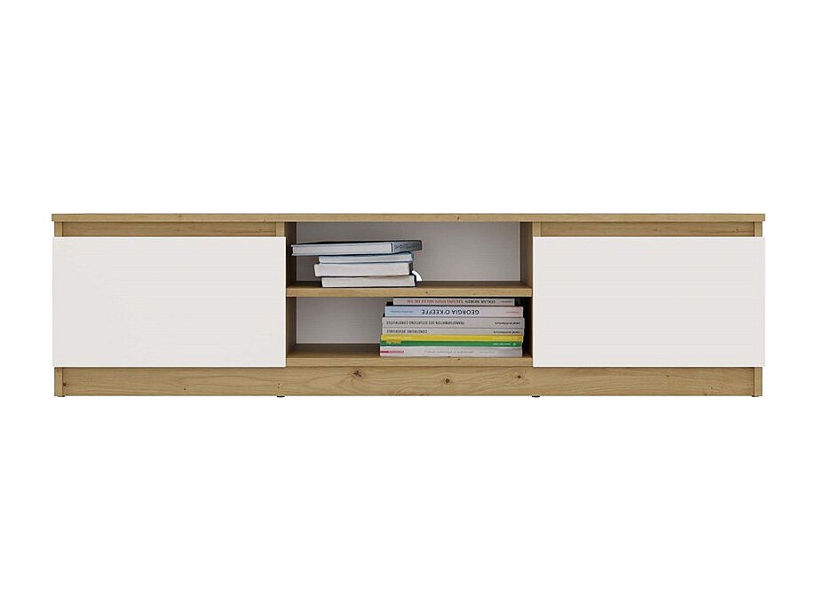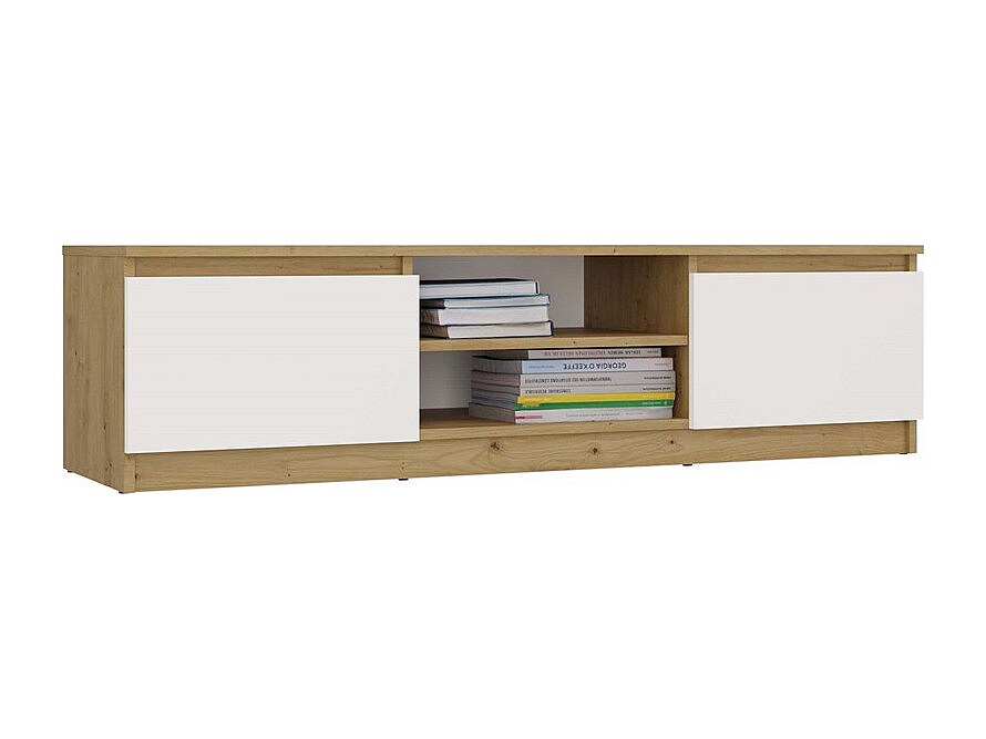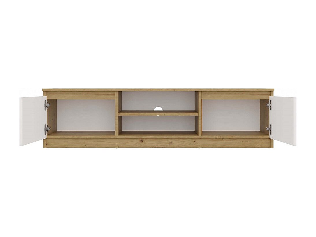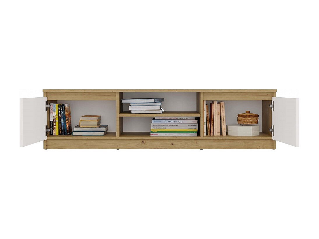 TIVOLI - Meuble TV style moderne - 140x40x36cm - 2 niches + 2 portes - Blanc et artisan