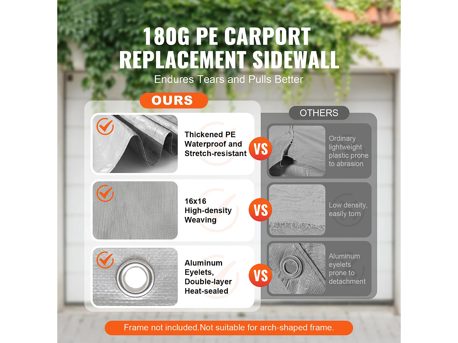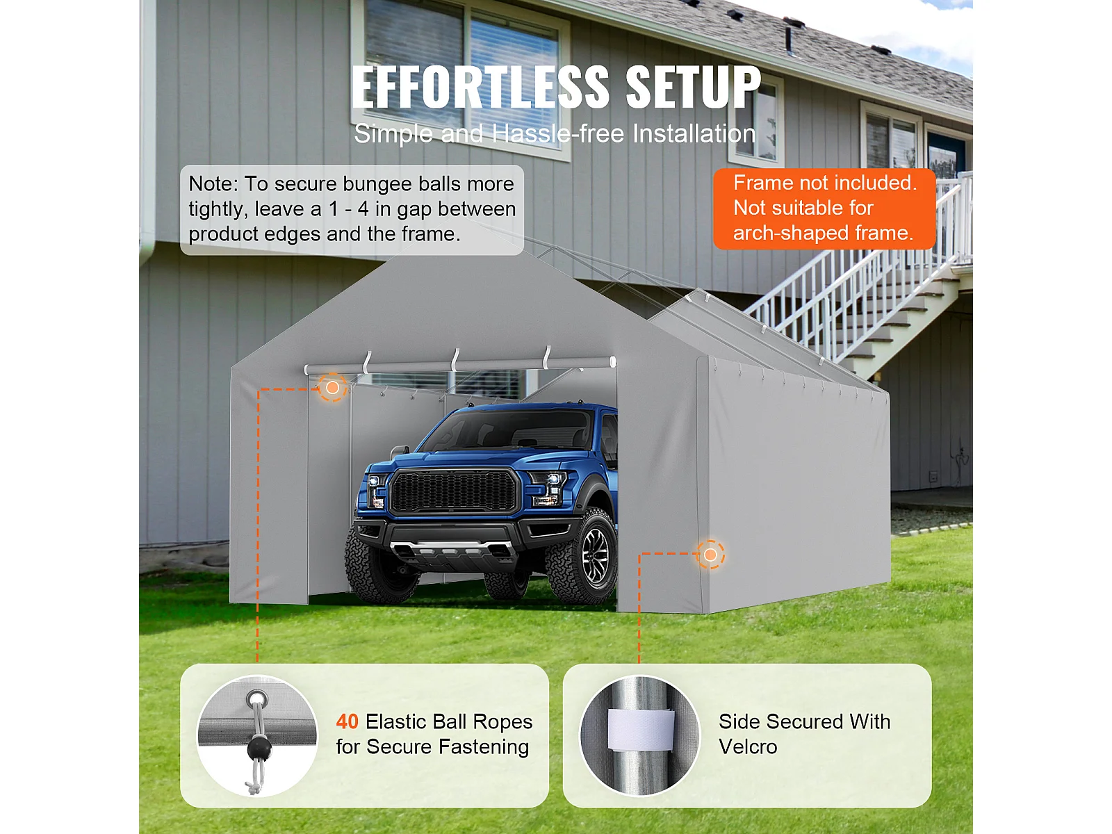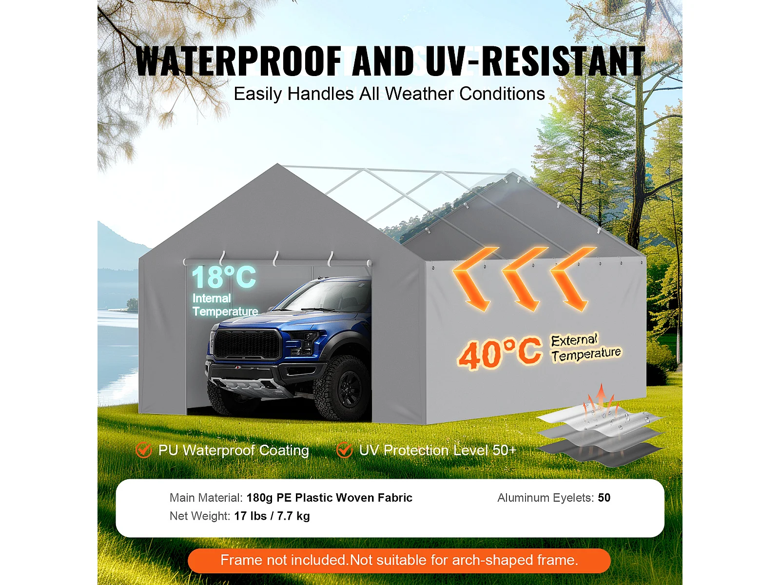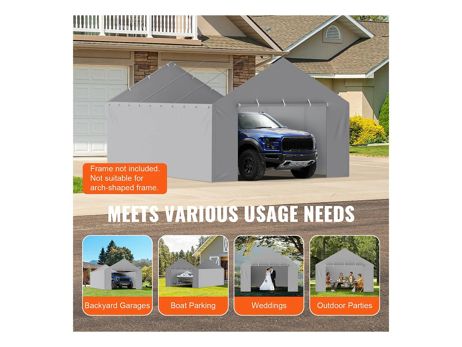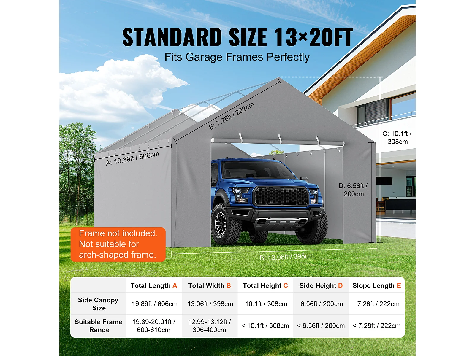 Toile D'Avent SucceBuy de Rechange pour Abri D'Auto / Carport, 396 x 610 cm, avec Paroi Latérale, Gris