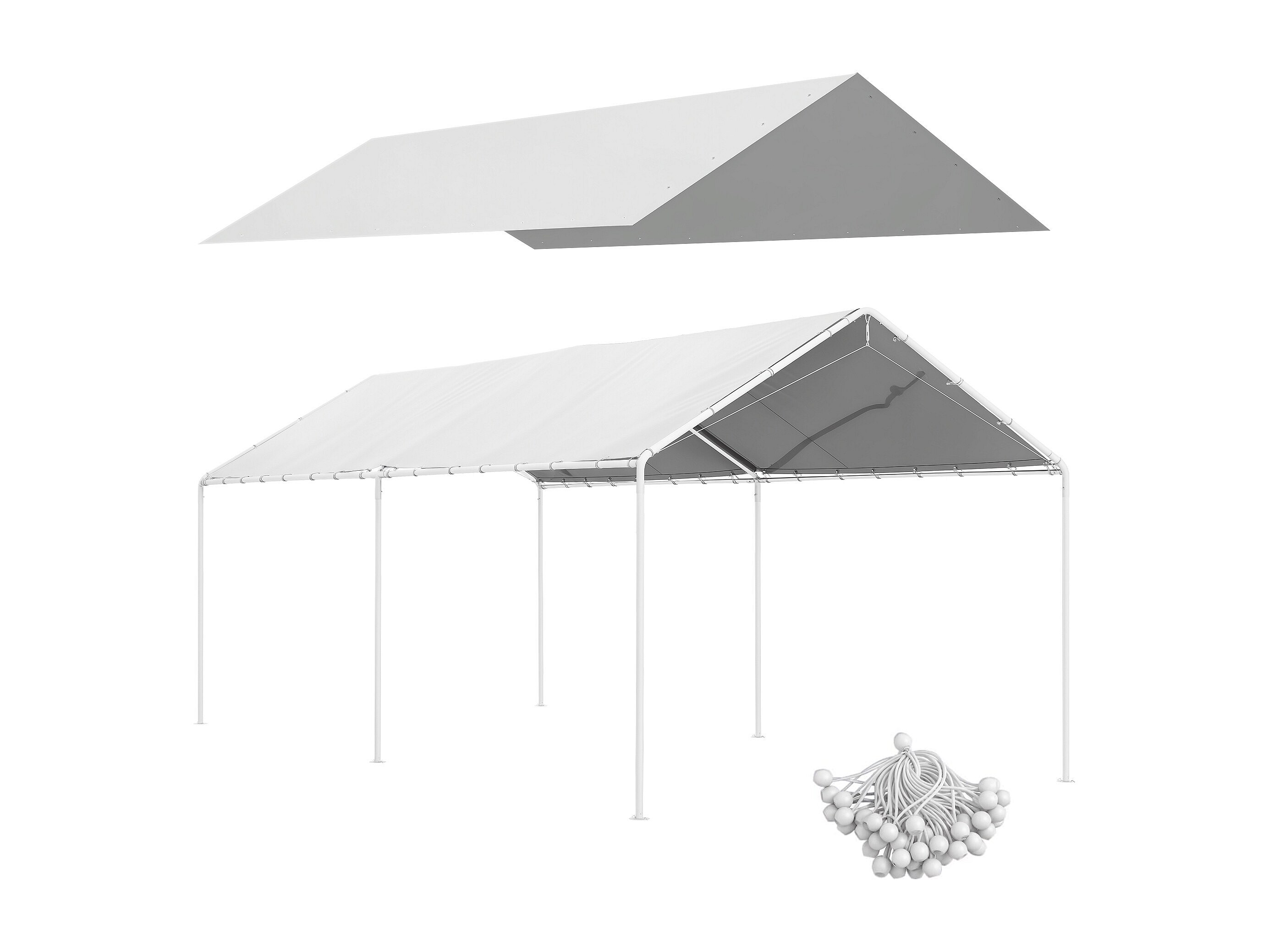 Toile de rechange carport auvent voiture dim. 6L x 3l m tendeurs élastiques inclus PE haute densité blanc