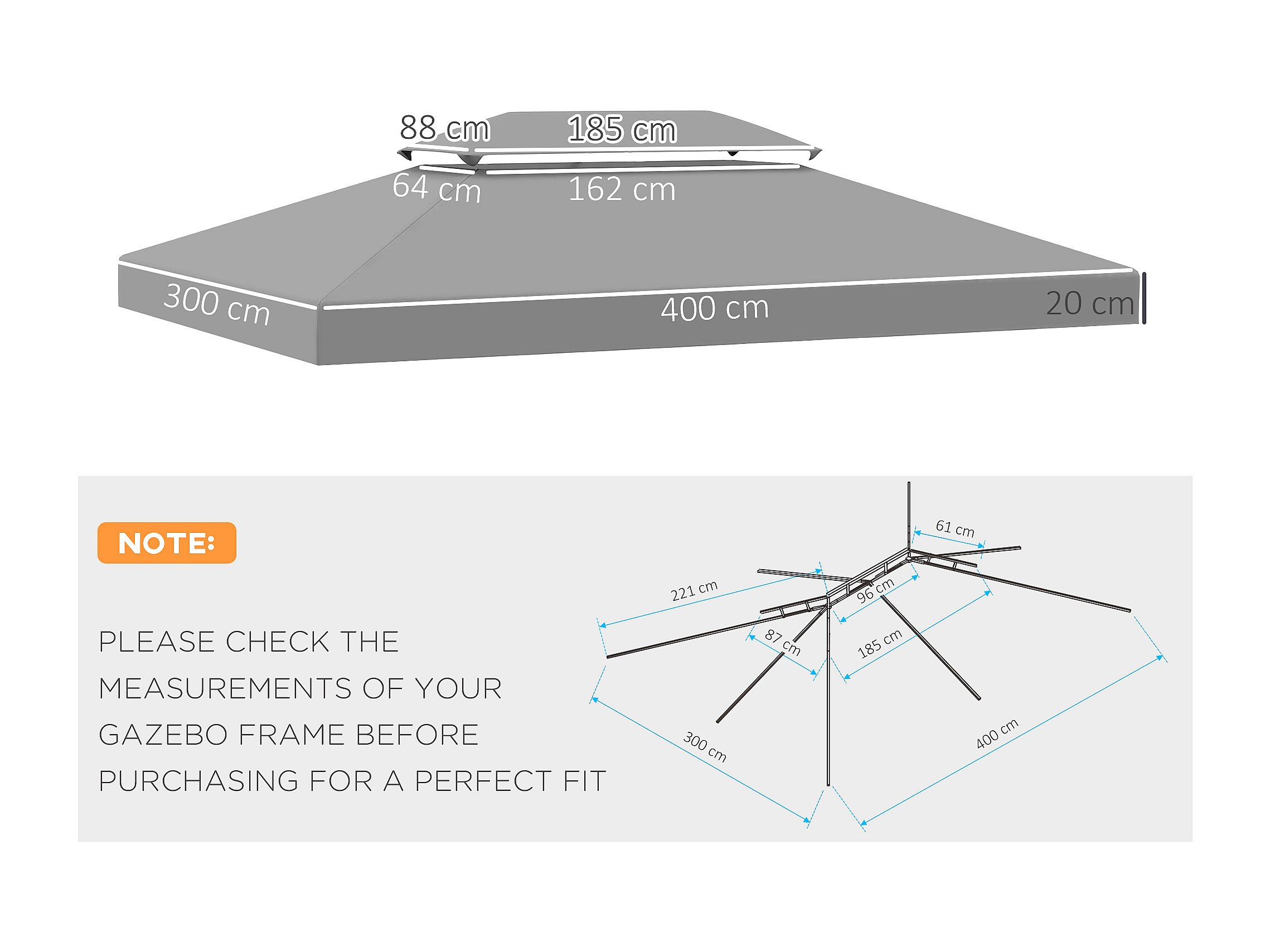 Toile de rechange pour pavillon tonnelle tente 3 x 4 m polyester haute densité 180 g/m² gris clair