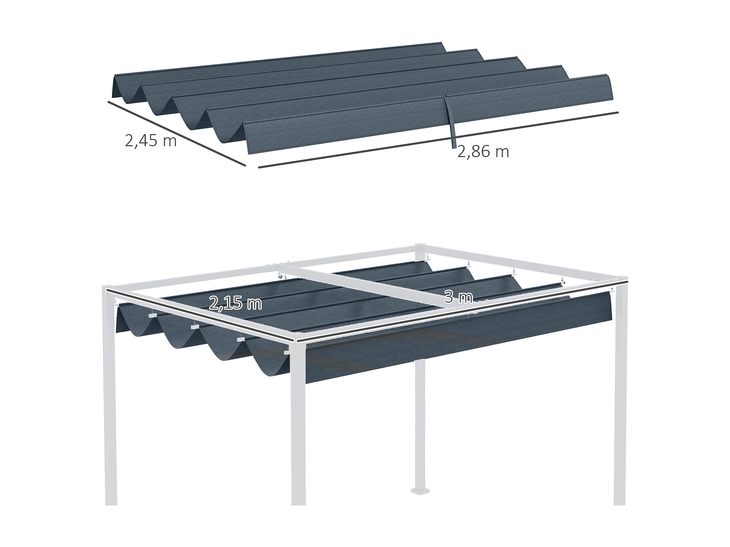 Toile de rechange pour pergola rétractable 4 x 3 m polyester haute densité 180 g/m² imperméabilisé gris