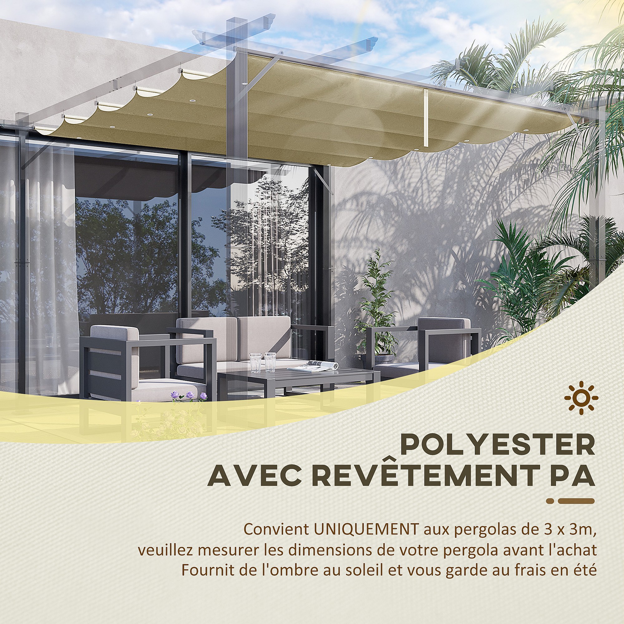 Toile de rechange pour pergola rétractable 3 x 3 m polyester haute densité 180 g/m² imperméabilisé beige