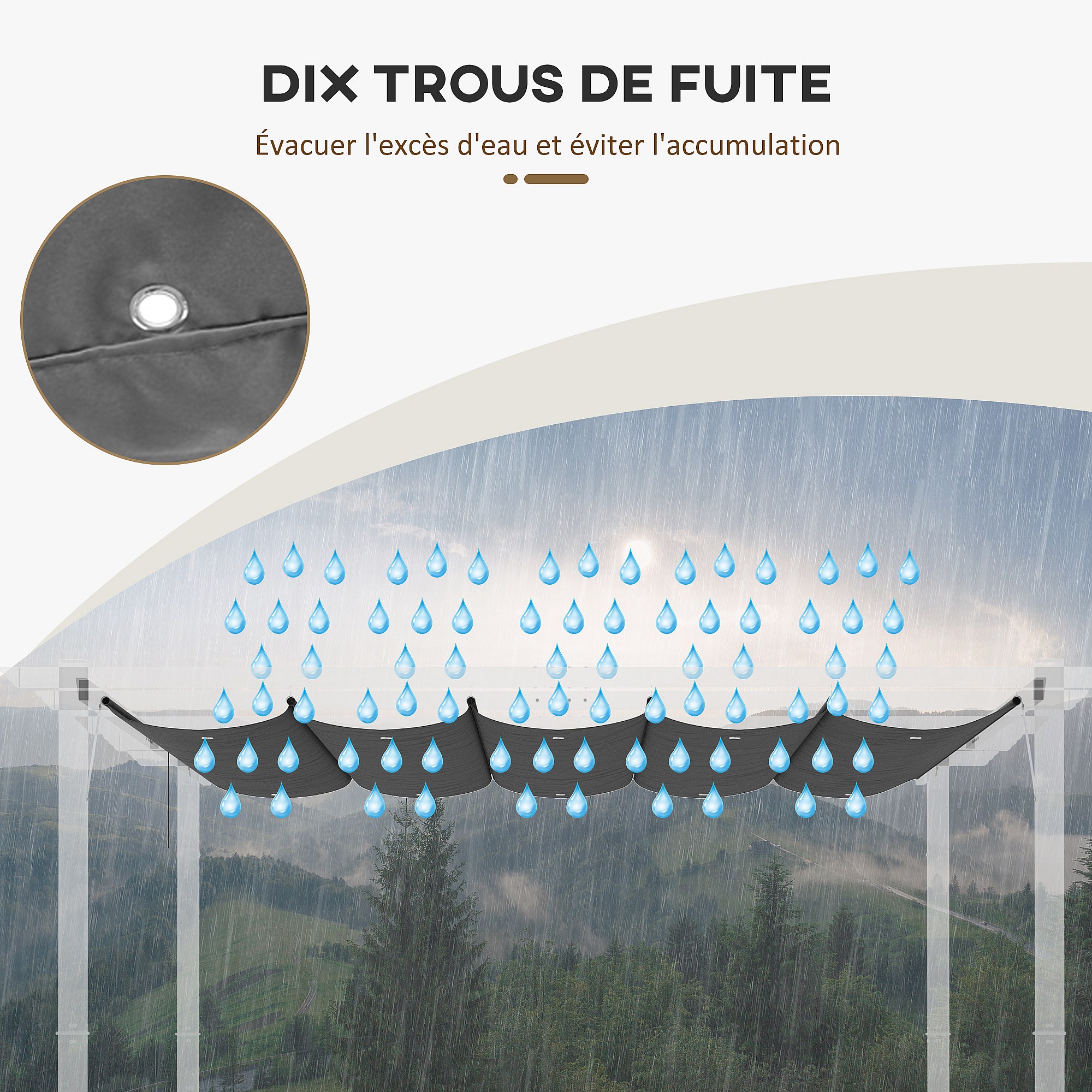 Toile de rechange pour pergola rétractable 3 x 3 m polyester haute densité 180 g/m² imperméabilisé gris
