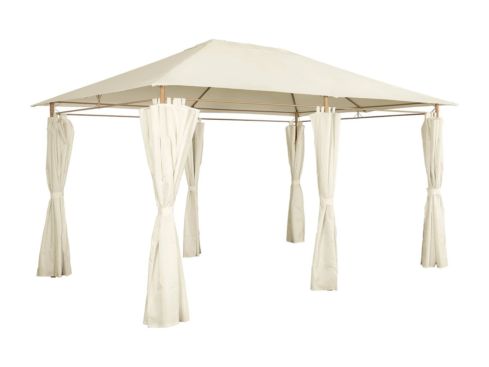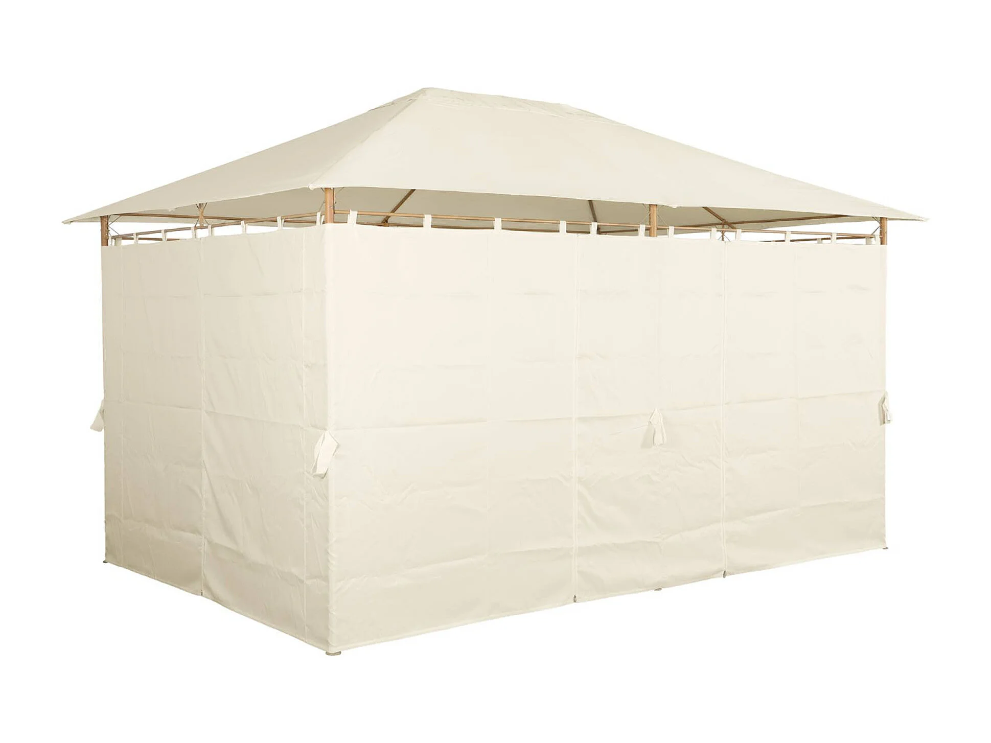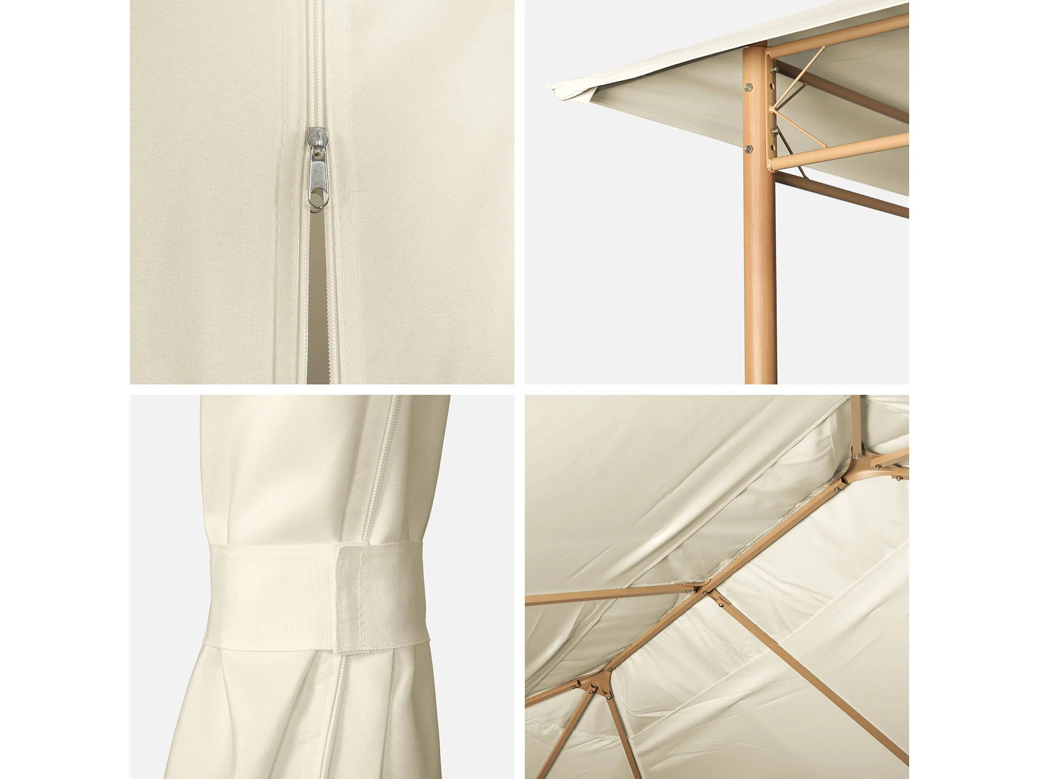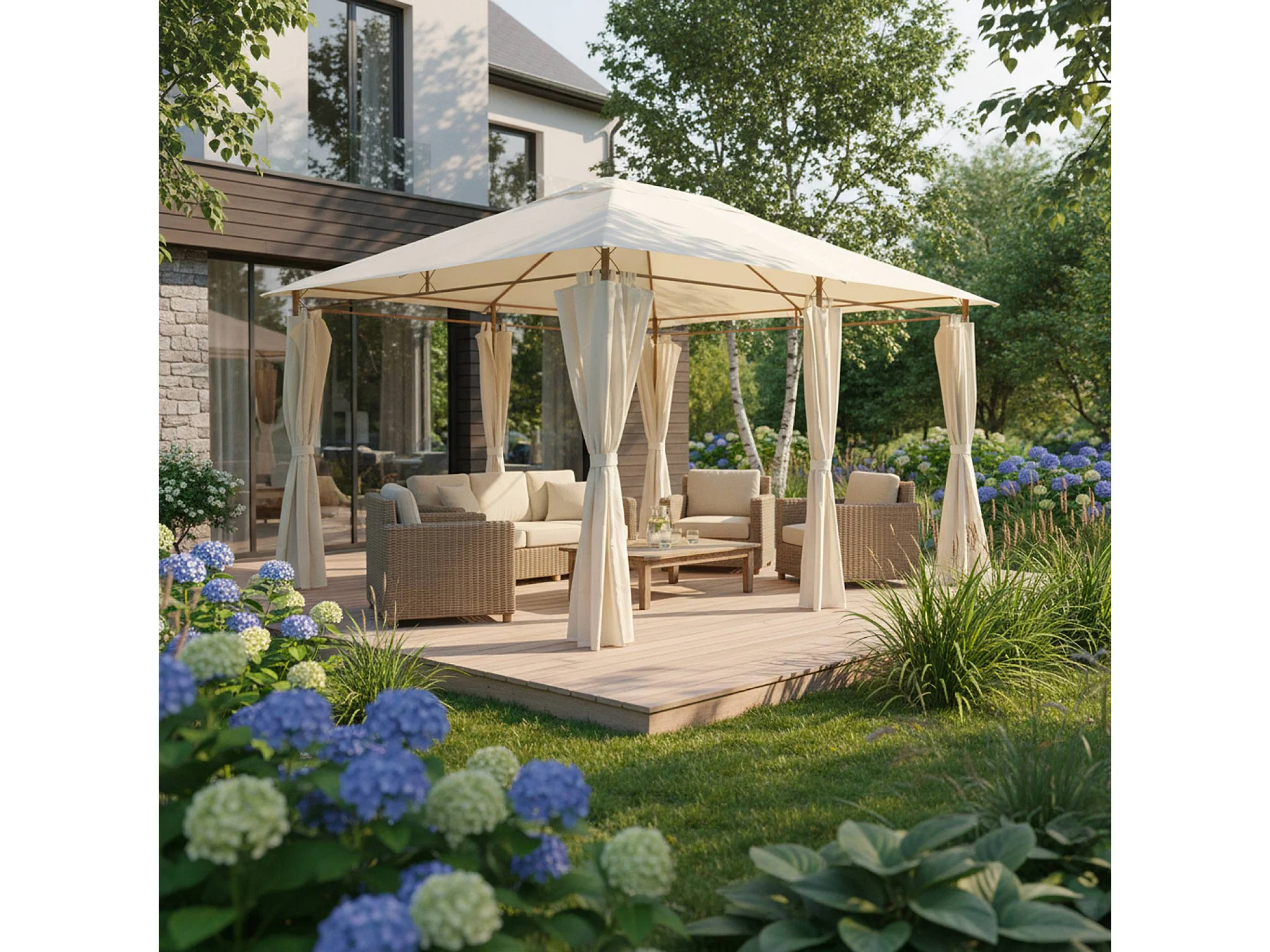 Tonnelle 3x4 m - Divio - Imitation bois. toile écru - Pergola avec rideaux. tente de jardin. barnum. chapiteau. réception