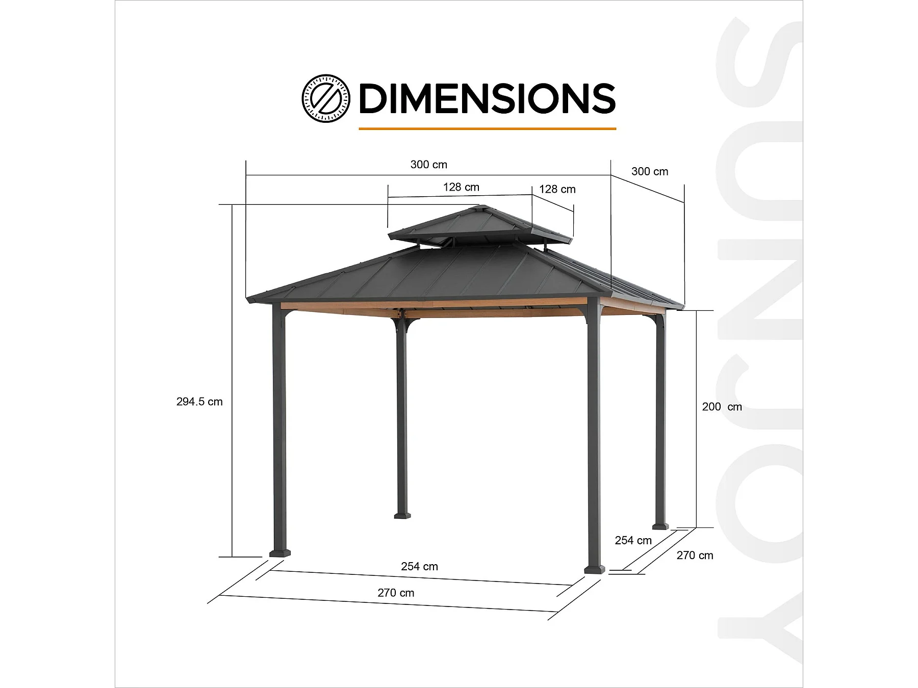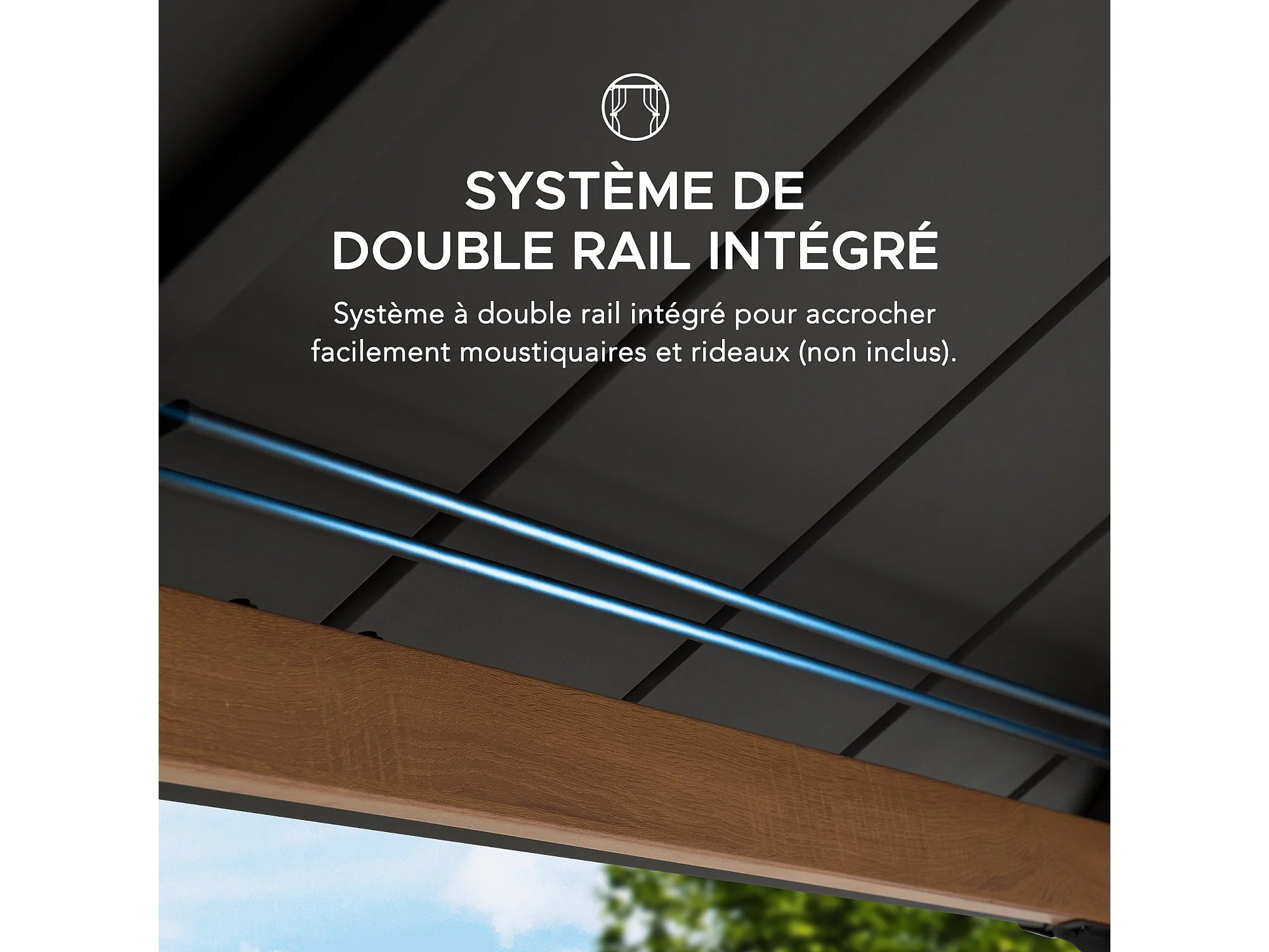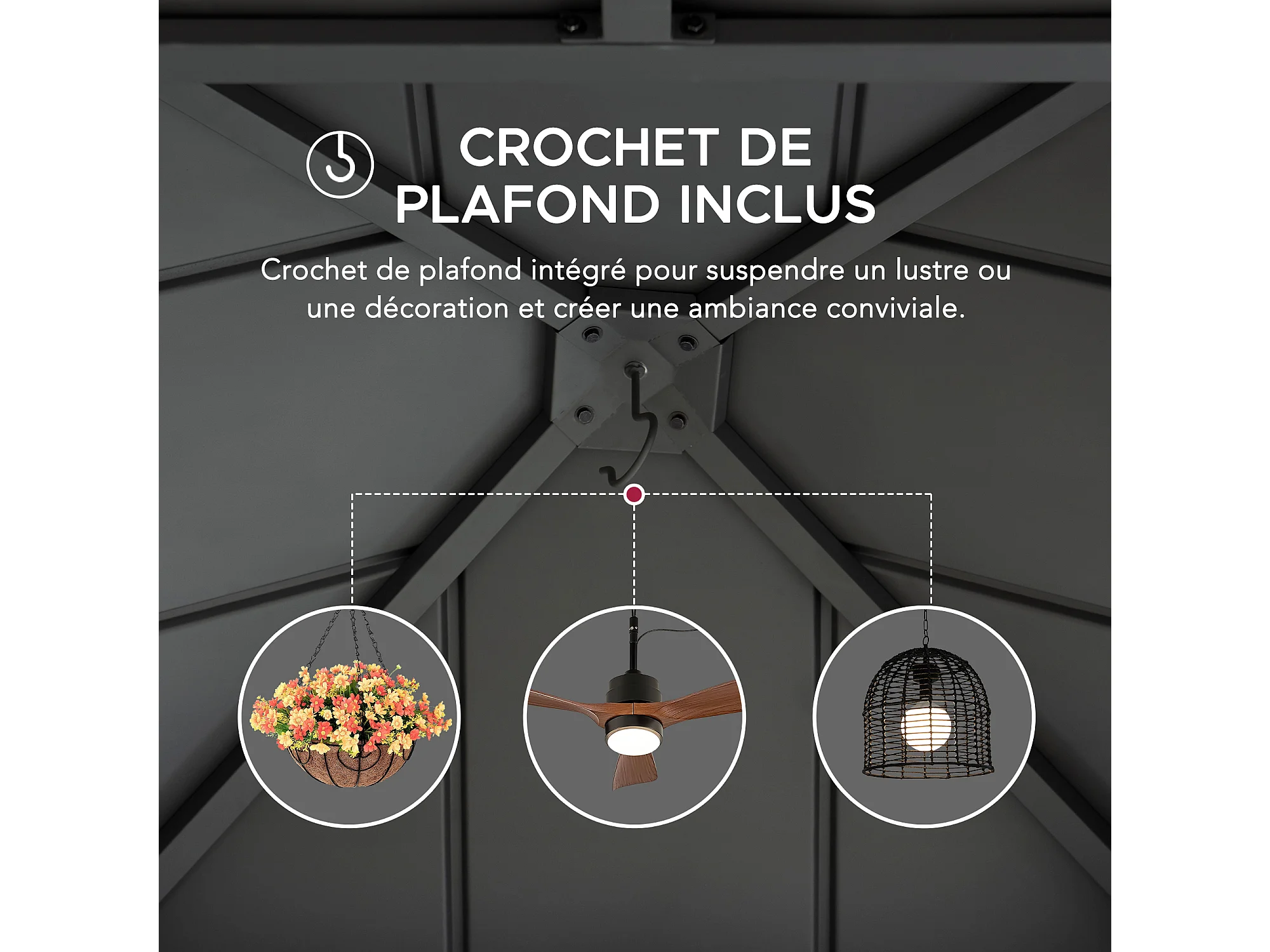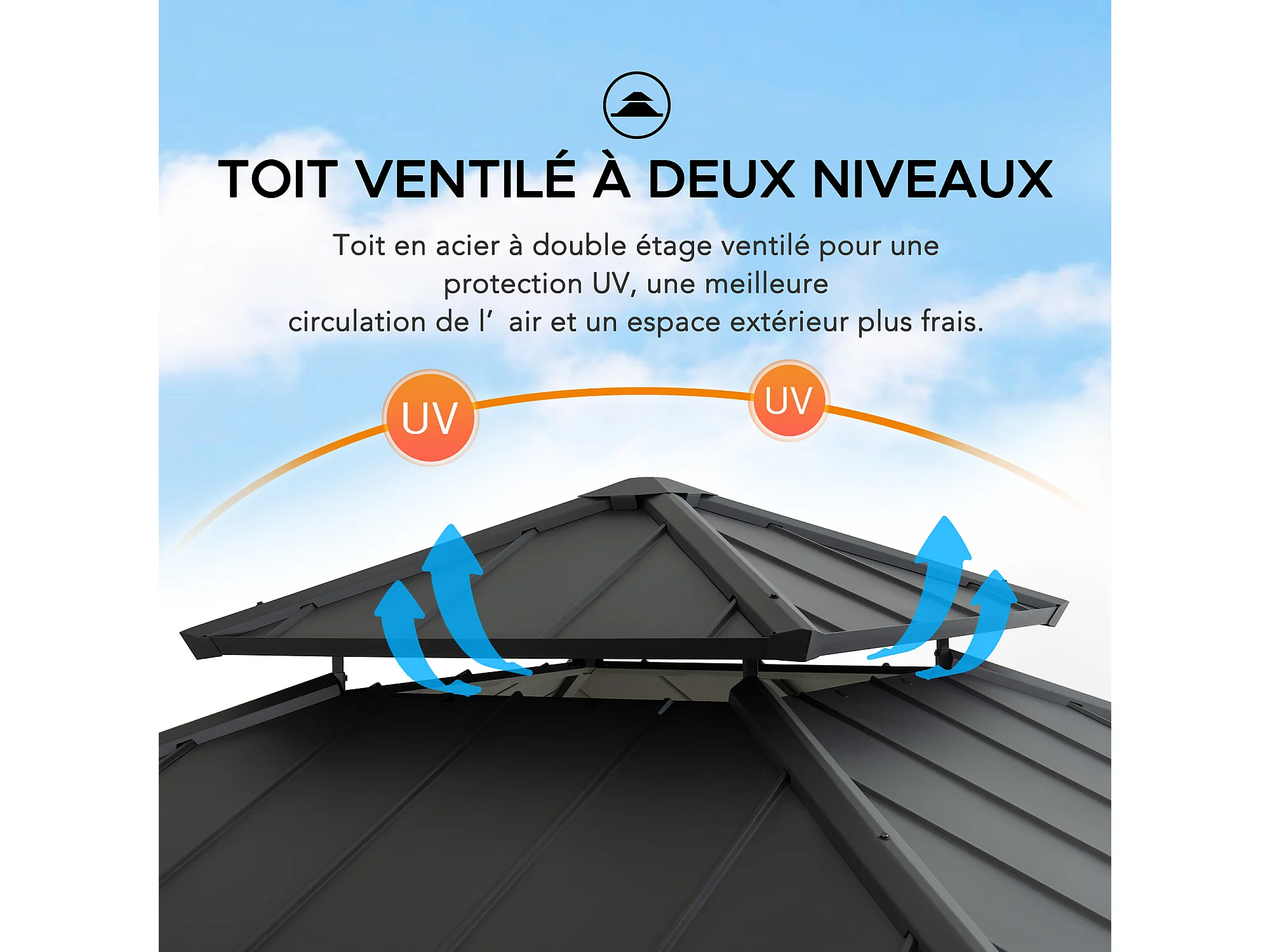 Tonnelle à toit rigide en acier avec toit en acier à 2 niveaux et crochet de plafond PASU 300 cm x 300 cm