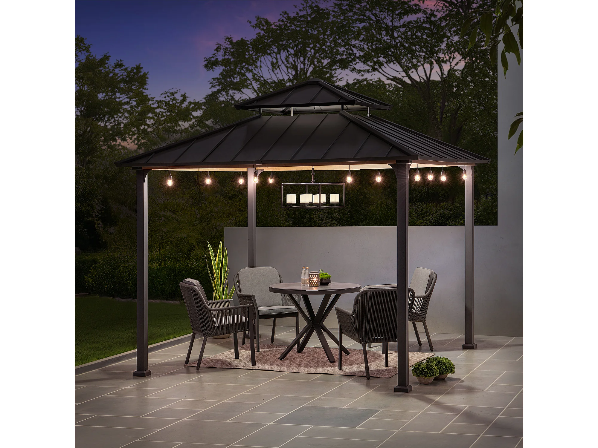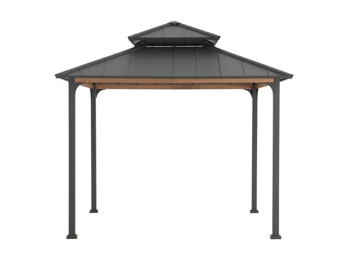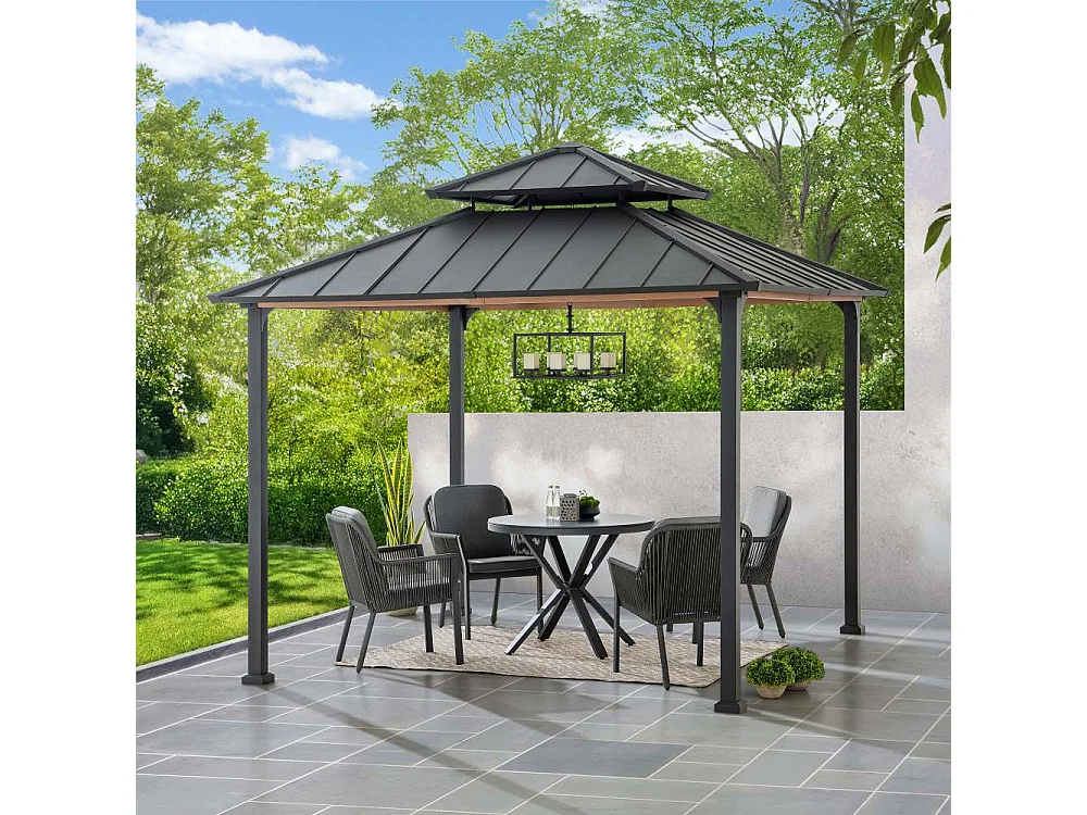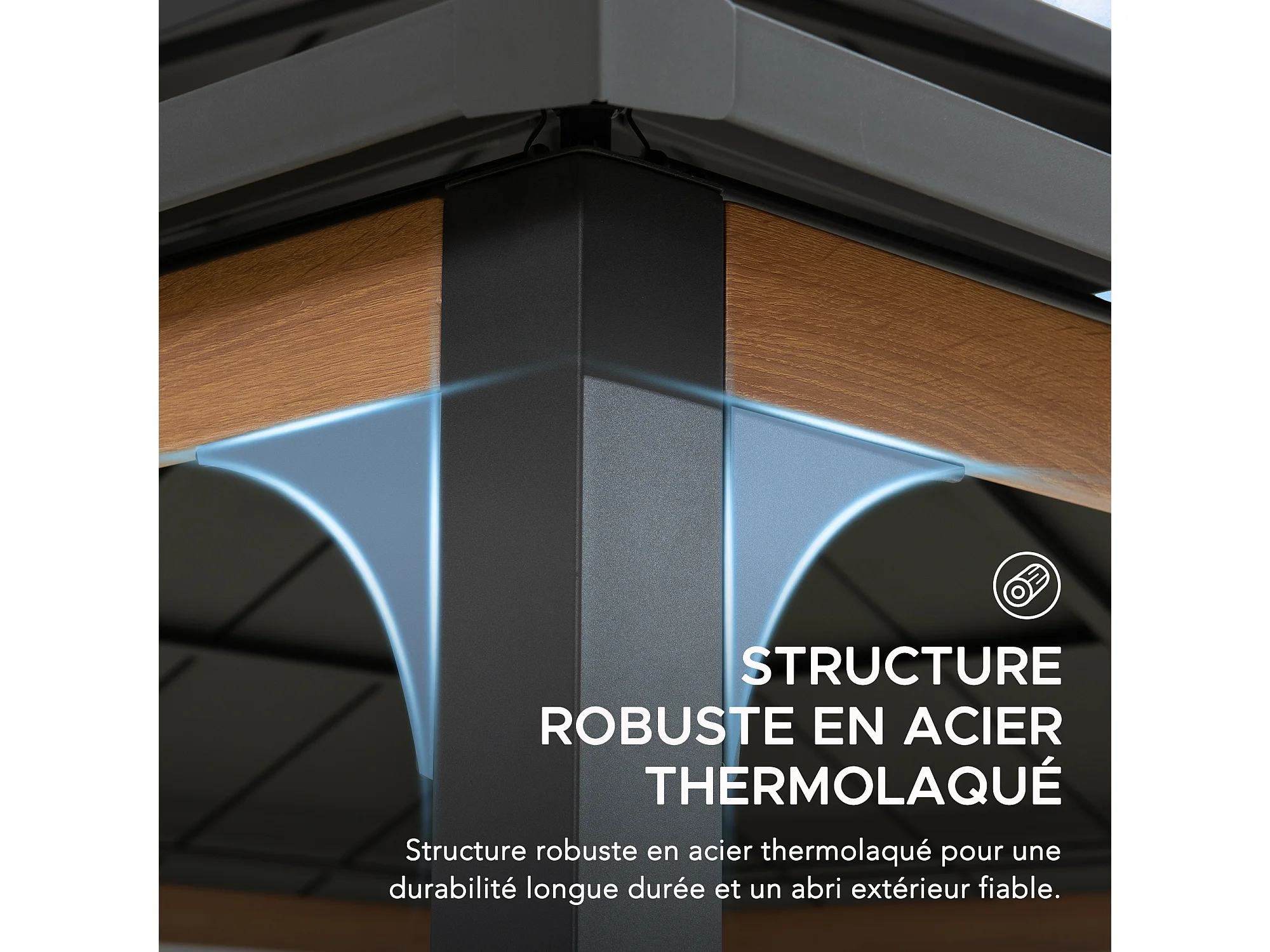 Tonnelle à toit rigide en acier avec toit en acier à 2 niveaux et crochet de plafond PASU 300 cm x 300 cm