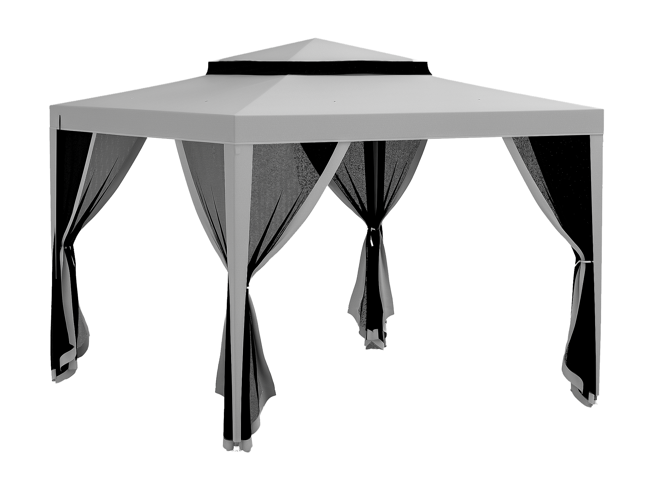 Pavillon de jardin style contemporain - barnum avec rideaux - dim. 2,96L x 2,96l x 2,8H m - alu. polyester gris