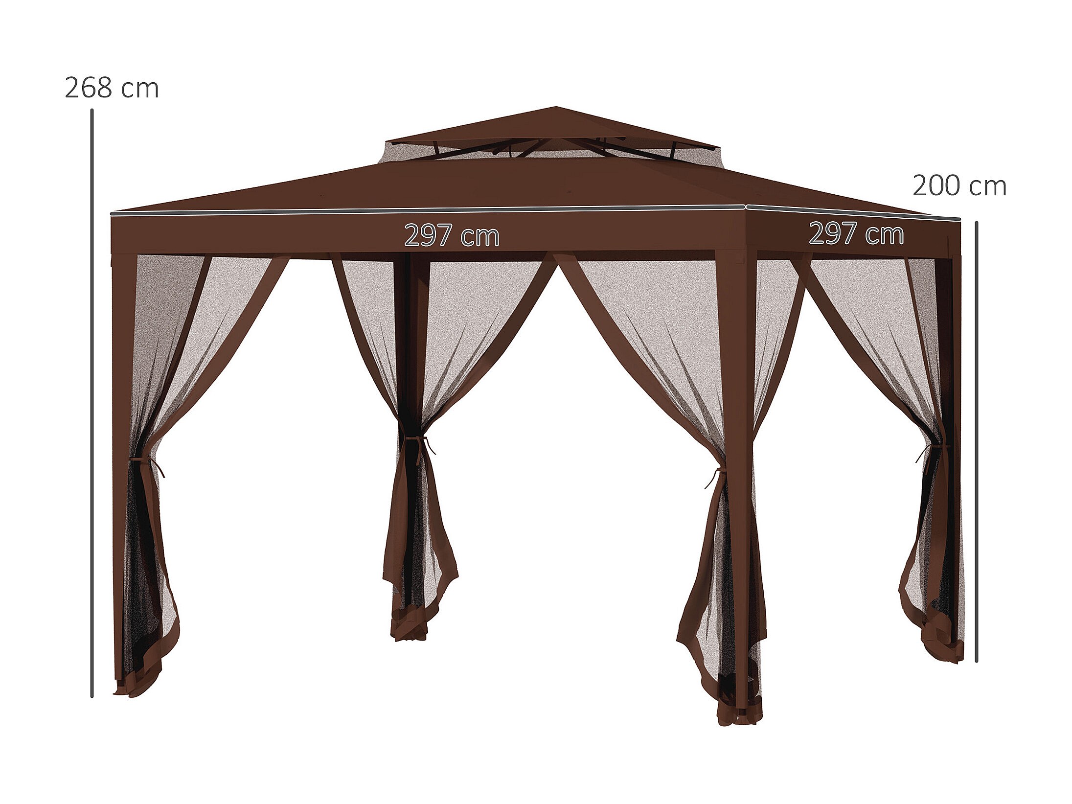 Tonnelle barnum de jardin 3L x 3l m avec 4 moustiquaires amovibles - double toit - métal polyester marron