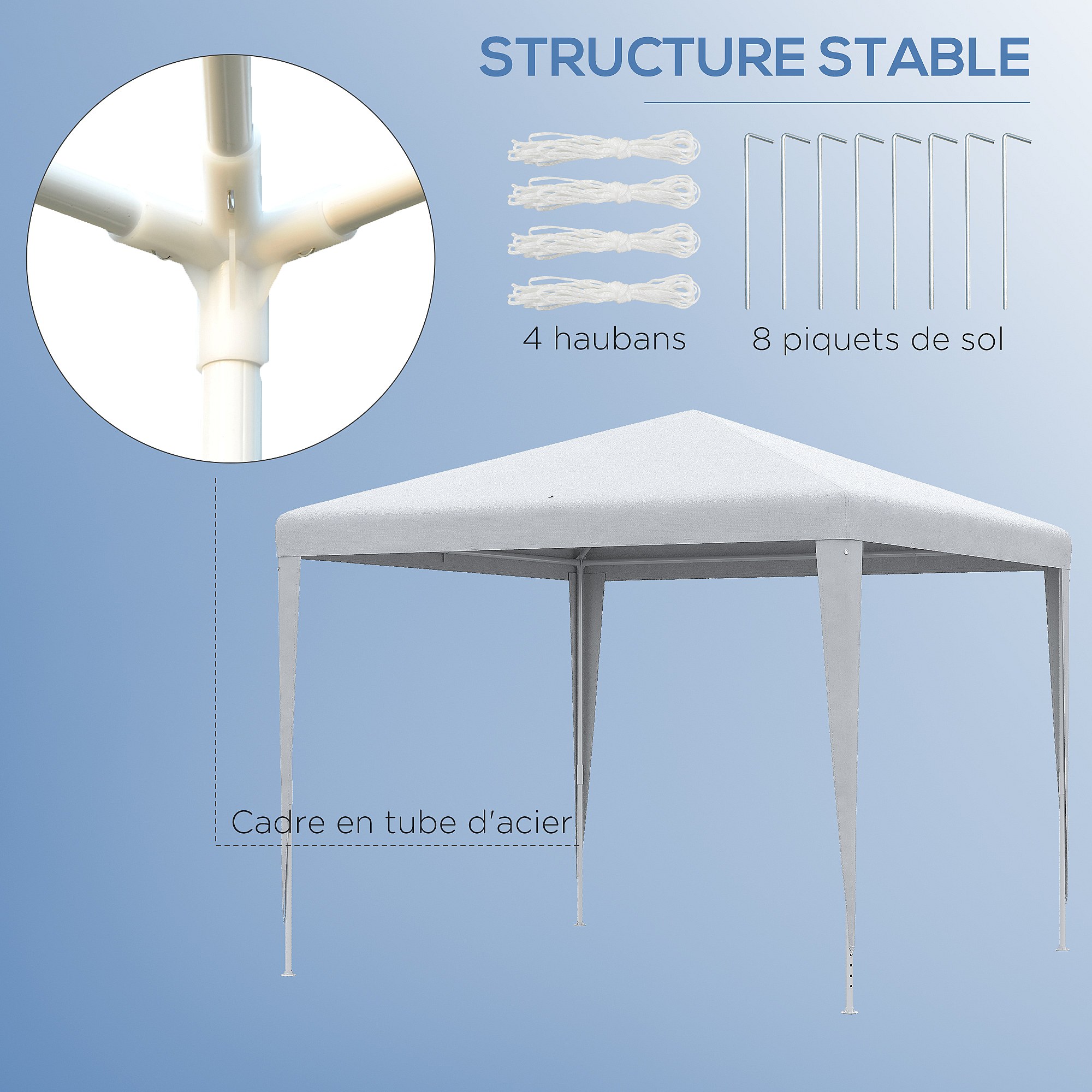 Tonnelle de jardin tente pliante barnum pop-up 2 x 2 m 4 parois latérales amovibles 2 fenêtres sac de transport blanc