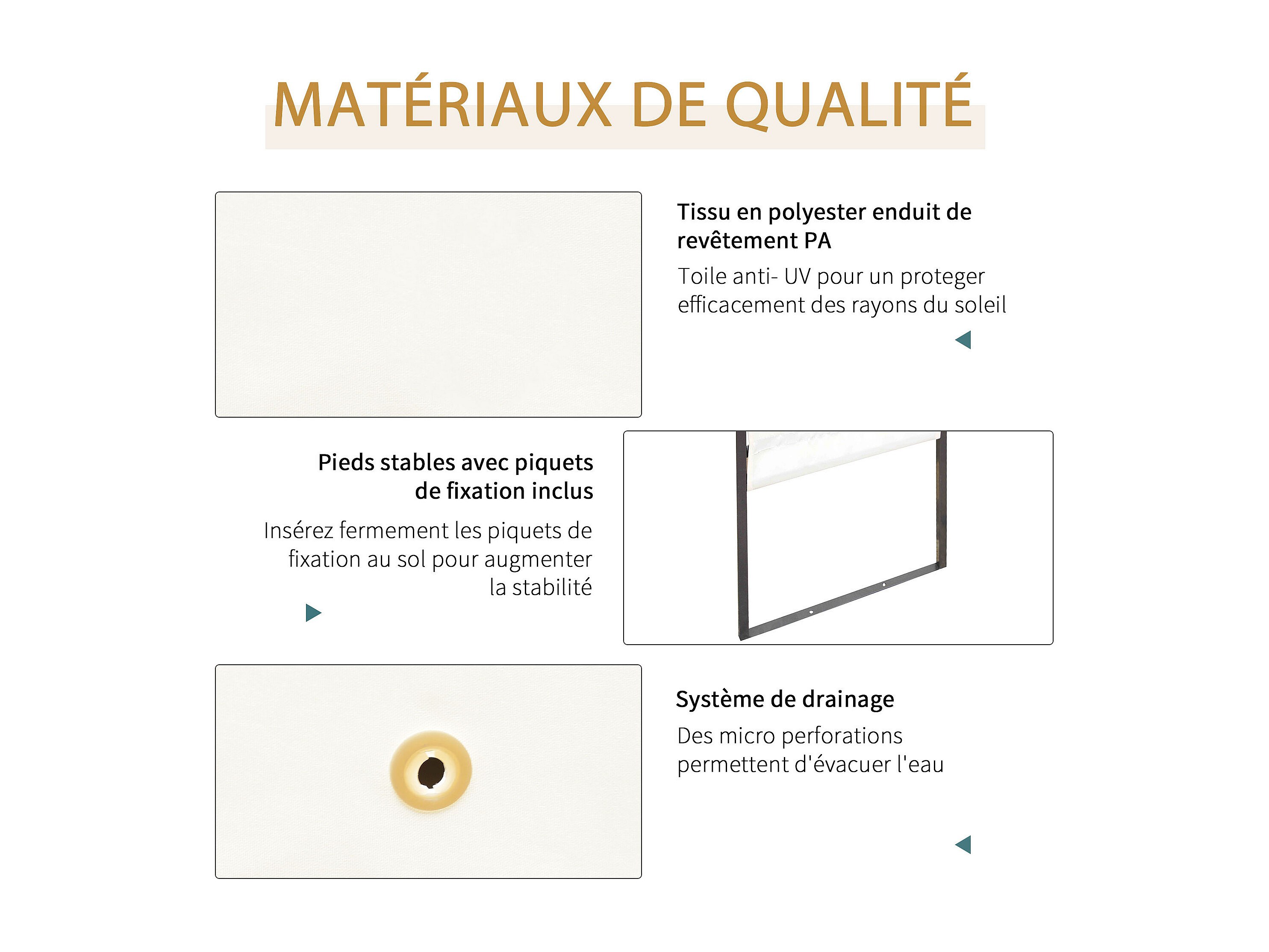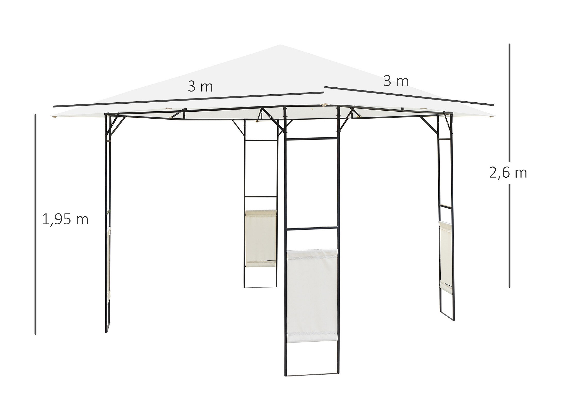 Tonnelle barnum pavillon de jardin dim. 3L x 3l x 2,6H m métal époxy toile polyester haute densité crème