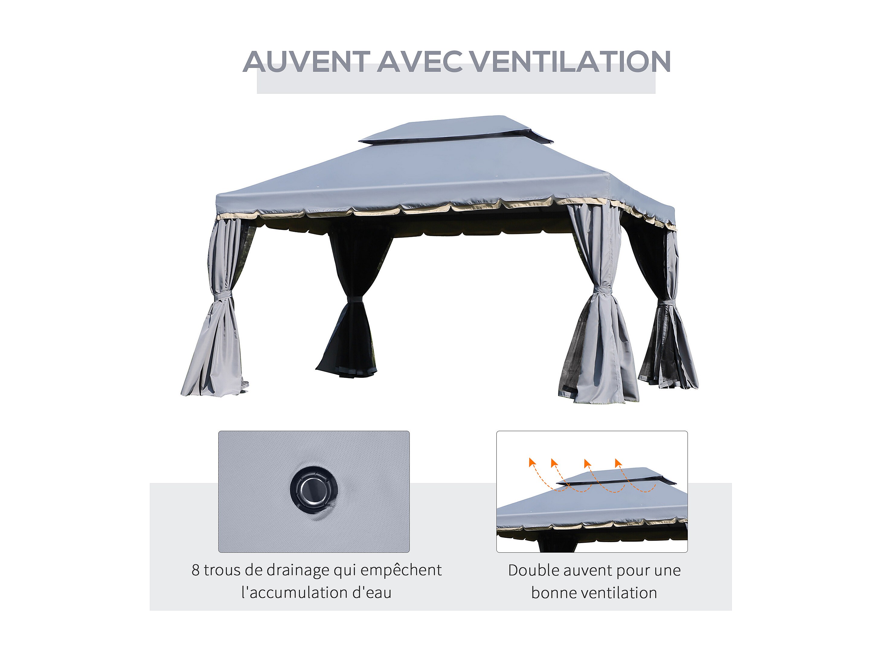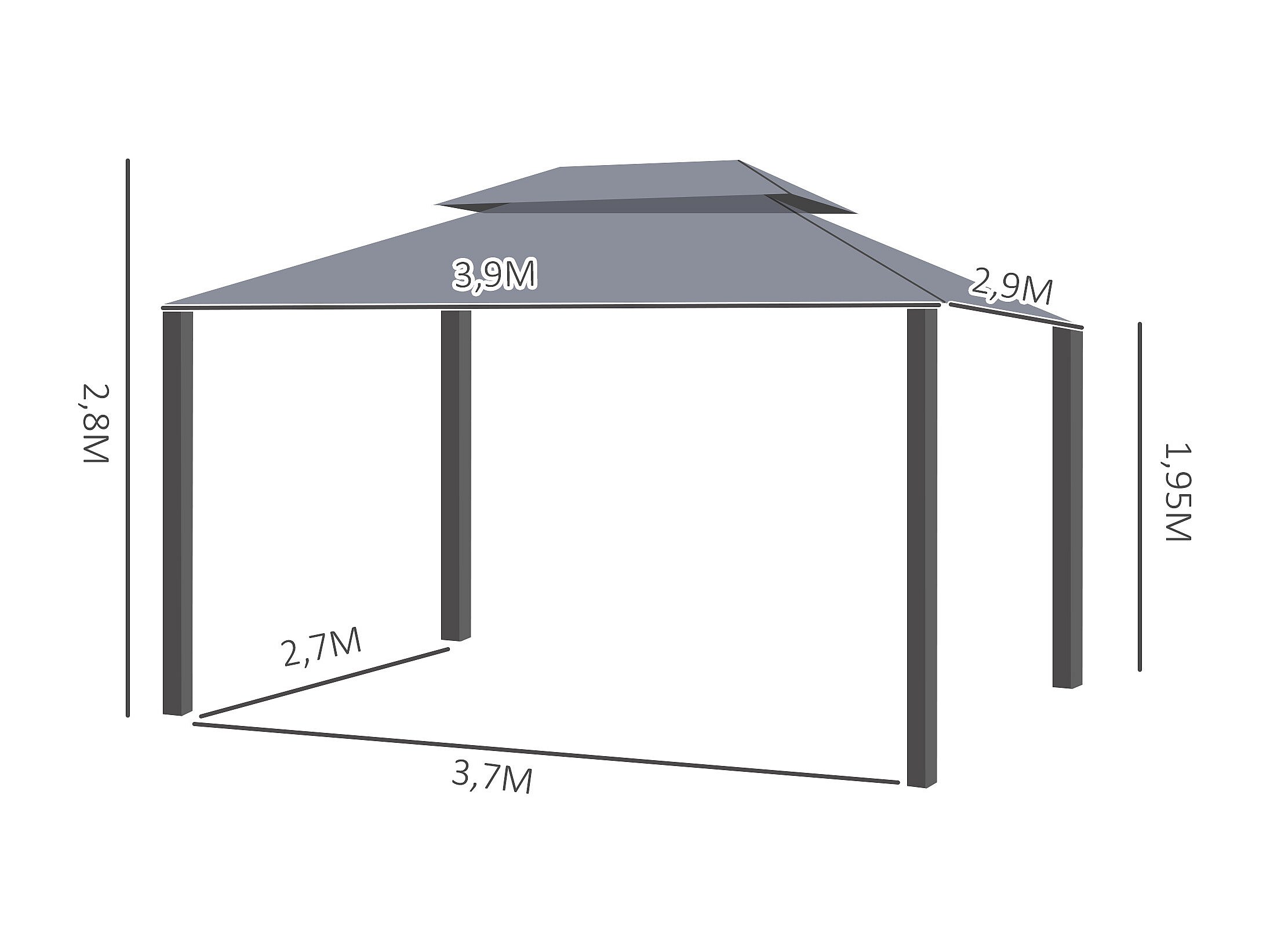 Tonnelle barnum pavillon de jardin style colonial double toit toile moustiquaires et toiles amovibles 3,9L x 2,9l x 2,8H m gris