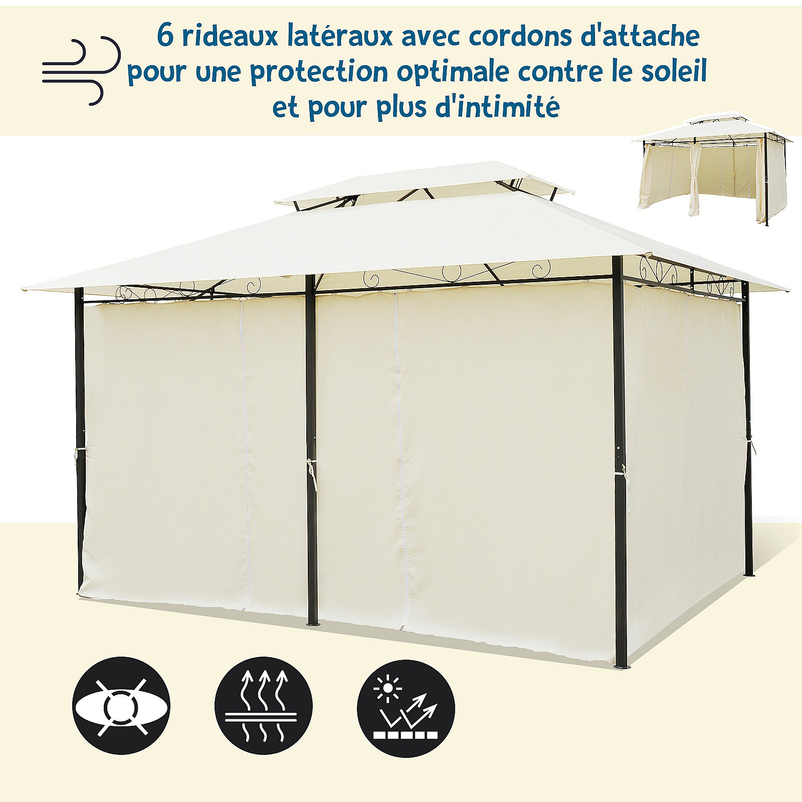 Tonnelle barnum pavillon de jardin style colonial double toit toiles latérales amovibles 3L x 4l x 2,65H m crème