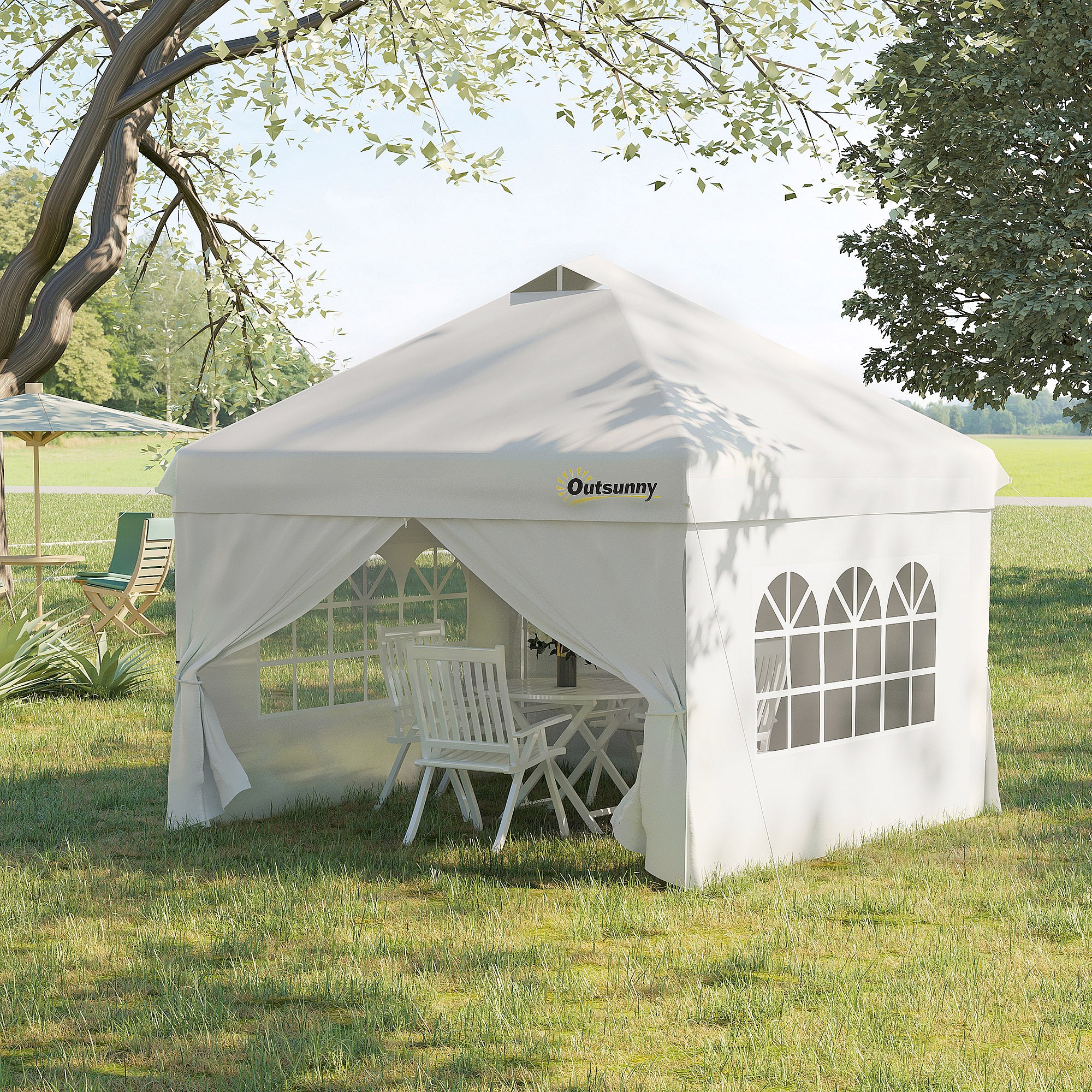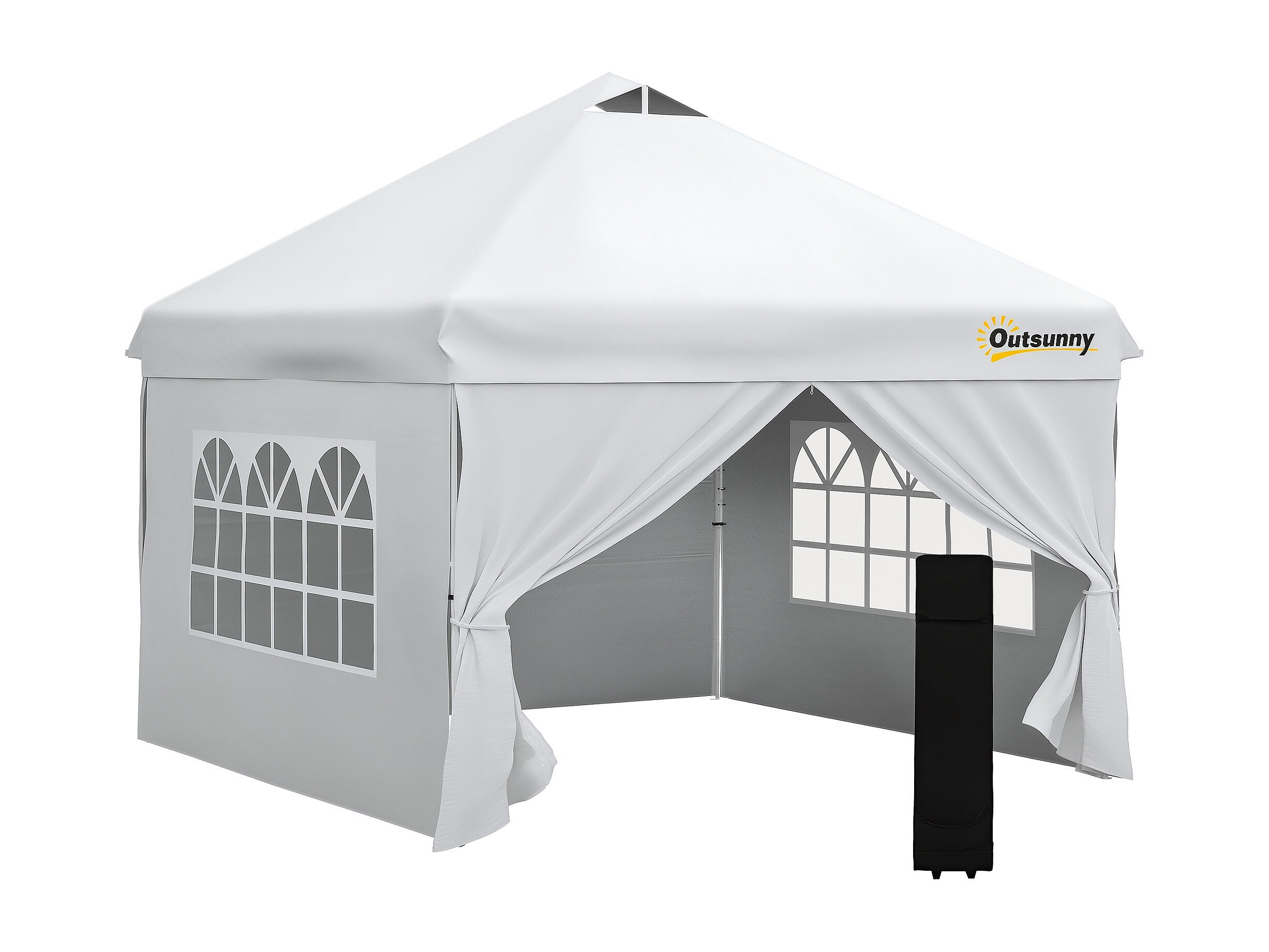 Tonnelle barnum pliant pop-up 3L x 3l x 2,84H m 4 parois latérales amovibles 2 fenêtres + sac de transport métal Oxford blanc