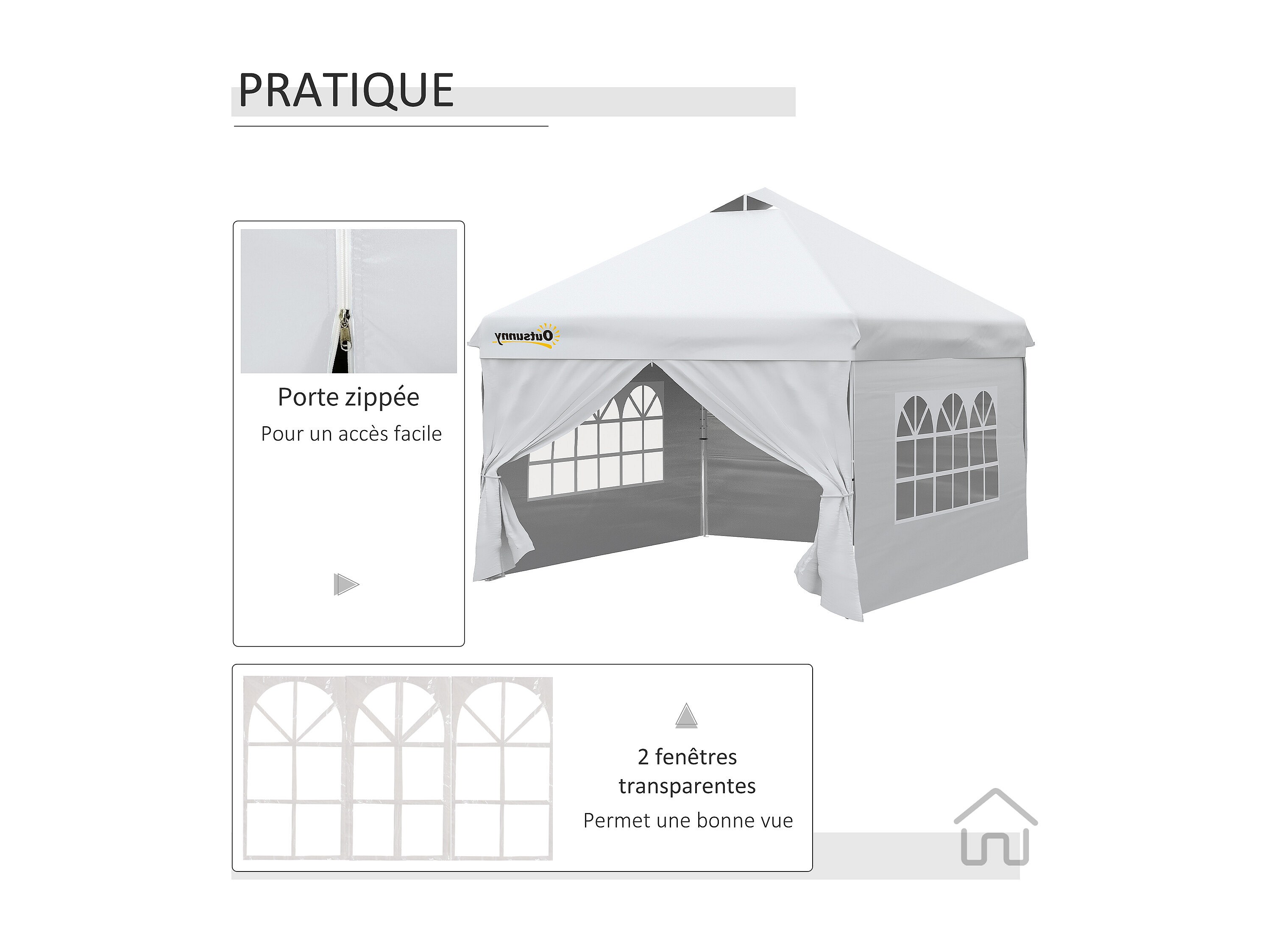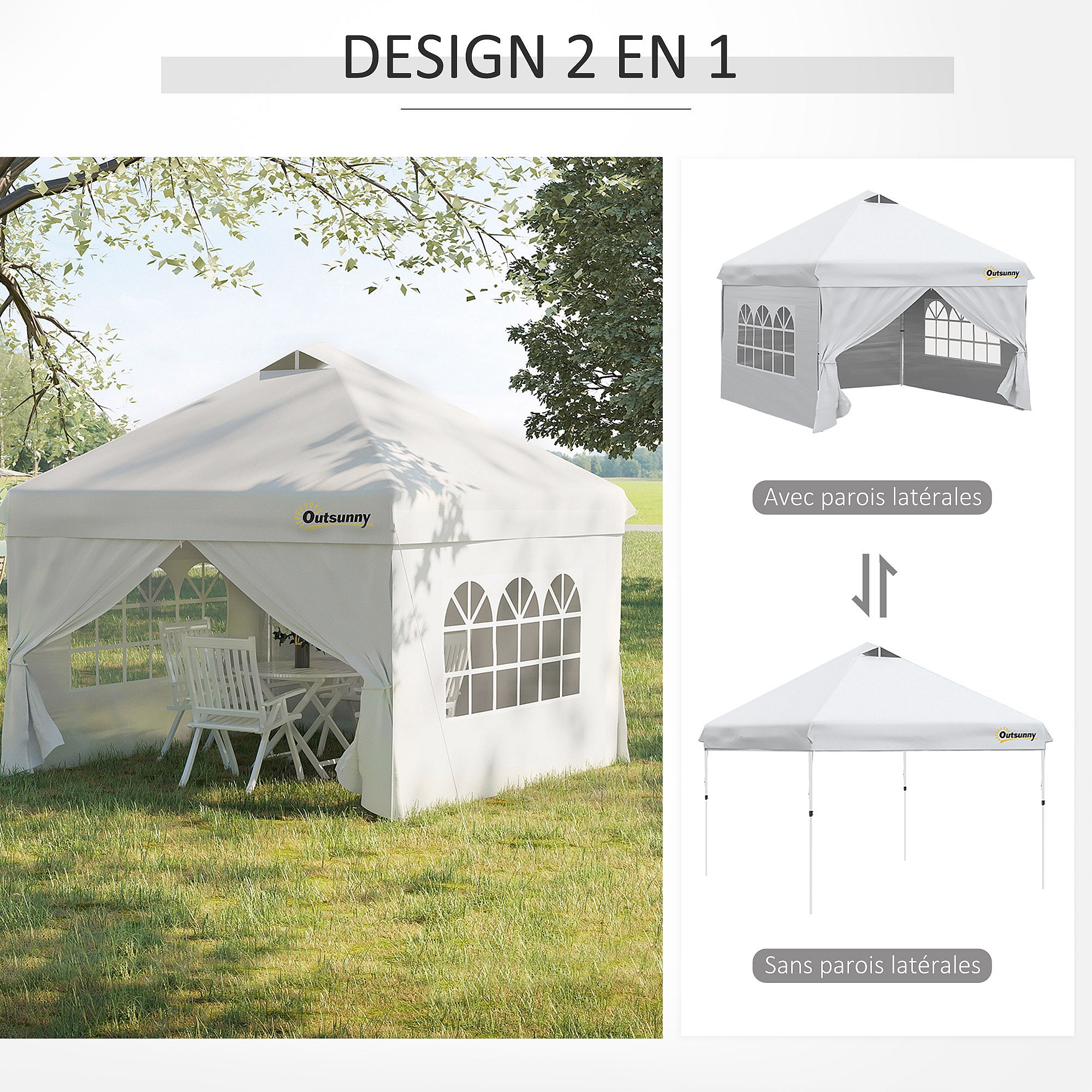 Tonnelle pop up pliante - barnum pliable - 4 cotés démontables - 4 fenêtres - acier oxford haute densité blanc