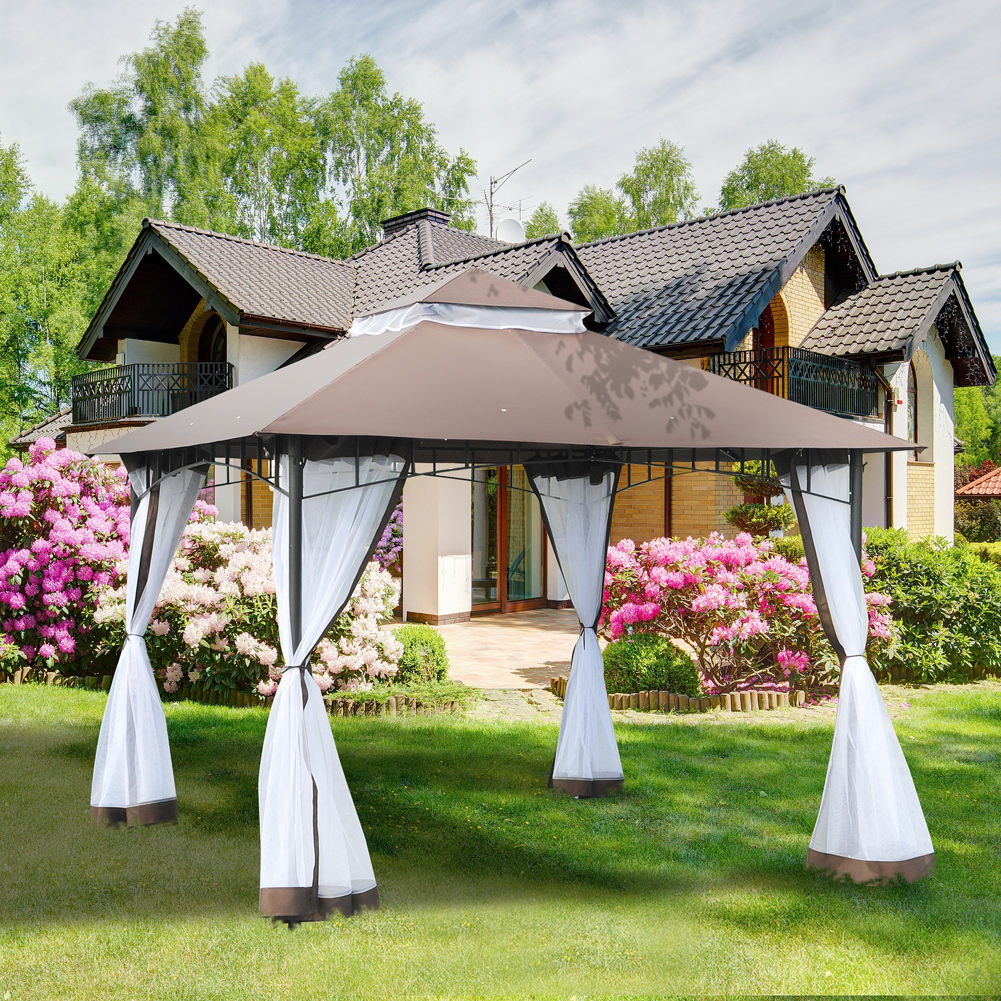 Tonnelle de Jardin Pergola 3,9 x 2,9 Moustiquaires Amovibles 6 Parois Structure Acier Auvent Tissu et velours Plastique et vinyle Havane