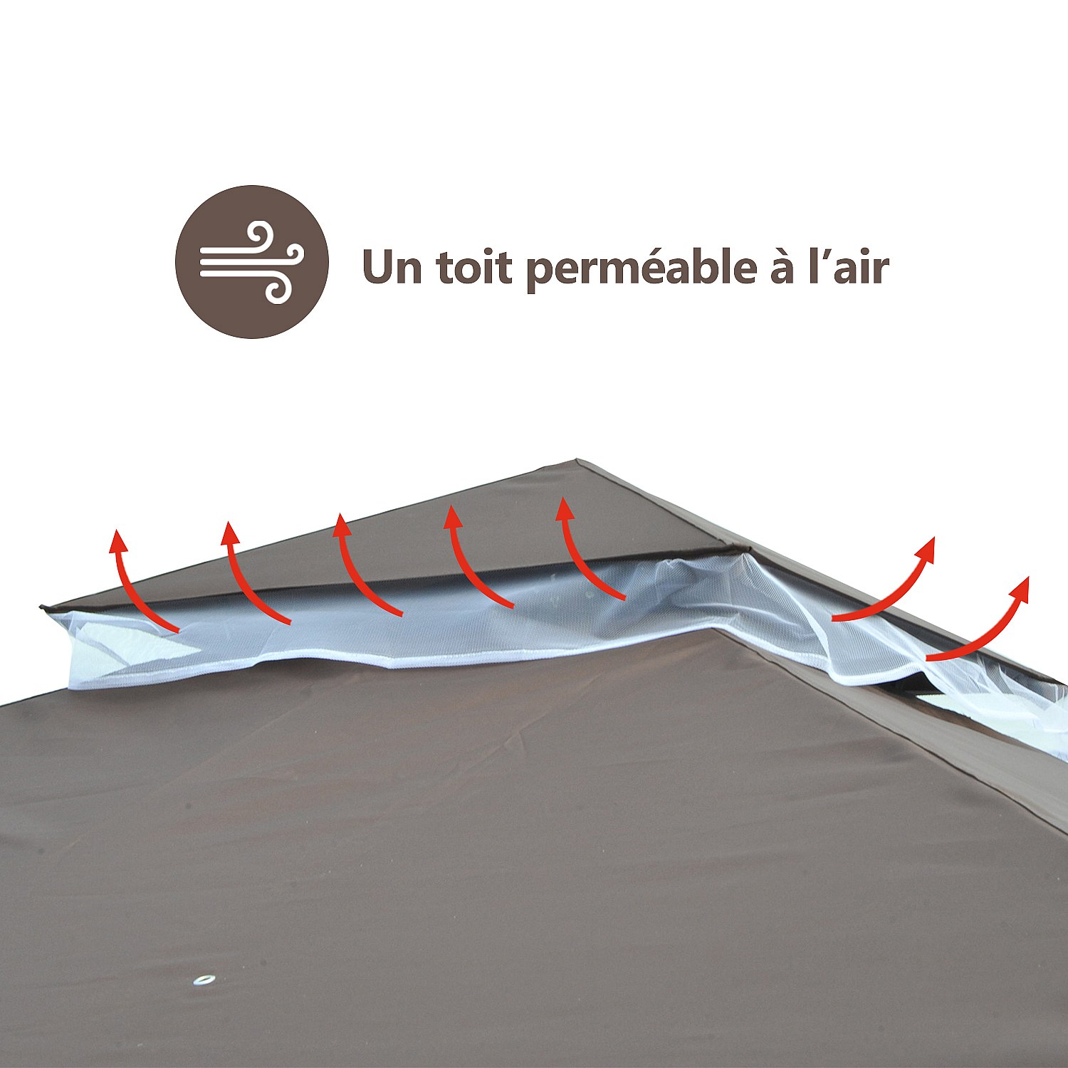 Tonnelle barnum de jardin 3L x 3l m avec 4 moustiquaires amovibles - double toit - métal polyester marron