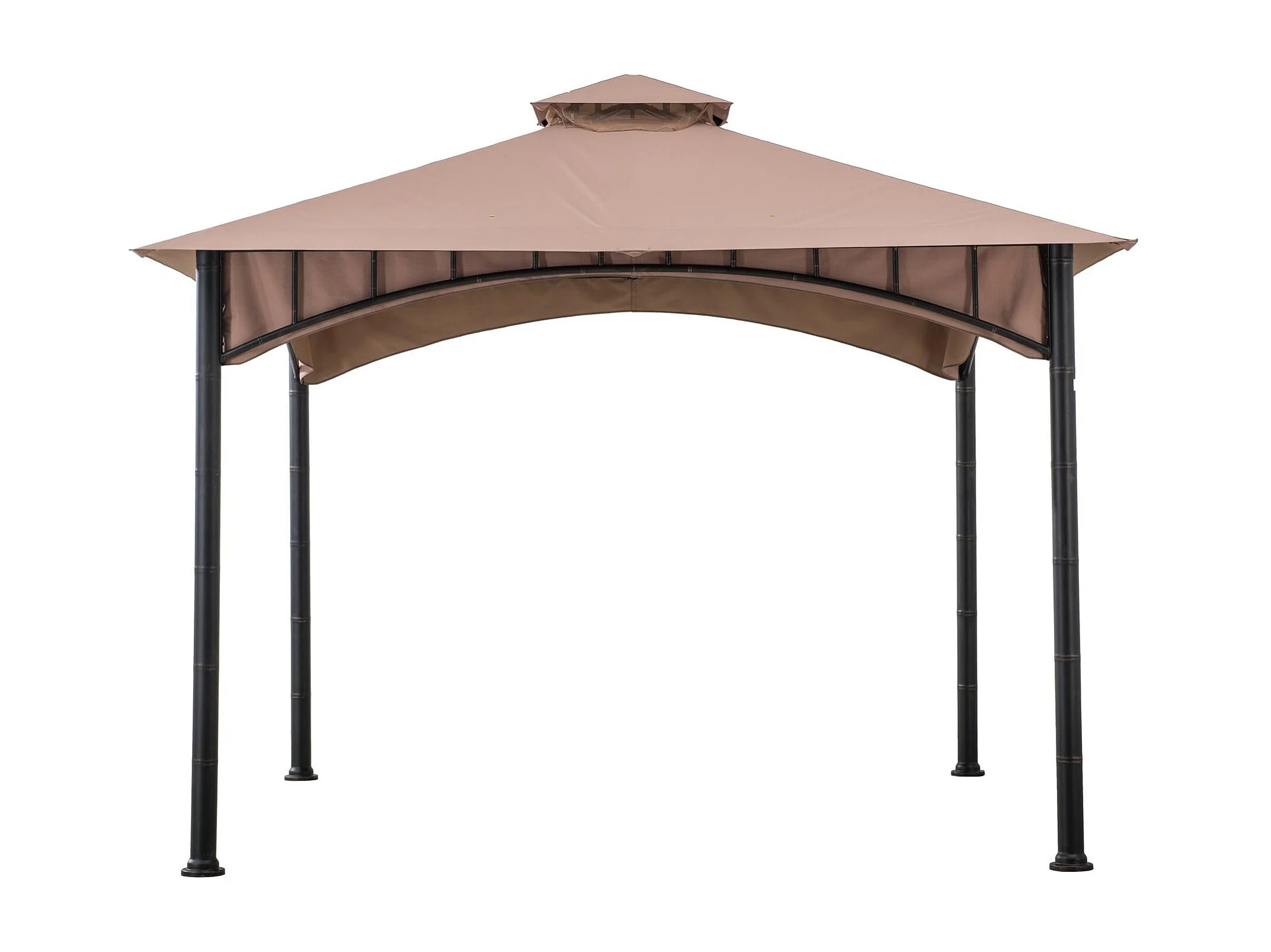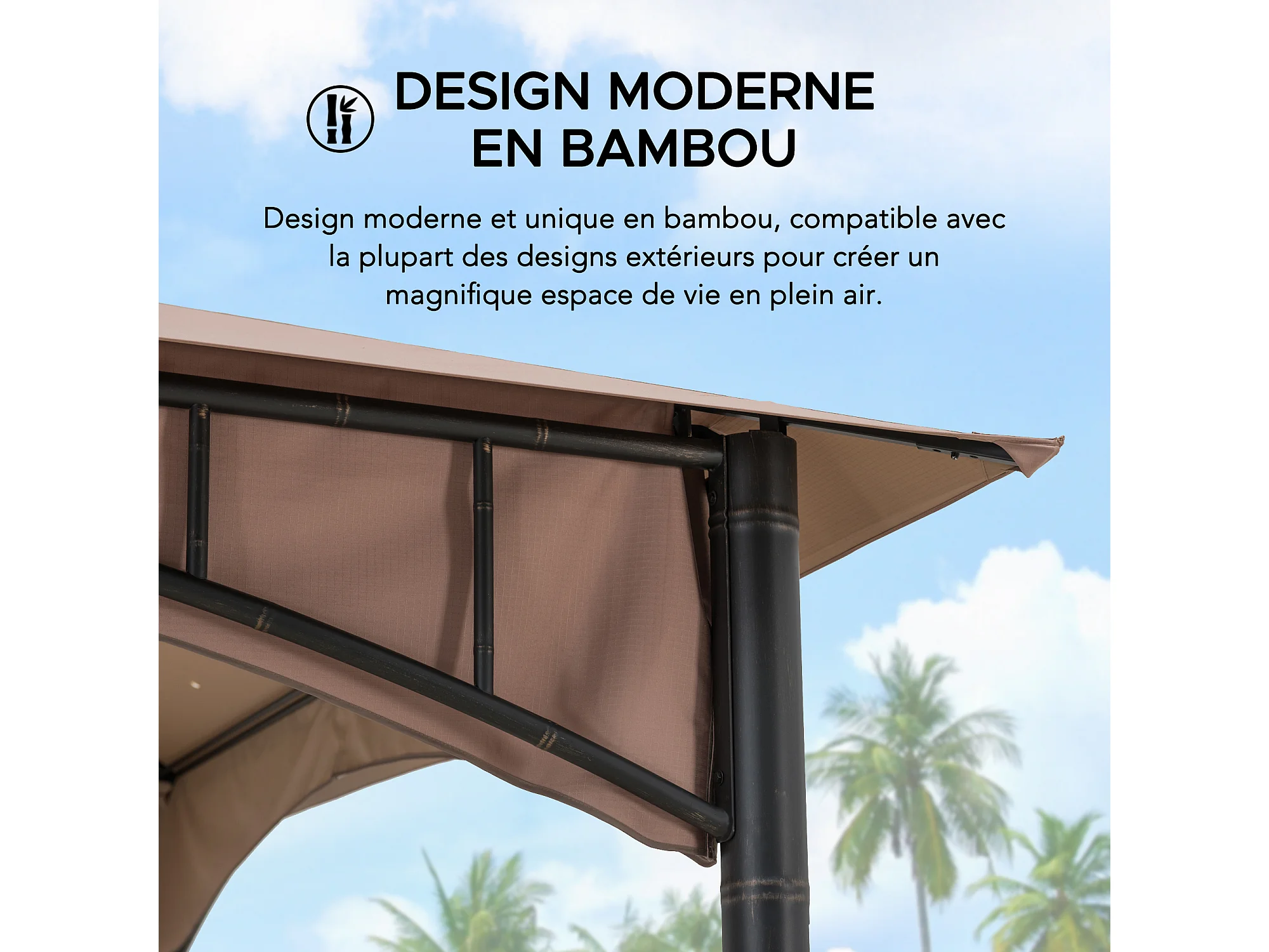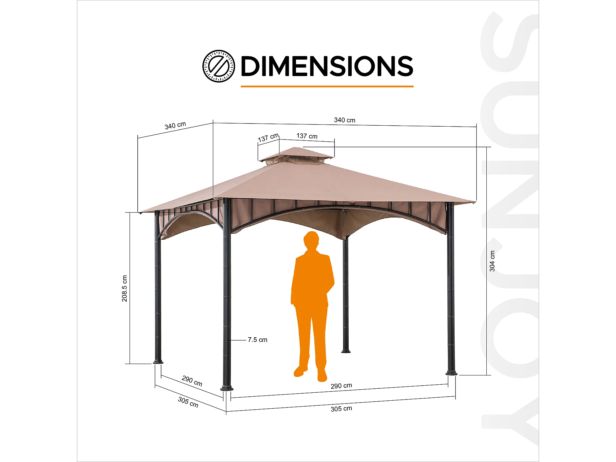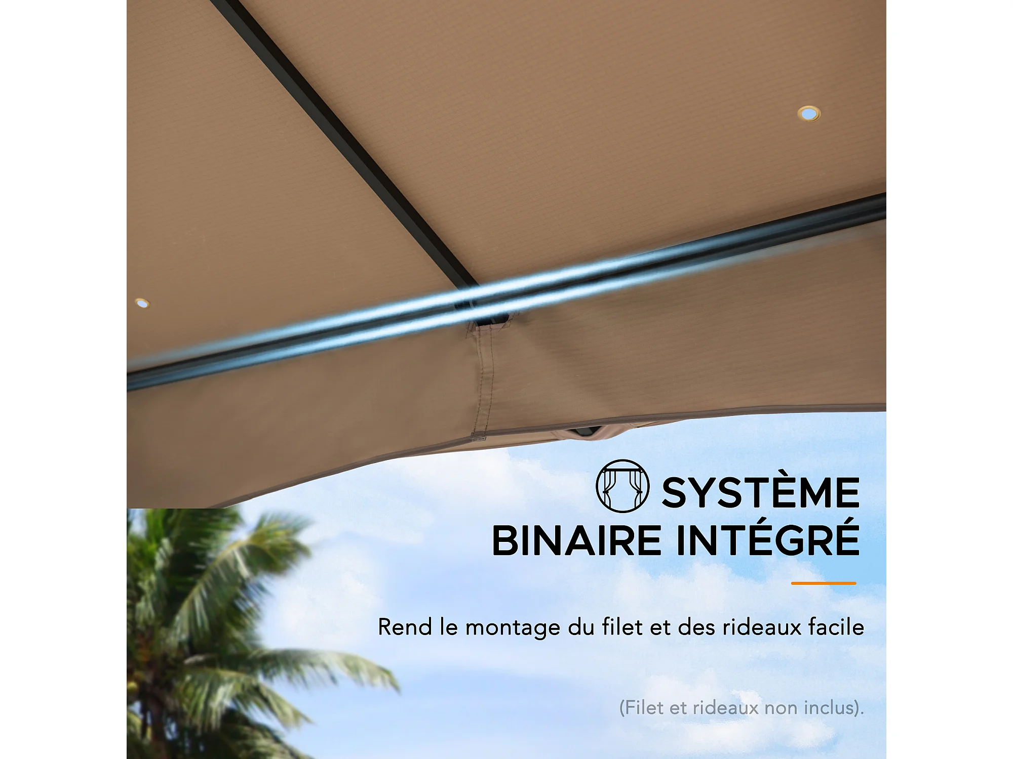 Tonnelle de jardin en acier ANETO 340cm x 340cm, toit à deux niveaux, couleur marron