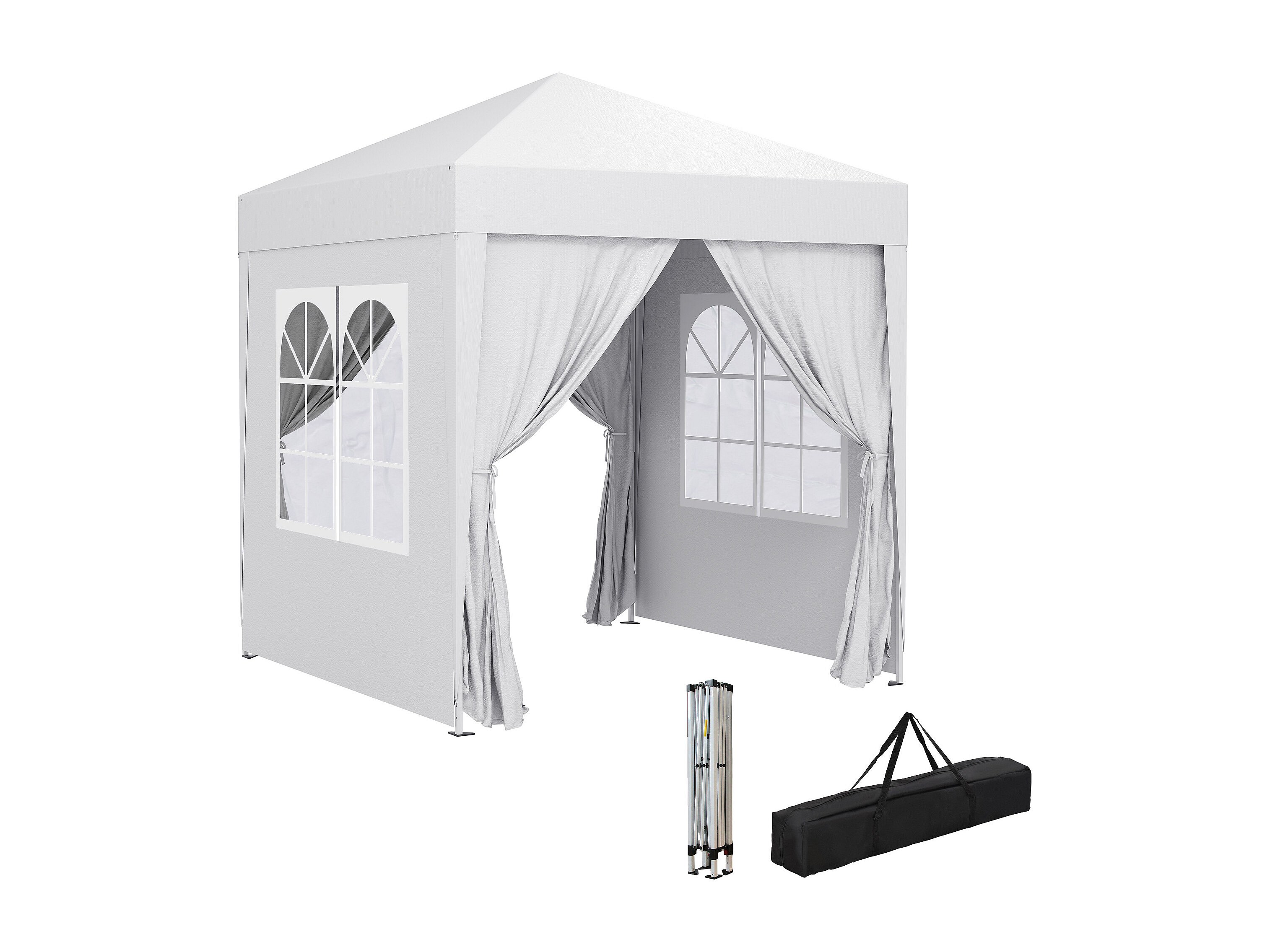 Tonnelle de jardin tente pliante barnum pop-up 2 x 2 m 4 parois latérales amovibles 2 fenêtres sac de transport blanc