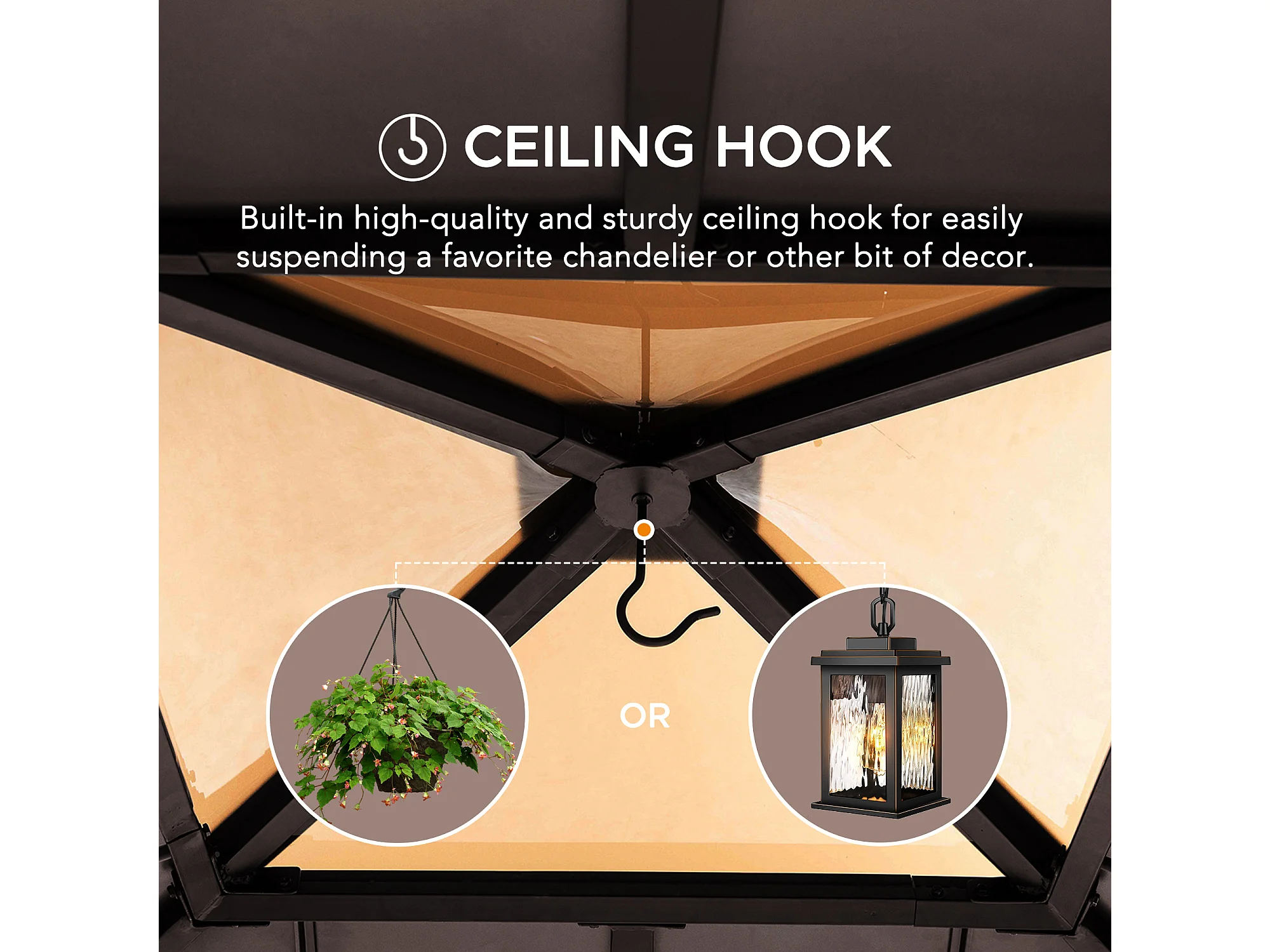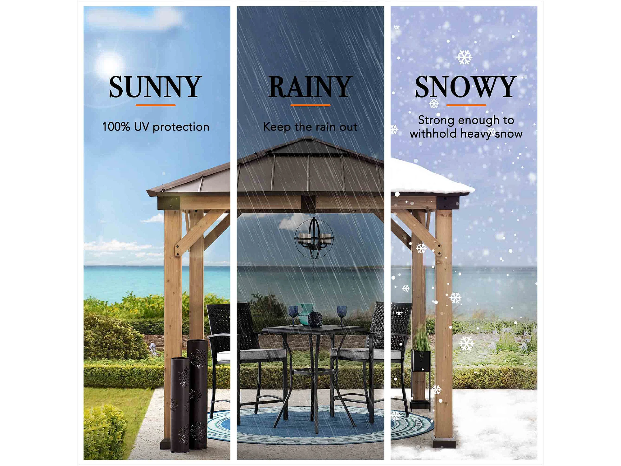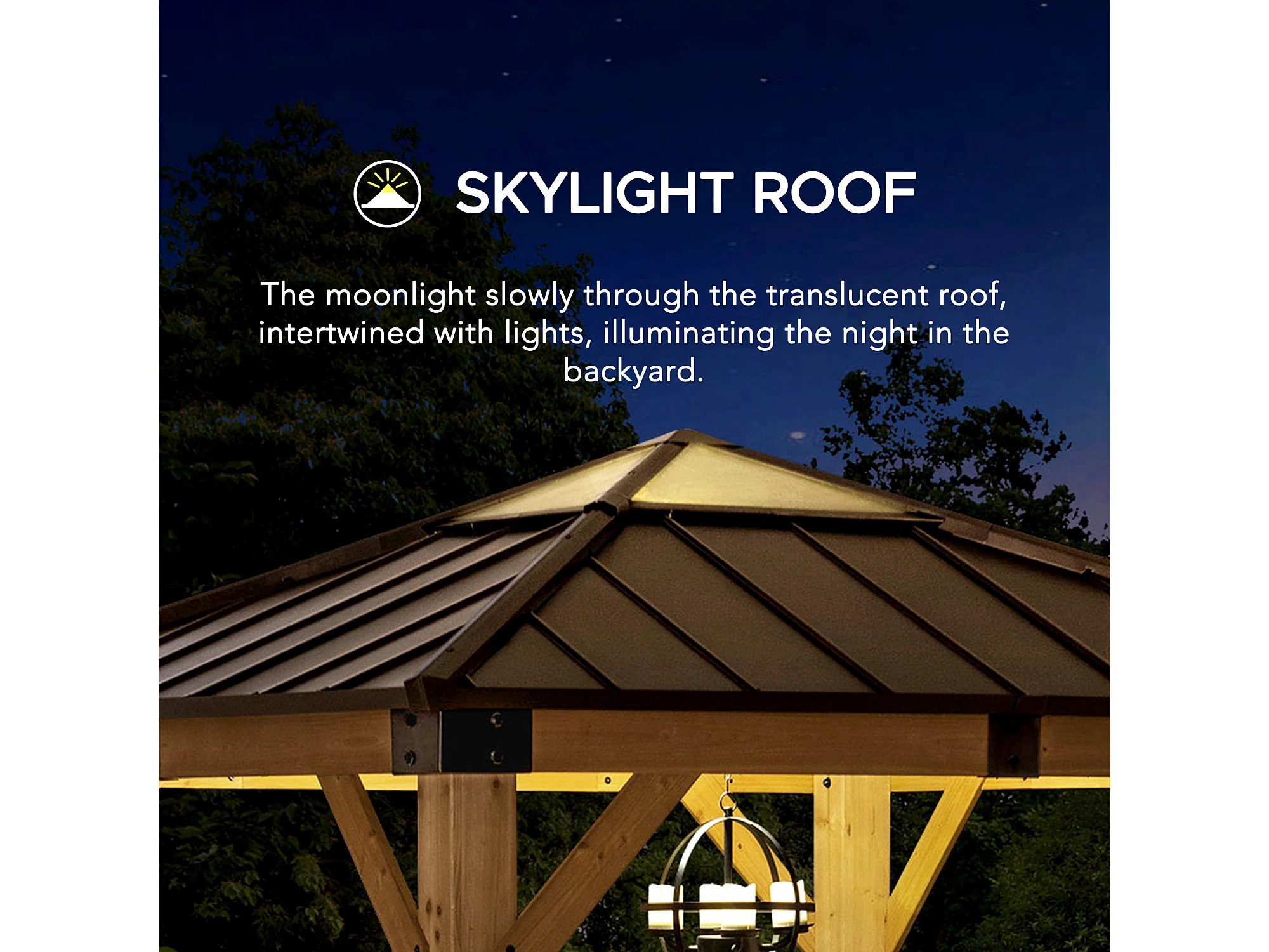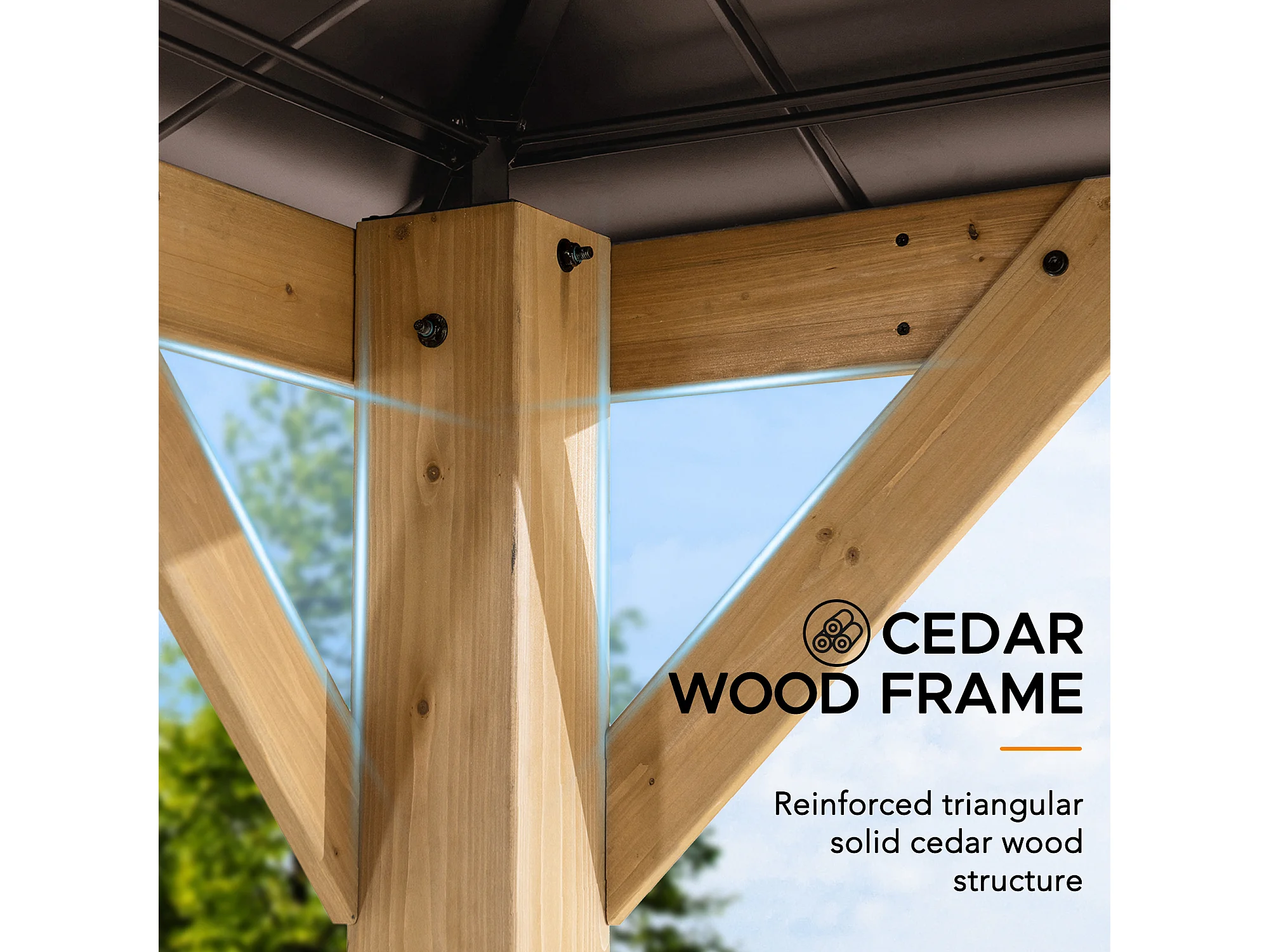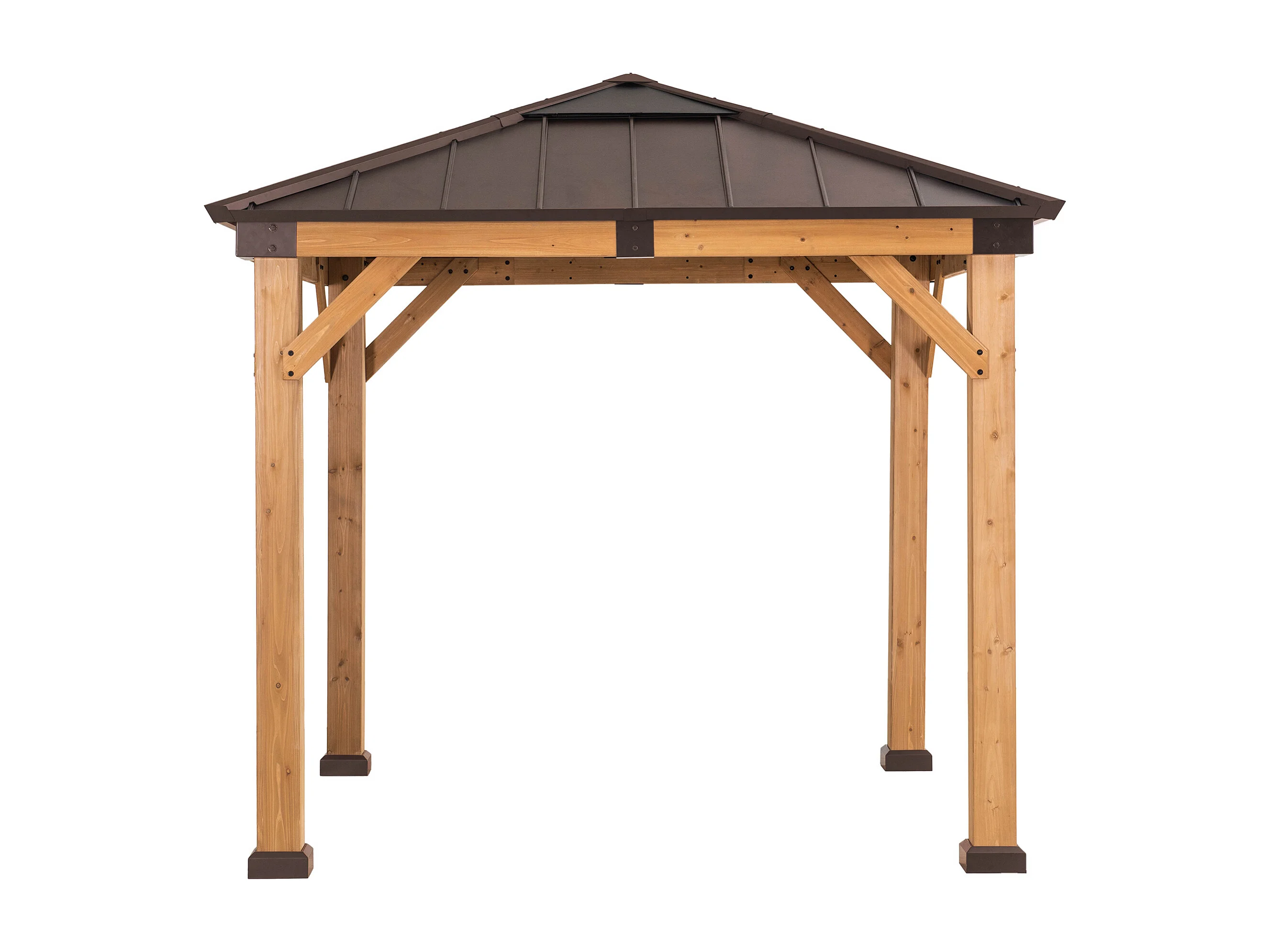 Tonnelle en bois avec toit en polycarbonate et acier brun RAPI 273cm x 273cm