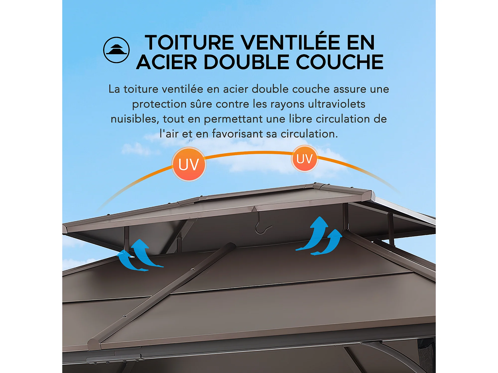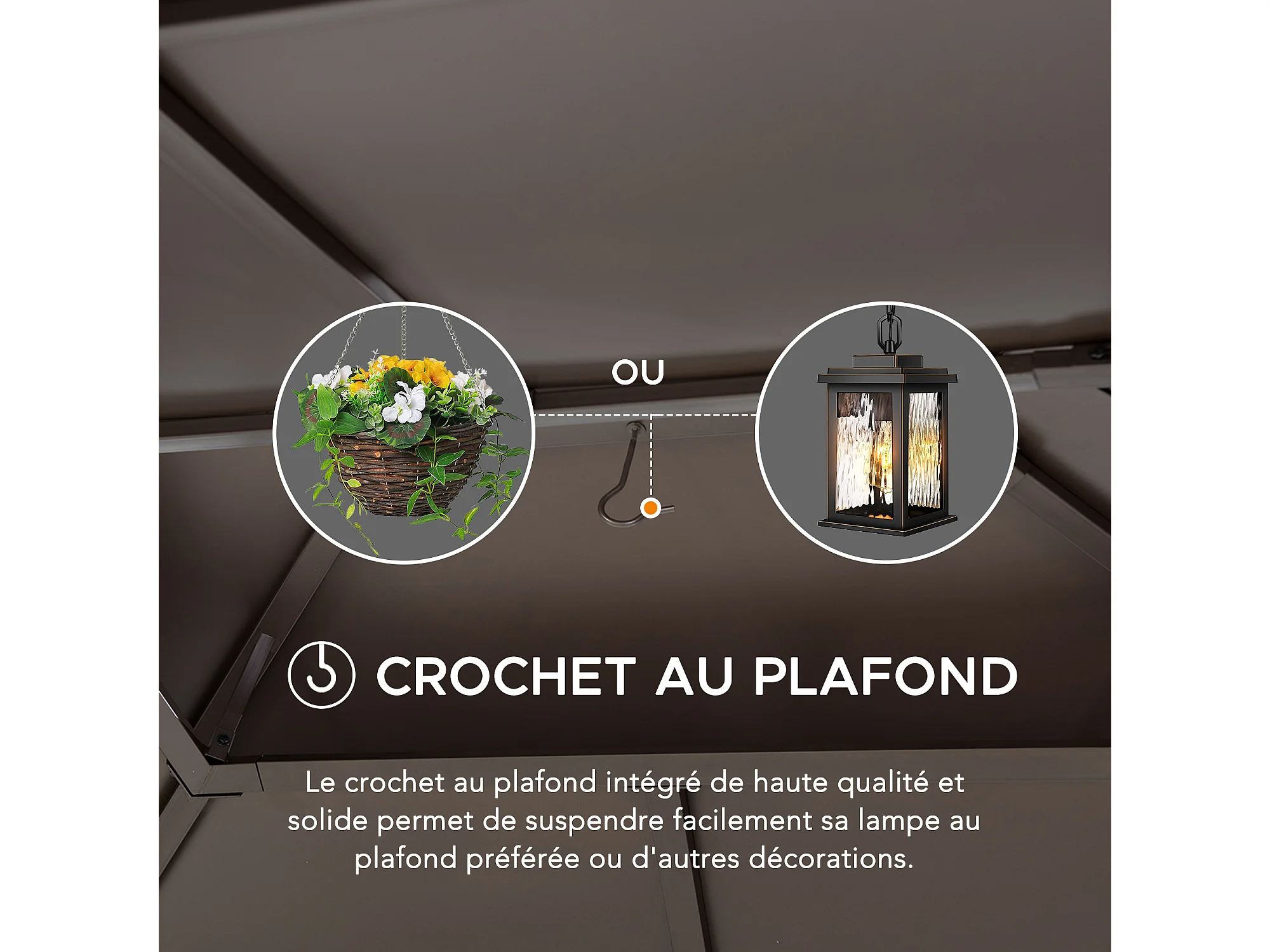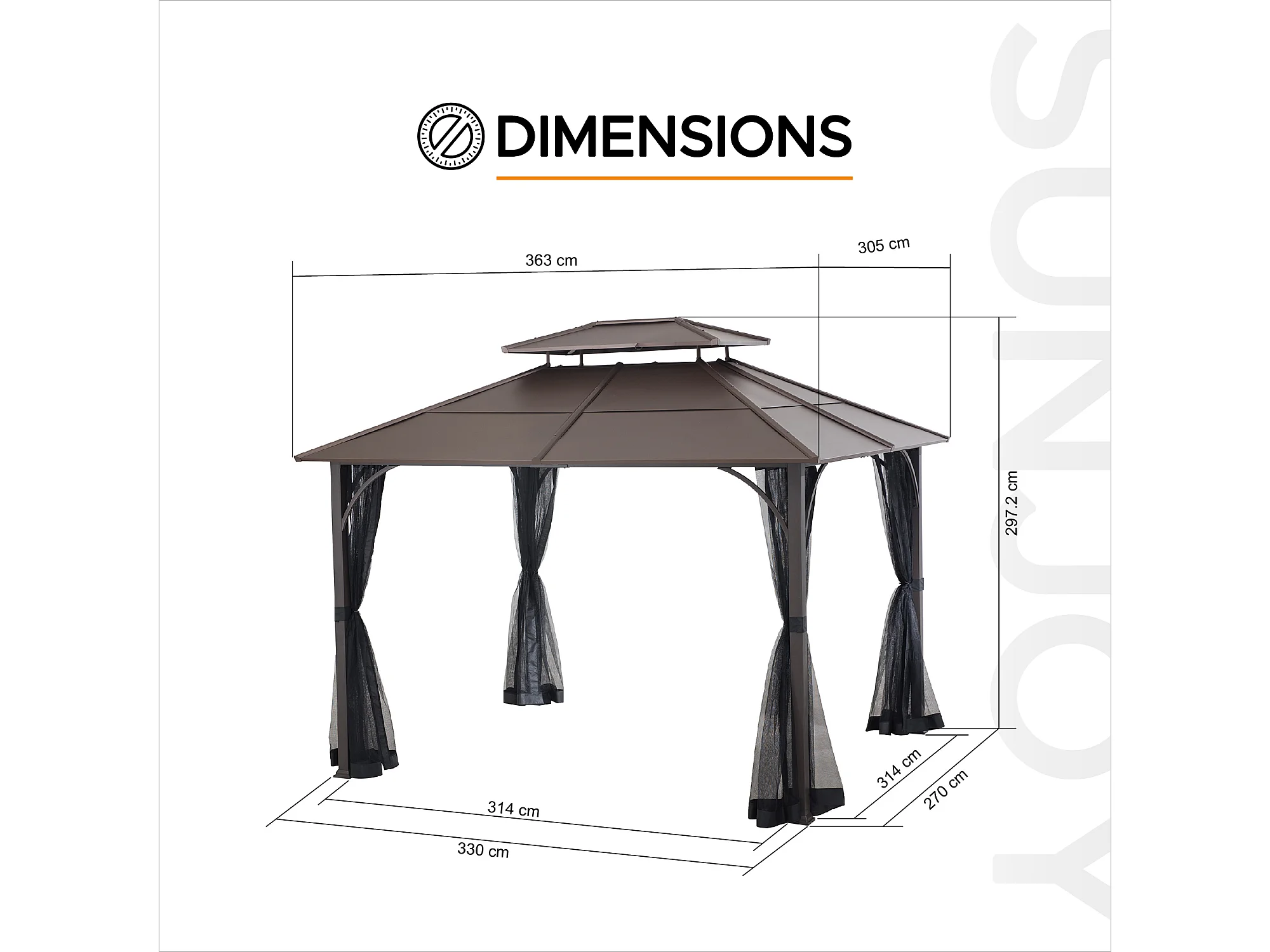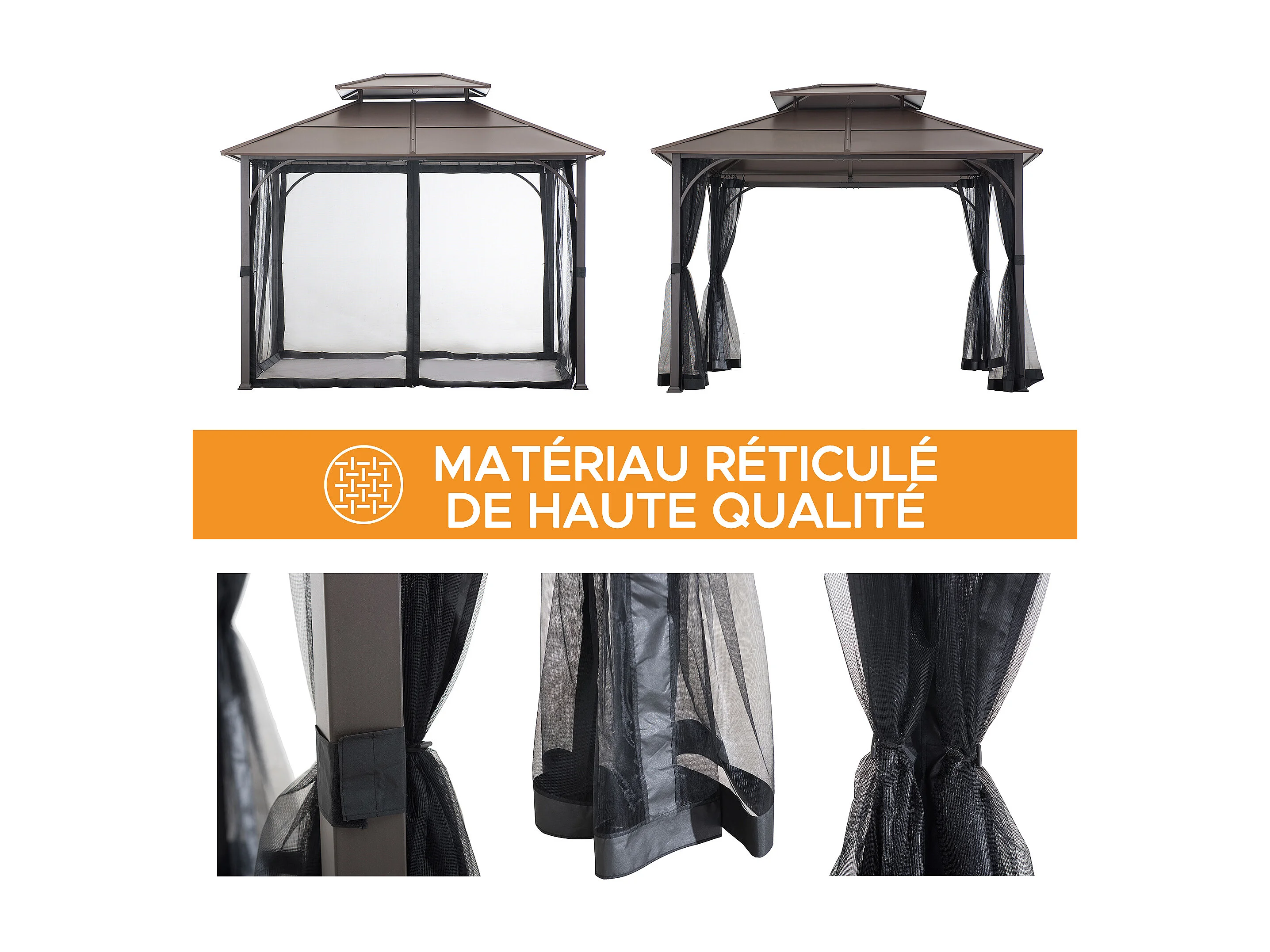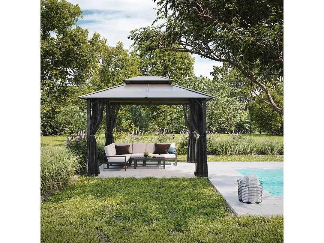 Tonnelle en métal à toit rigide avec filet et crochet de plafond KALDI 305 cm x 366 cm