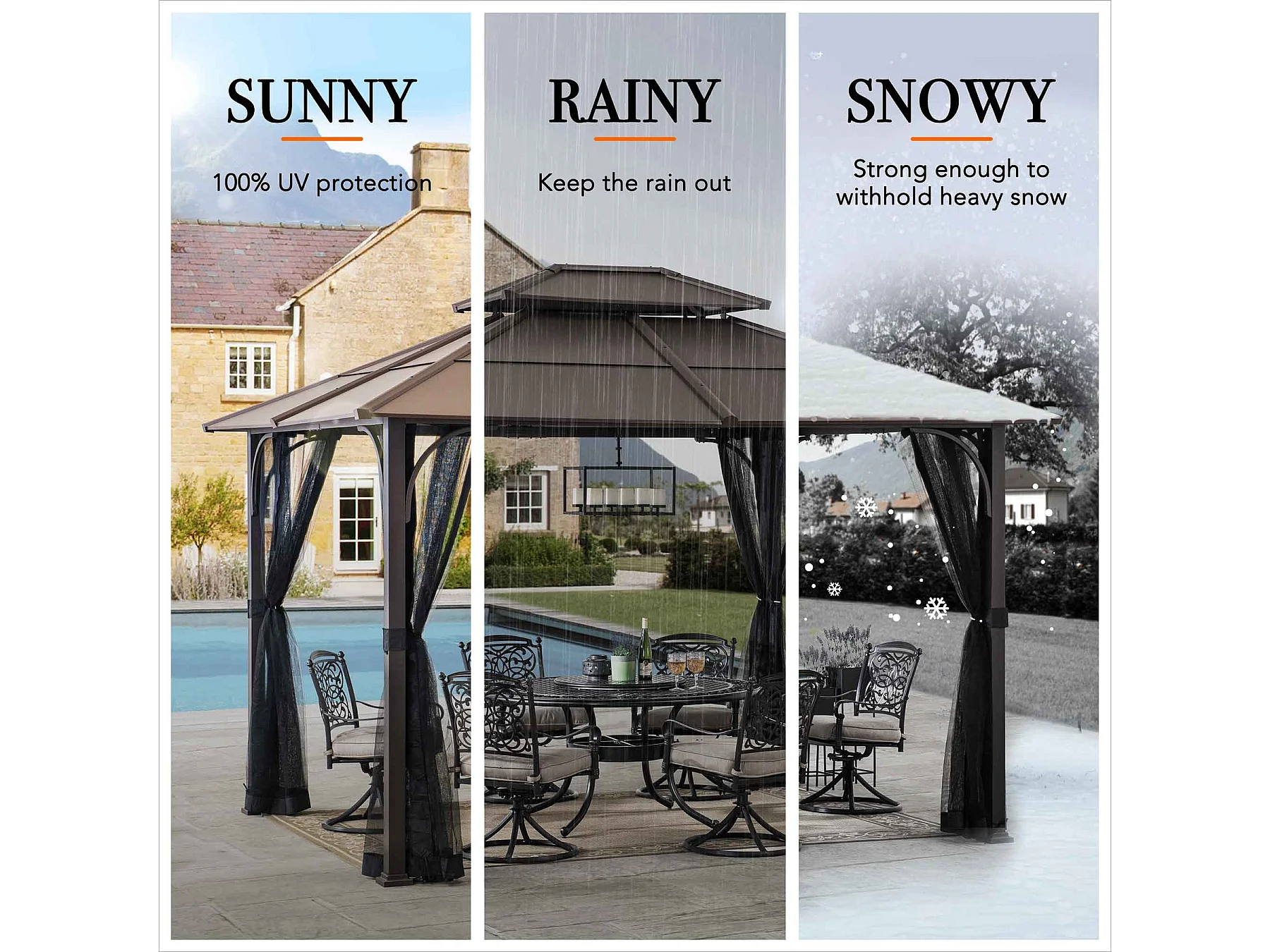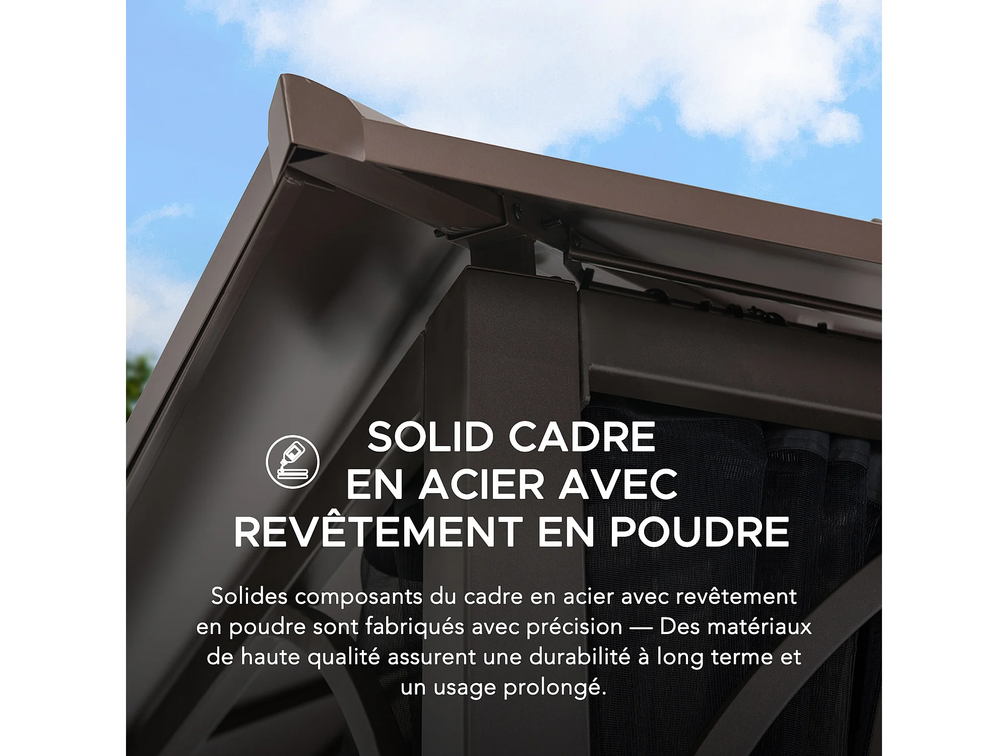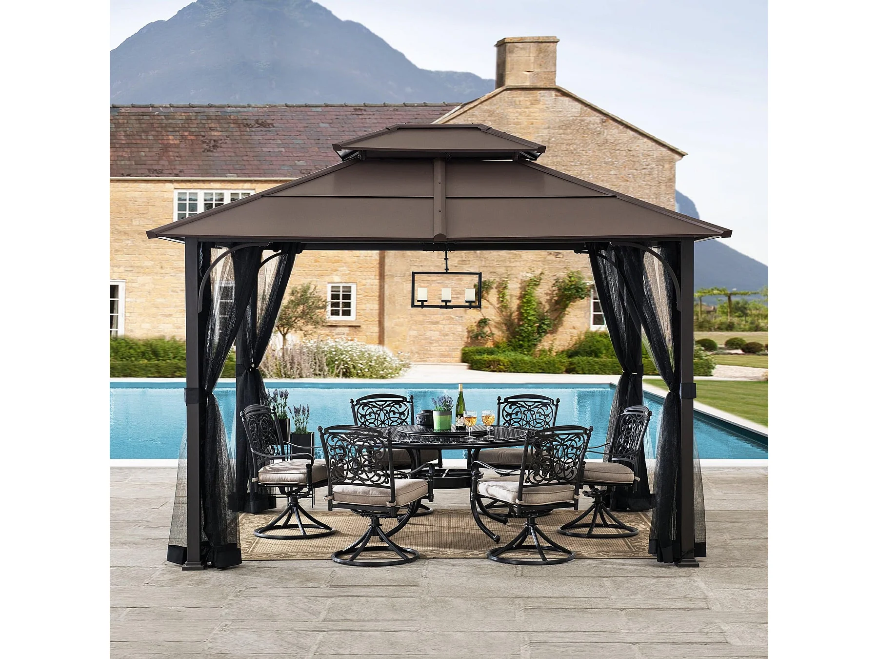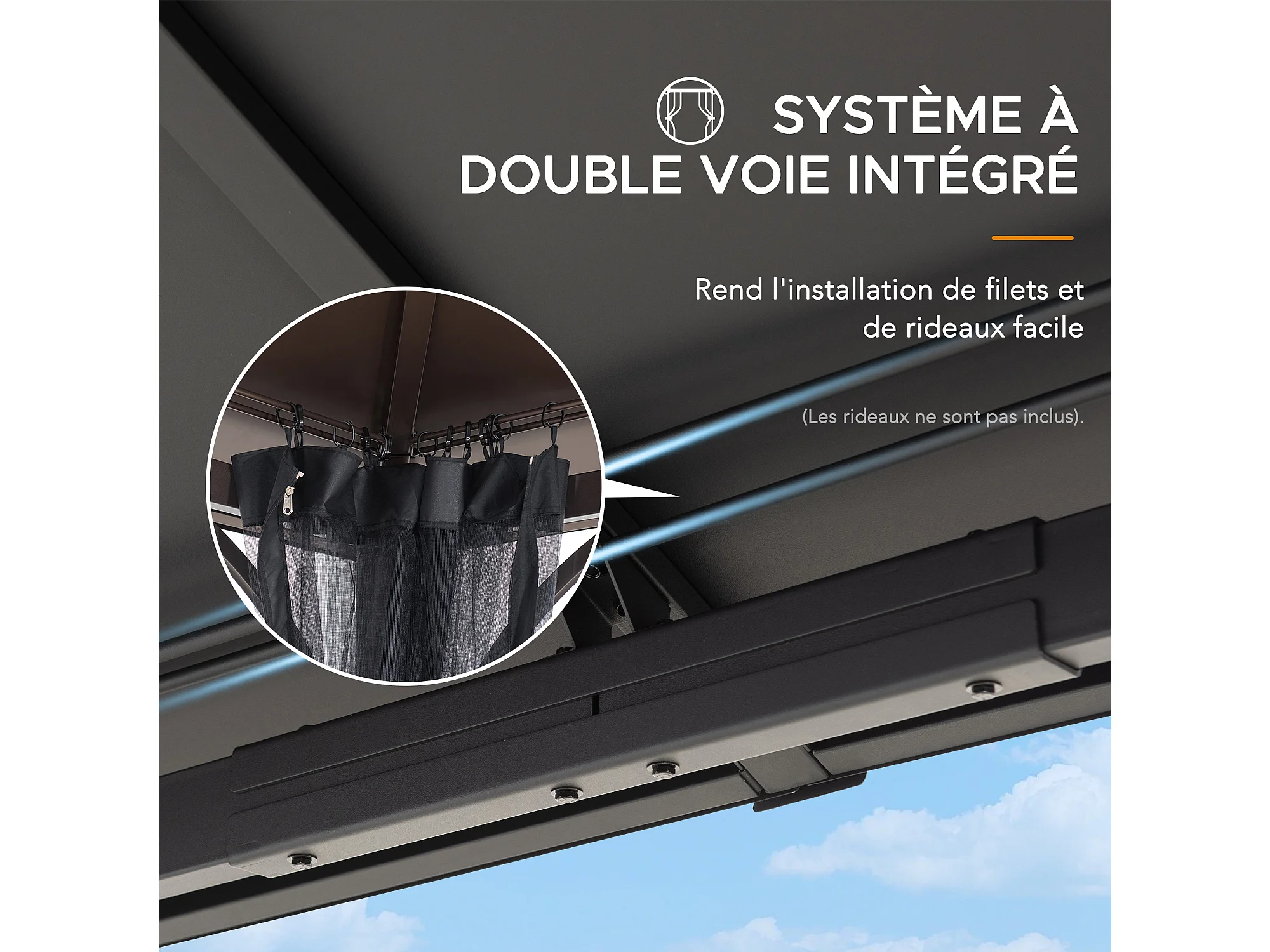 Tonnelle en métal à toit rigide avec filet et crochet de plafond KALDI 305 cm x 366 cm
