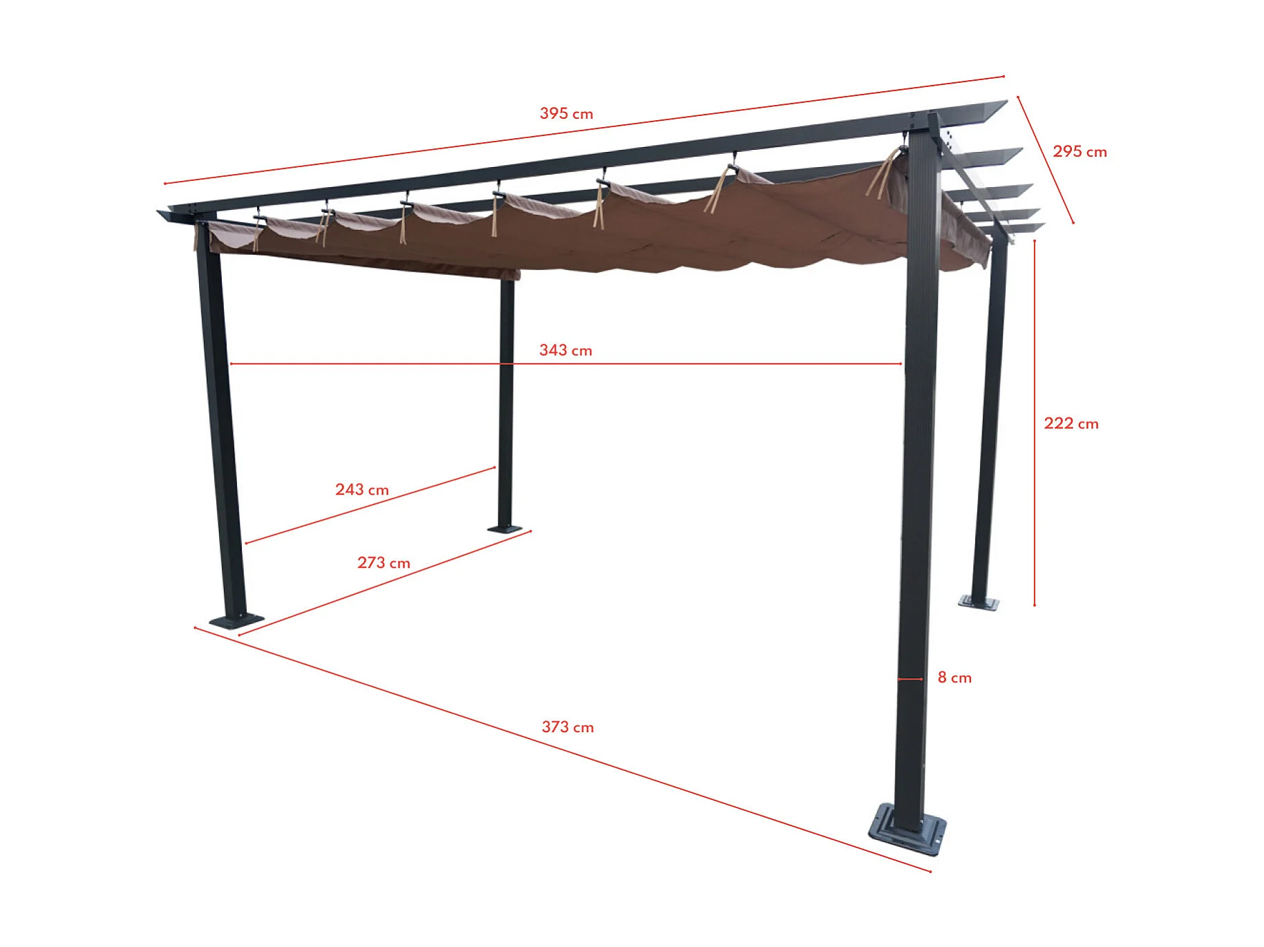 Tonnelle/Pergola en aluminium 3x4m toile coulissante rétractable - anthracite taupe - HAVANA