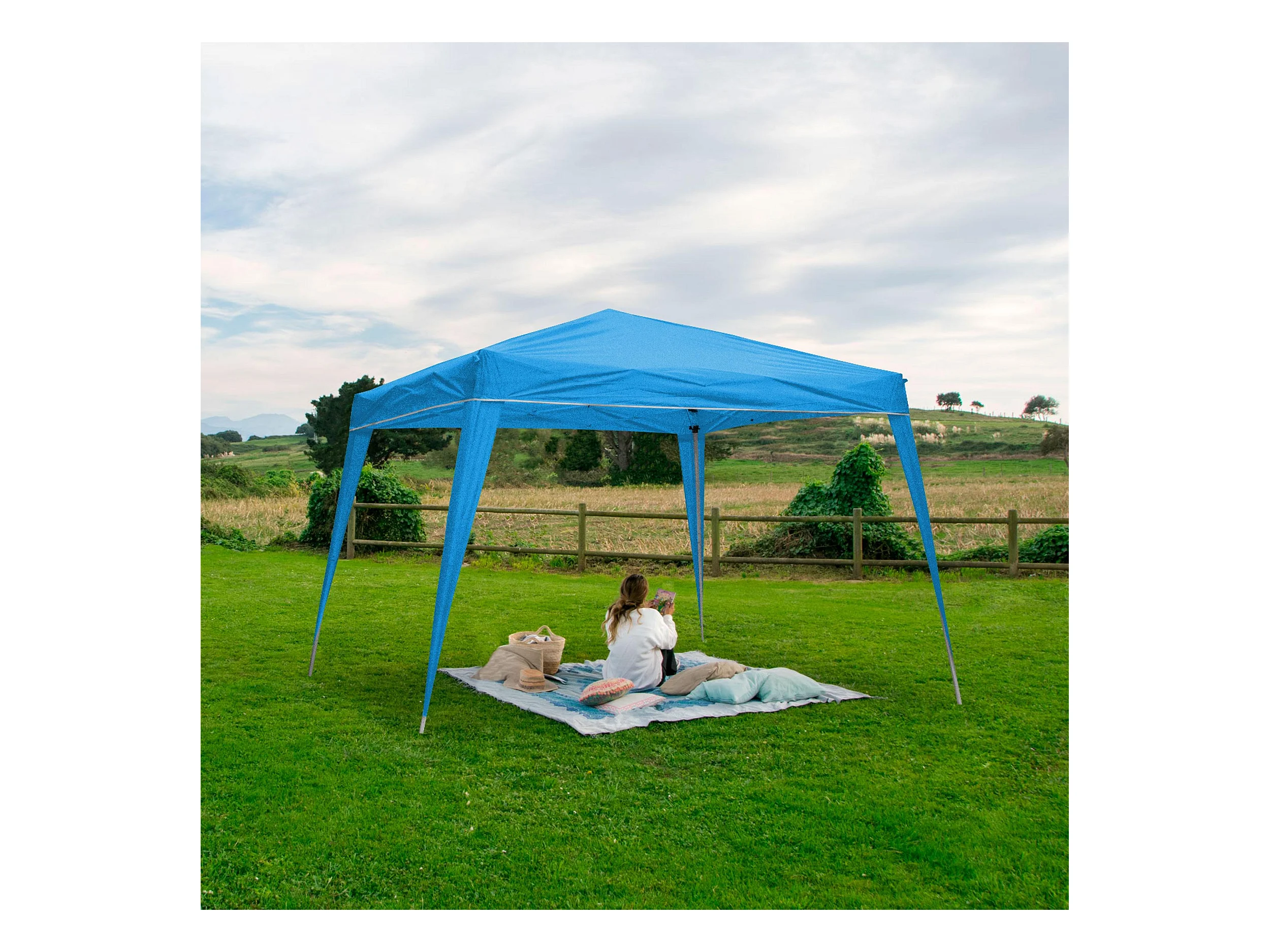 Wasabi - Tonnelle Pliante 3x3 m Bleue - Bâche Nylon - Protection Eau et Soleil - Piquets - Structure Acier – Pergola Jardin