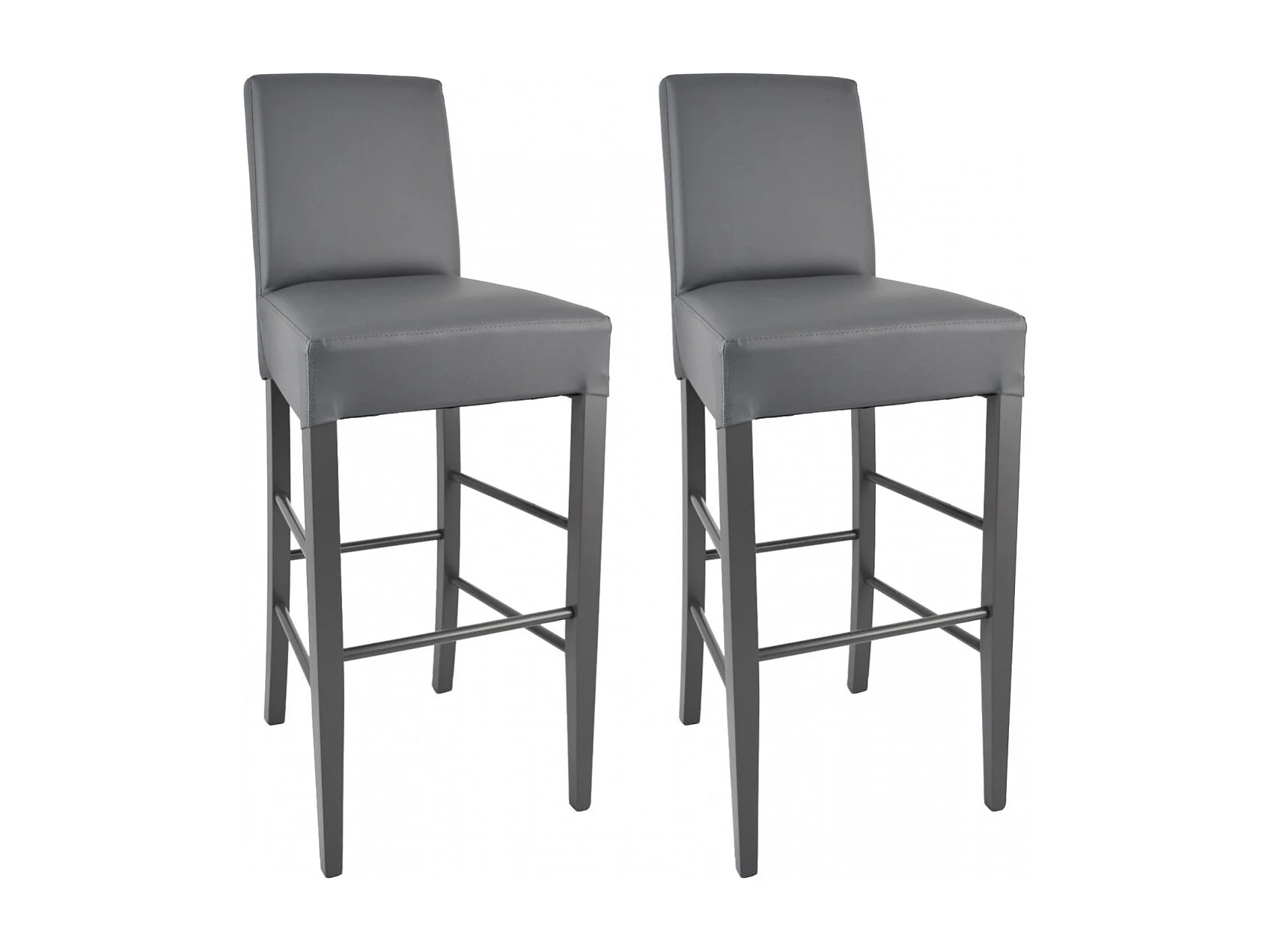 TONY - Lot de 2 Tabourets Laqués Gris et Assise Simili Cuir Gris